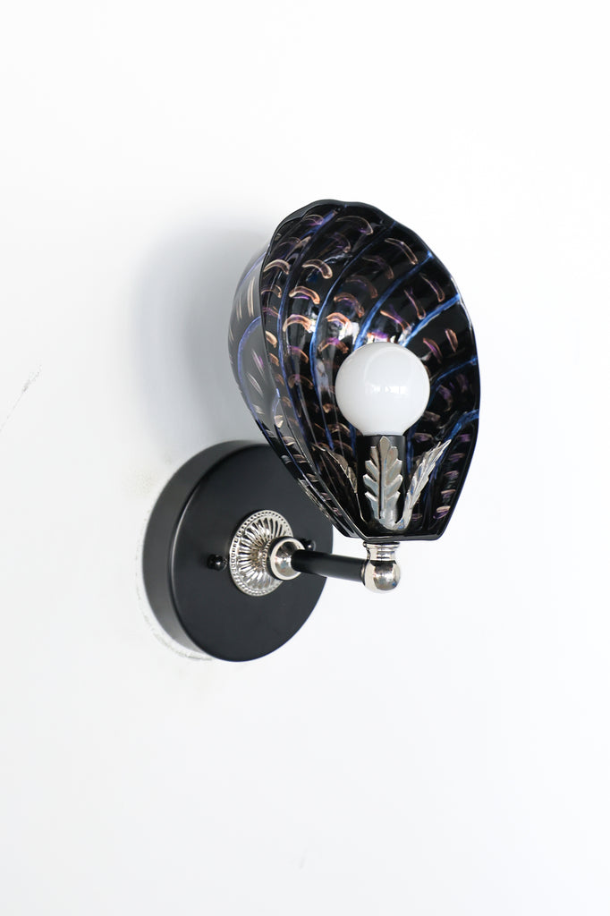 Black & Polished Nickel Hand-Painted Coquille Sconce: One of One