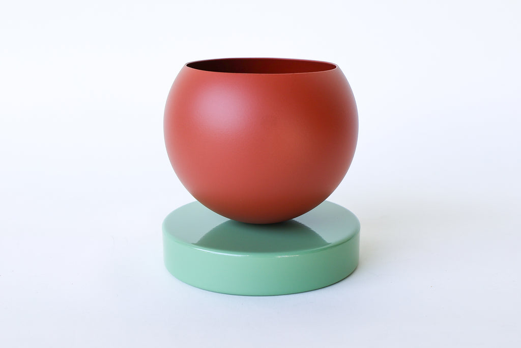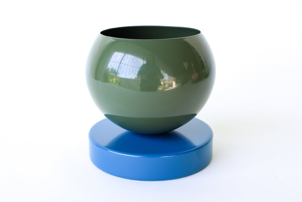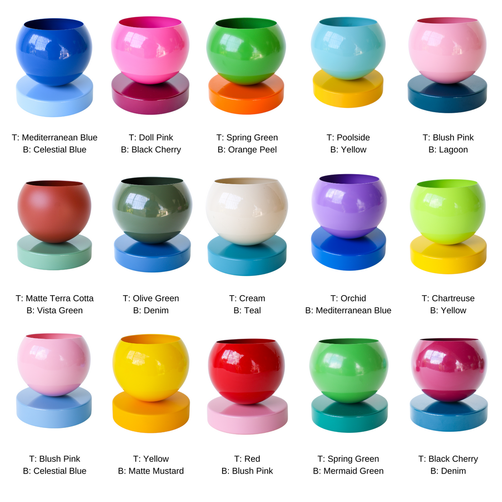 Elevate your space with this sleek, globe-shaped powdercoated steel planter, designed for the modern minimalist that loves a bit of color. Available in a range of curated color duos (and it can be customized!), this versatile piece adds a touch of fun to any room. Whether you style it with a lush plant or use it as a statement vase, its clean, sculptural form is sure to enhance your decor.