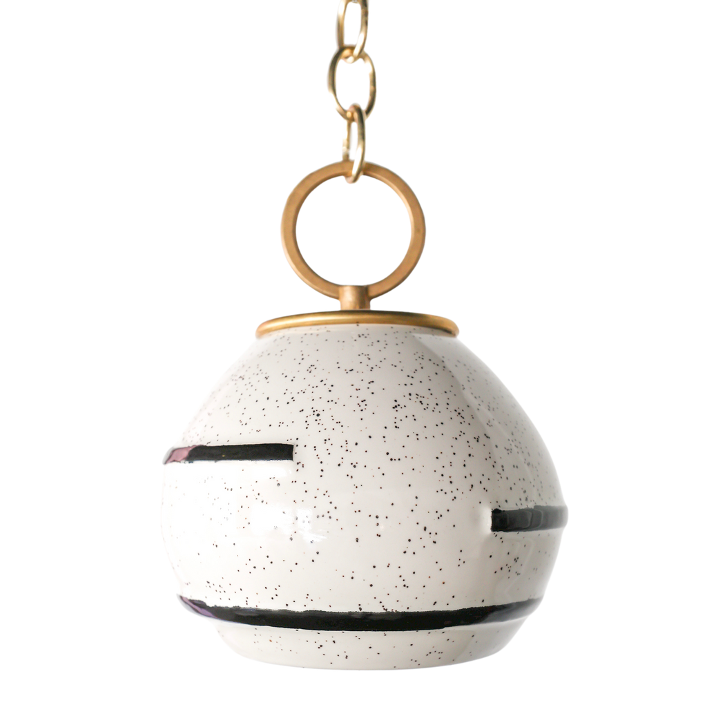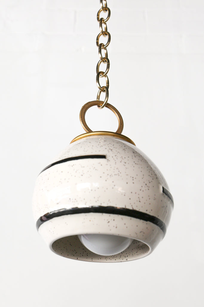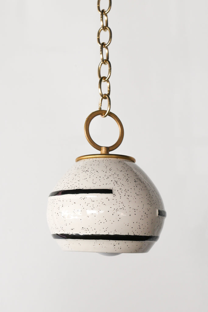 Inspired by the silt texture of the Mississippi in Southern Louisiana, the Delta Sconce combines an earthy glaze with contrasting geometric black lines that partially wrap the shade. Compliments many design types including earthy bohemian, mid-century modern, and California cool. To add some additional visual interest, we added an oversized raw brass loop and chain, making this a great pendant to adjust on the spot.
