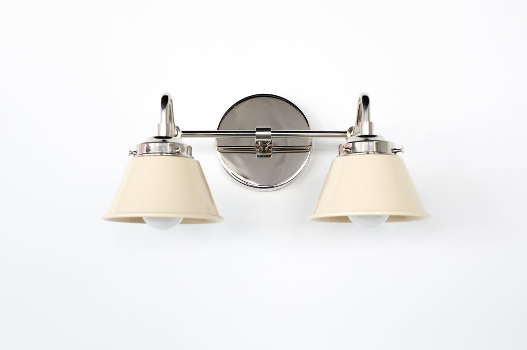The Double Kelly Sconce is our playful twist on classic cone-shade lighting — two petite cones, gently curved arms, and endless color possibilities. Whether you’re lighting up a bathroom vanity, flanking a bed, brightening a hallway, or adding a pop of personality to your entryway, this versatile fixture delivers style and function in equal measure.
