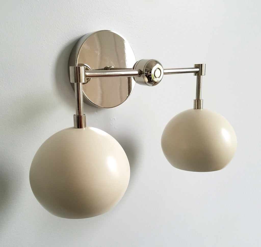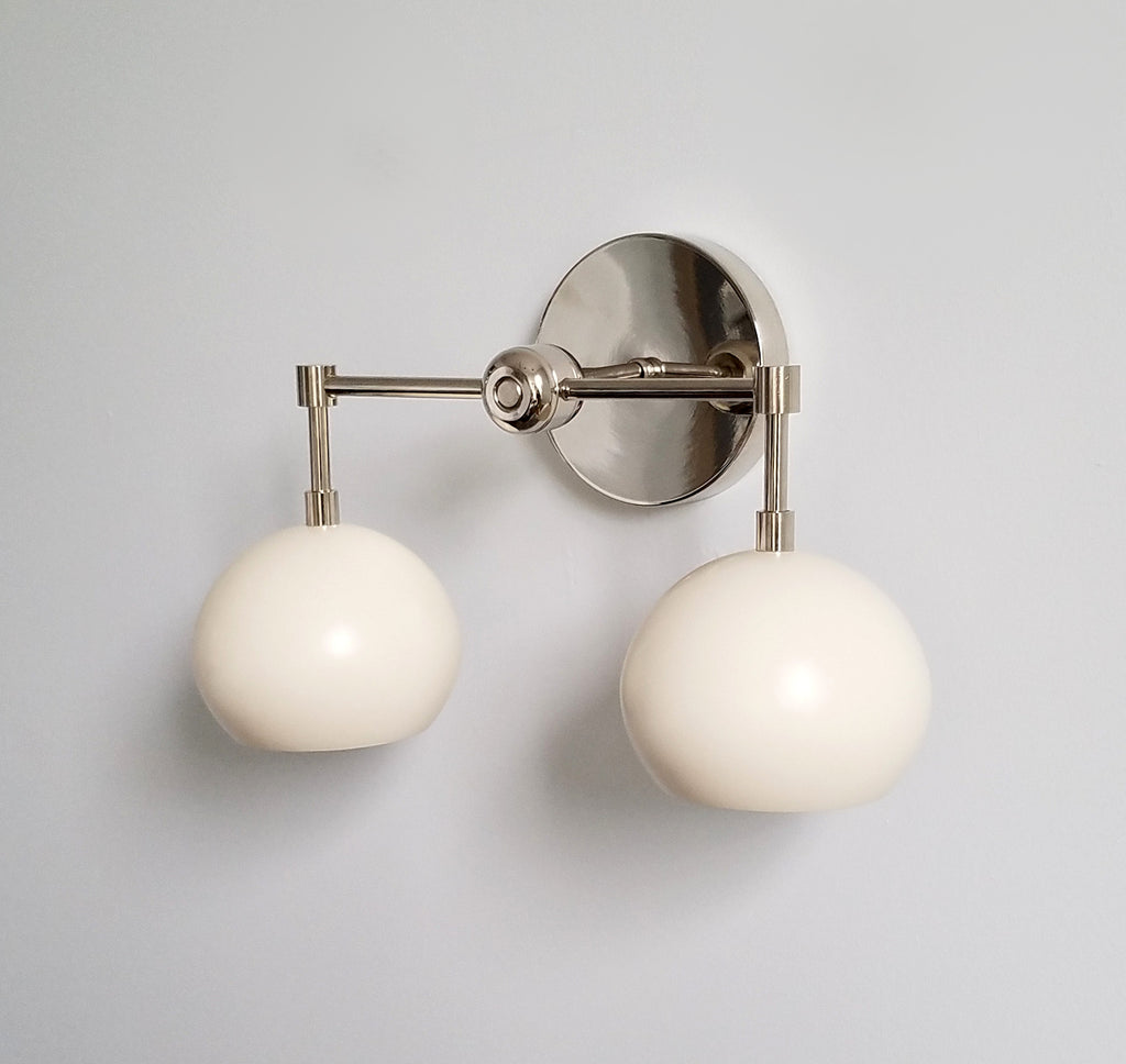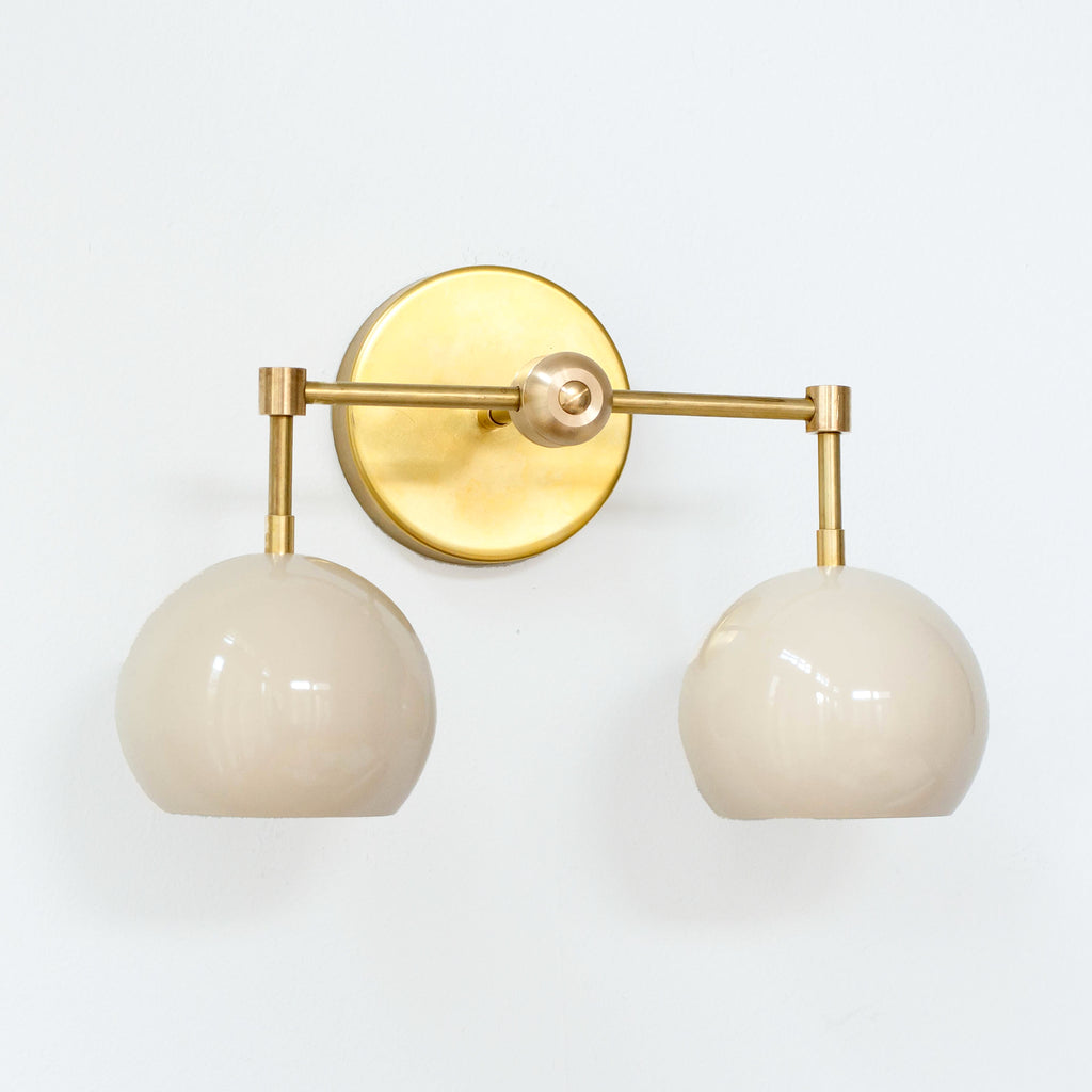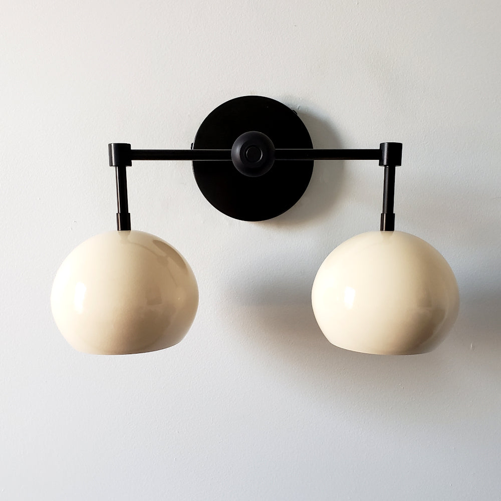 The Double Loa Sconce has a simple, minimalist design that can be fun or modern. Either way, it is bound to garner loads of compliments. This fixture is a two-light version of our single Loa sconce. The shades are made of steel that are coated in a vanilla-colored powdercoating.