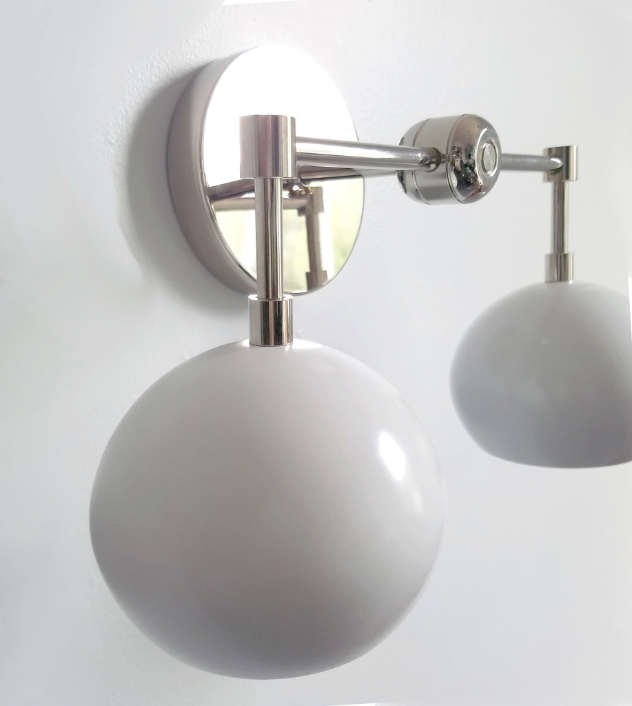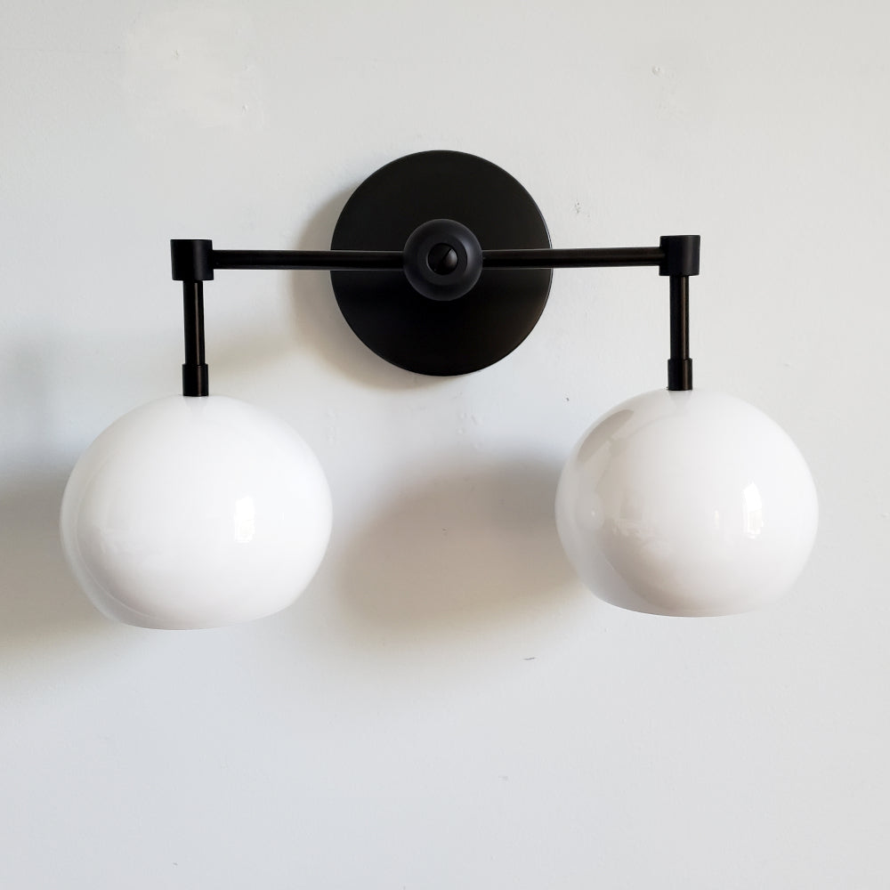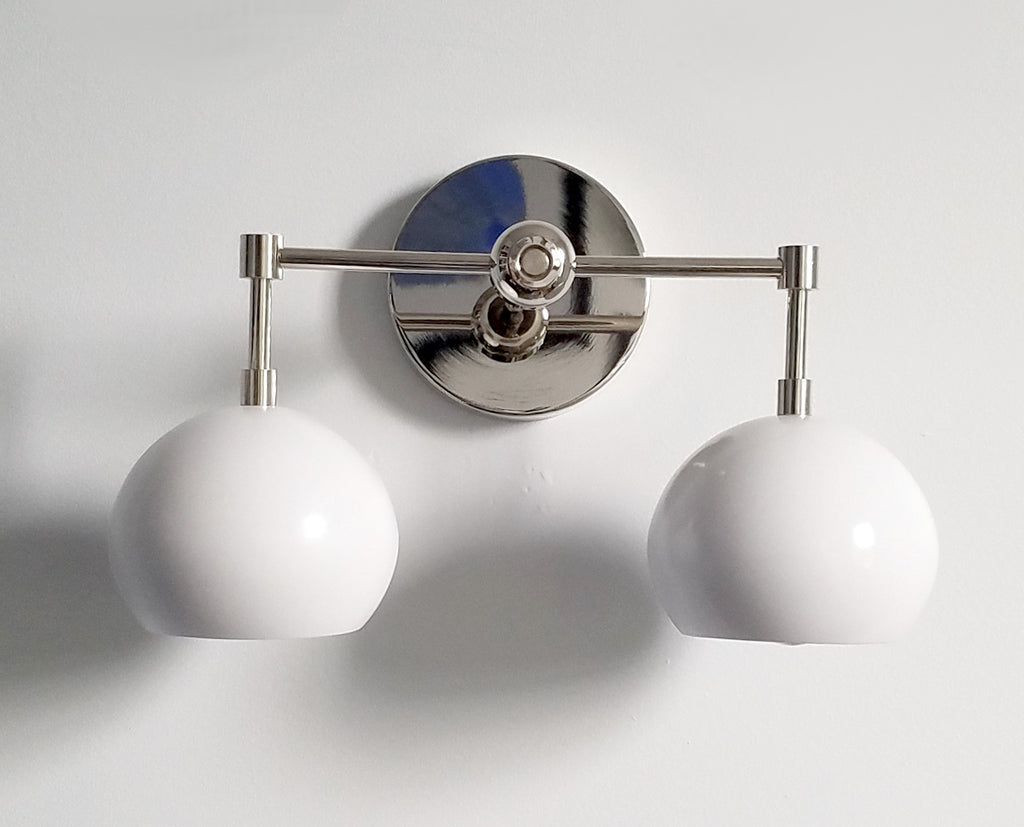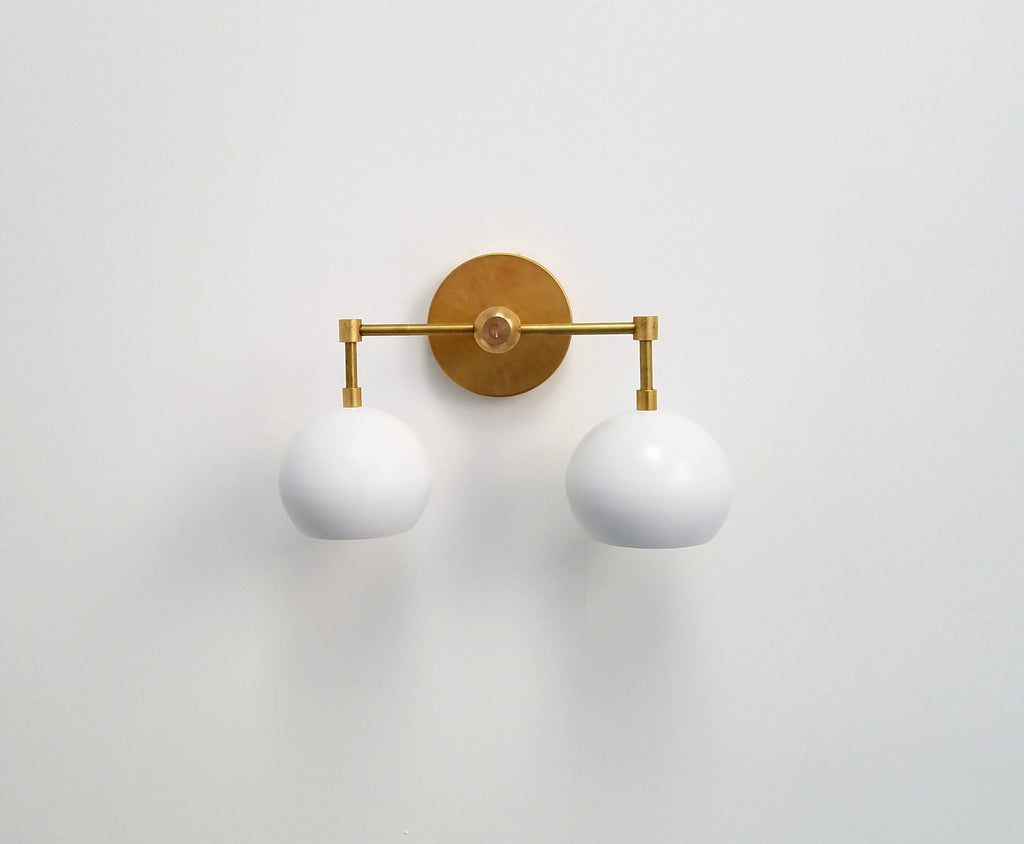 The Double Loa Sconce has a simple, minimalist design that can be fun or modern. Either way, it is bound to garner loads of compliments. This fixture is a two-light version of our single Loa sconce. The shades are made of steel coat in white enamel.