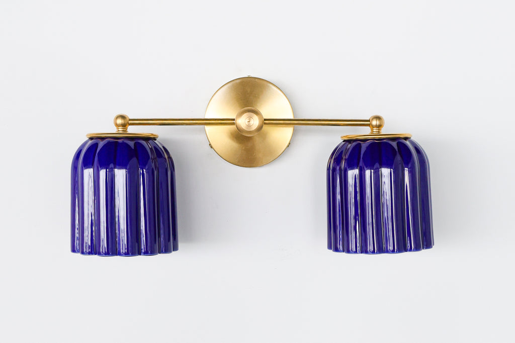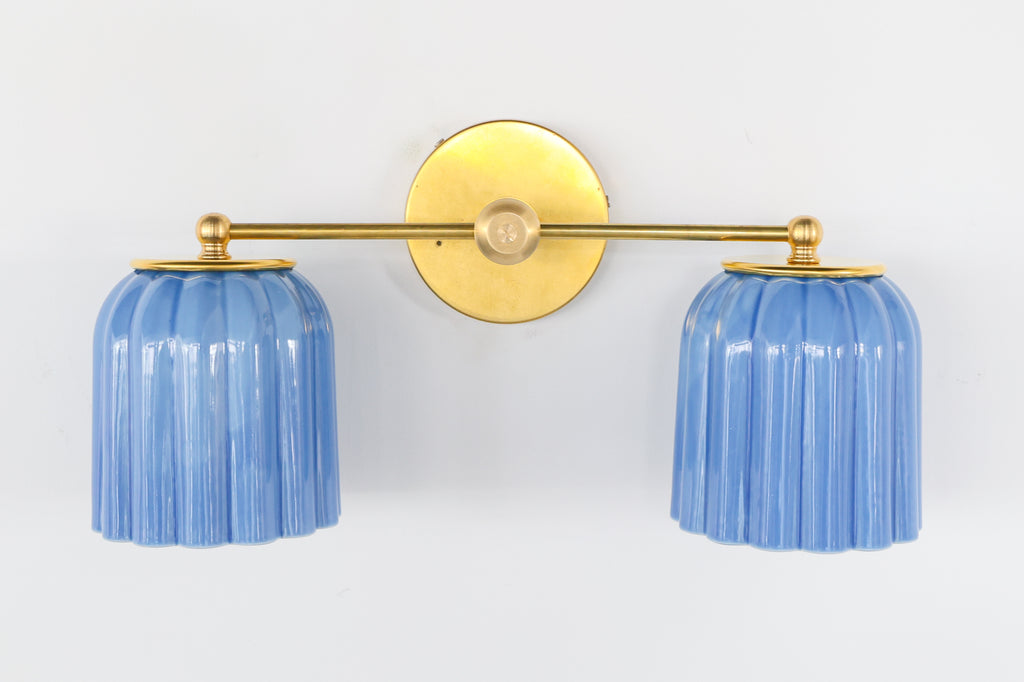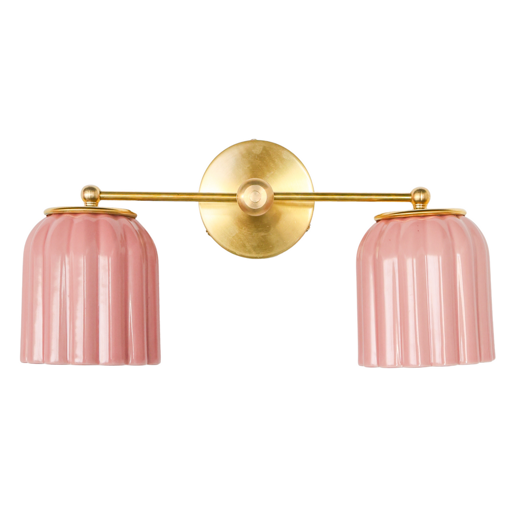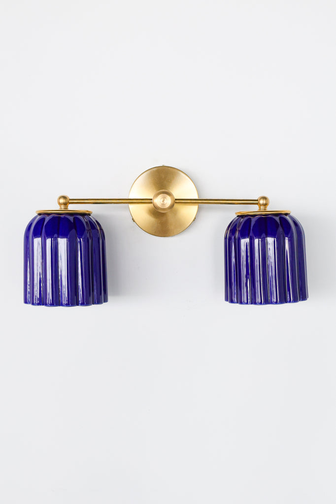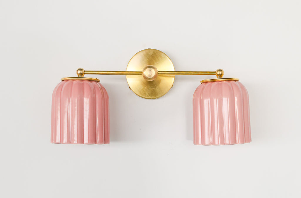 The Marcella Double Sconce is a sculptural ceramic light fixture that blends timeless craftsmanship with modern versatility. Designed by Sazerac Stitches and handmade in Charlotte, NC, each ribbed ceramic shade is produced exclusively for our studio, then hand-assembled with solid brass hardware in our New Orleans workshop.