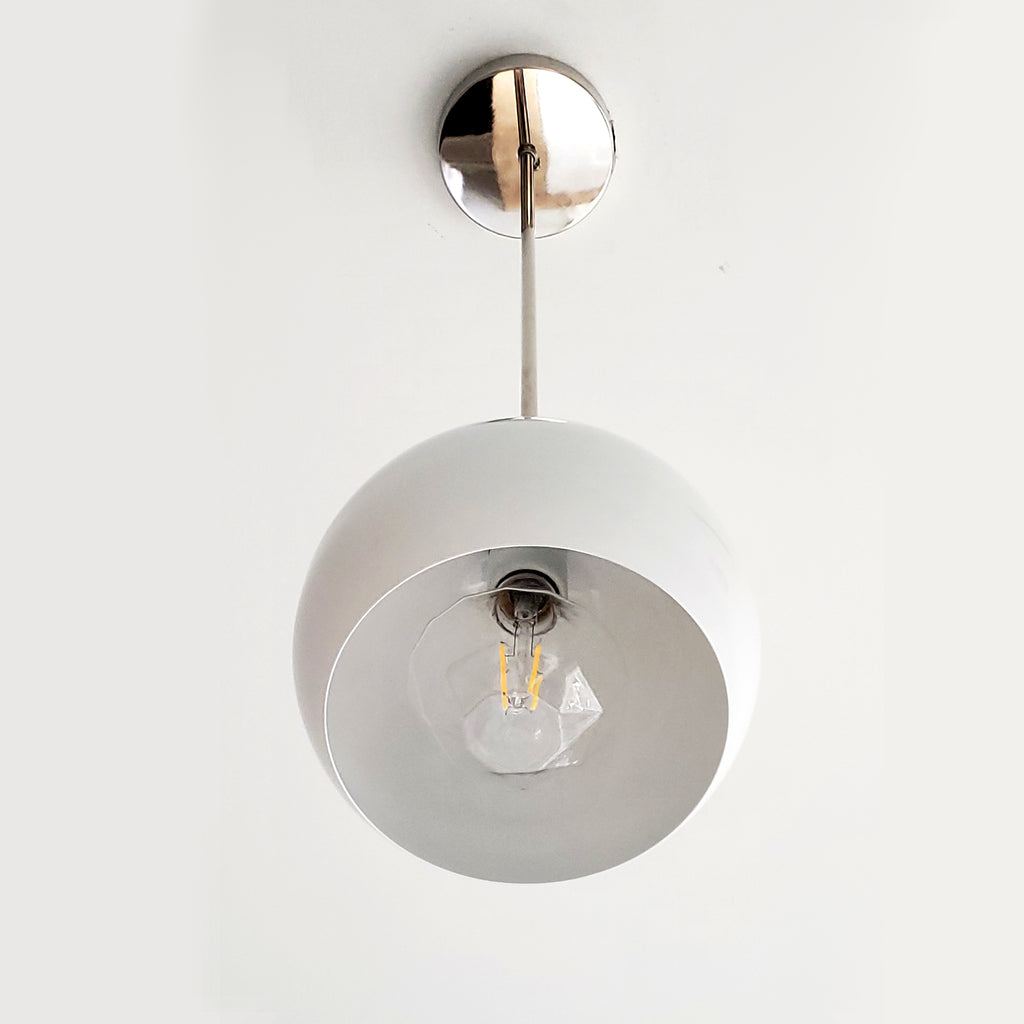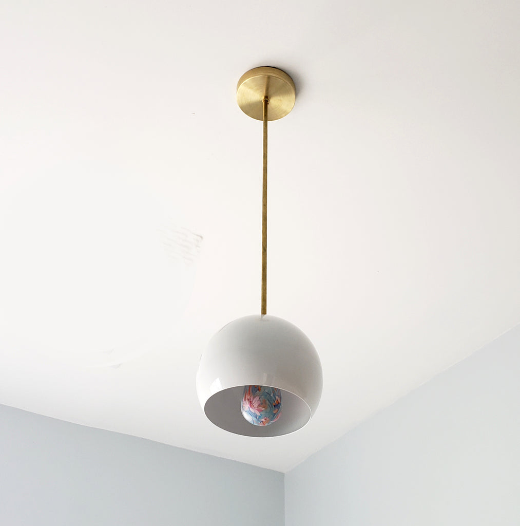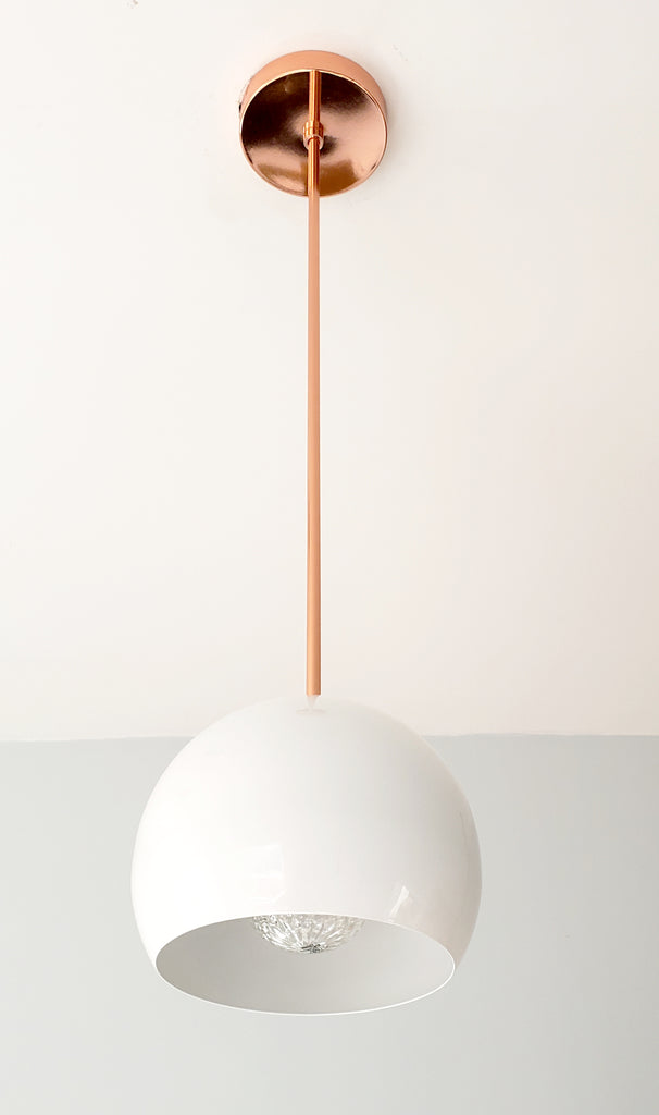 The Large Loa Pendant with a White Shade shade is a simple, globe shaped pendant available with multiple metal finishes to suit any design style. Each pendant comes with three downrod options: 24 inches, 18 inches, and 12 inches. If a specific length is needed instead, contact us.