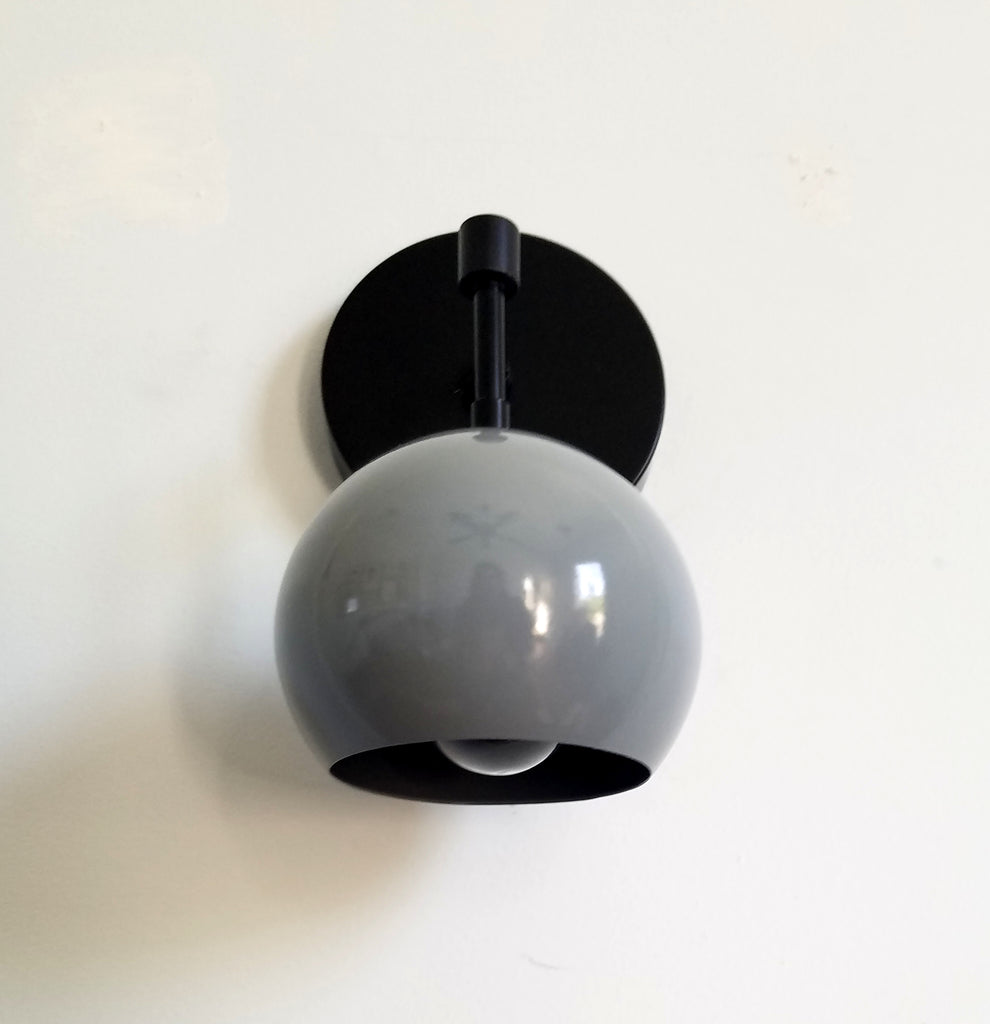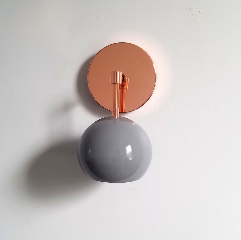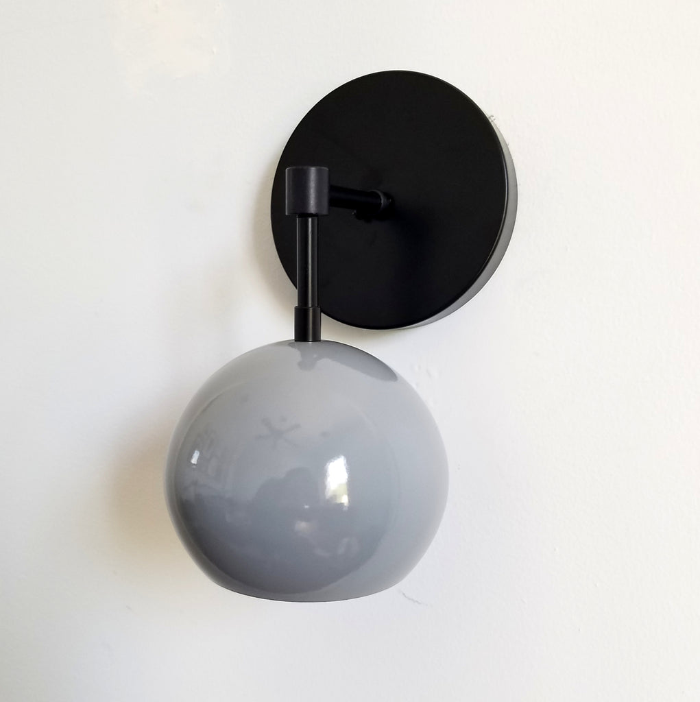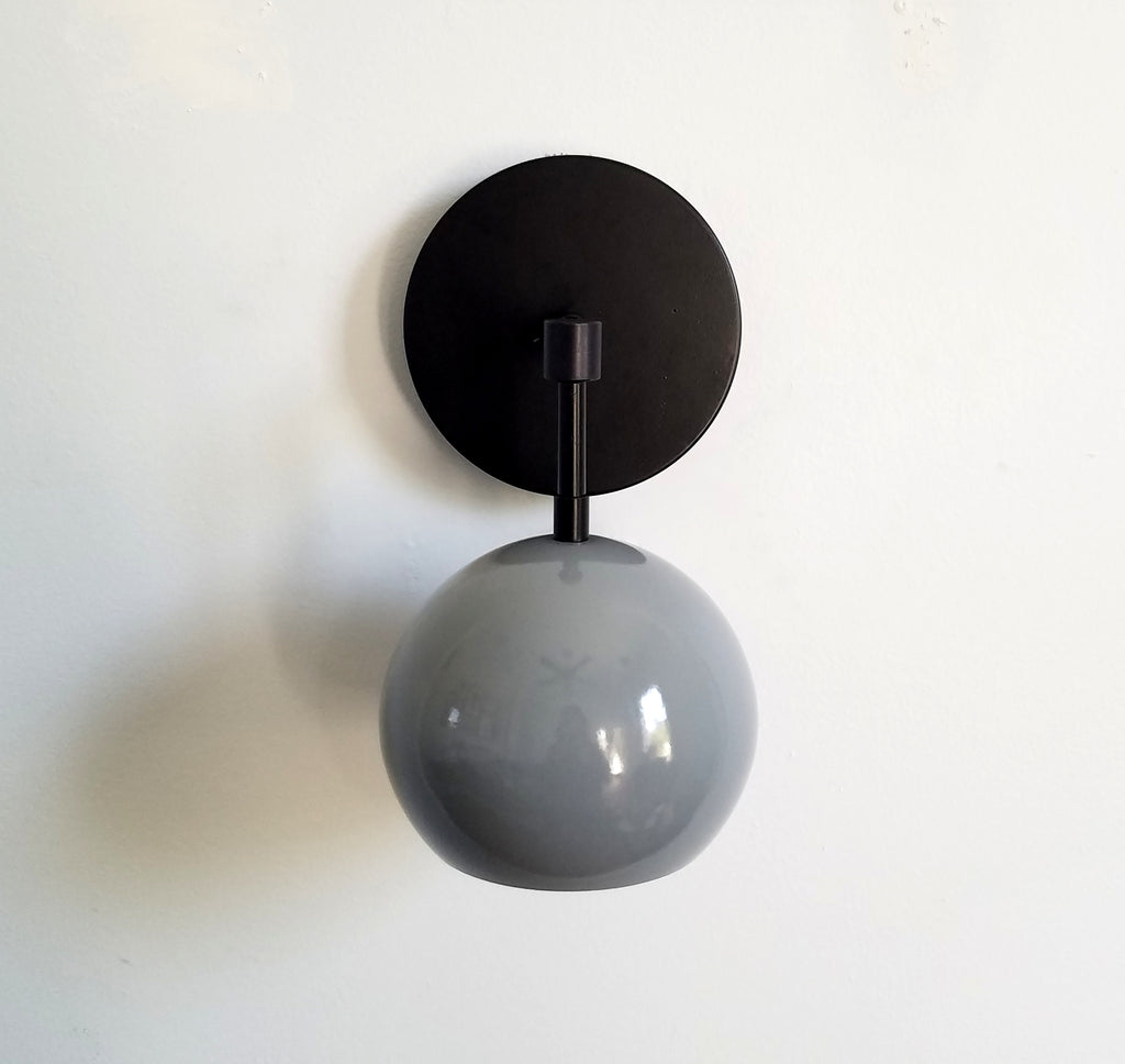 The Loa Sconce is a simple beautiful sconce featuring a globe-shaped slate grey shade with complimentary metal finish of either brass, chrome, copper, or matte black. This simple sconce can work as accent lighting, bathroom, lighting, or to illuminate a picture. The fixtures includes one medium / E26 screw base socket that accommodates up to a 60W bulb.