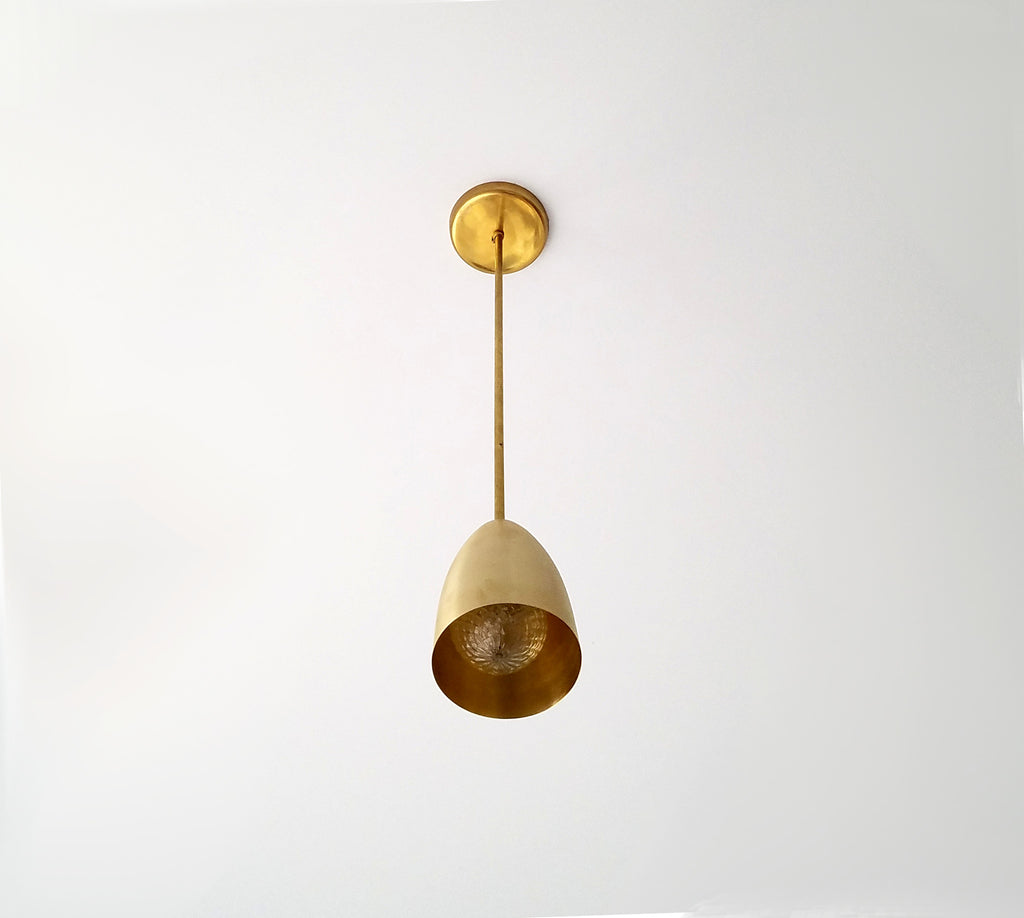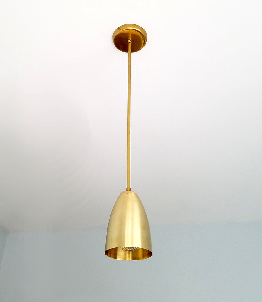 The Michoud Metal Cone Pendant embraces industrial design but adds a little glam. The six-inch long cone pendant light comes in three finishes: raw brass, chrome, and matte black. This industrial-style cone pendant is ideal in urban homes, modern loft conversions, etc.