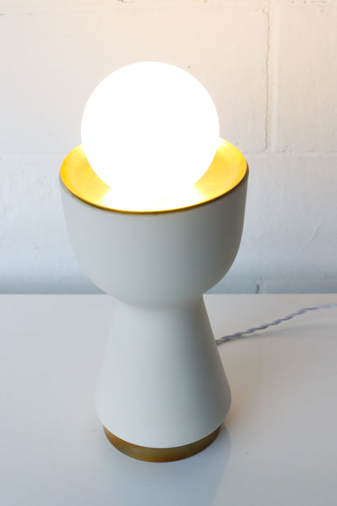 Designed in our vibrant New Orleans studio and assembled with precision, the Sculptural Margot Lamp strikes the perfect balance between minimalism and uniqueness. Its versatile aesthetic effortlessly complements any room, making it a stylish addition to your home decor. The raw brass details on the lamp will develop a patina over time or can be polished occasionally to retain the gold sheen.