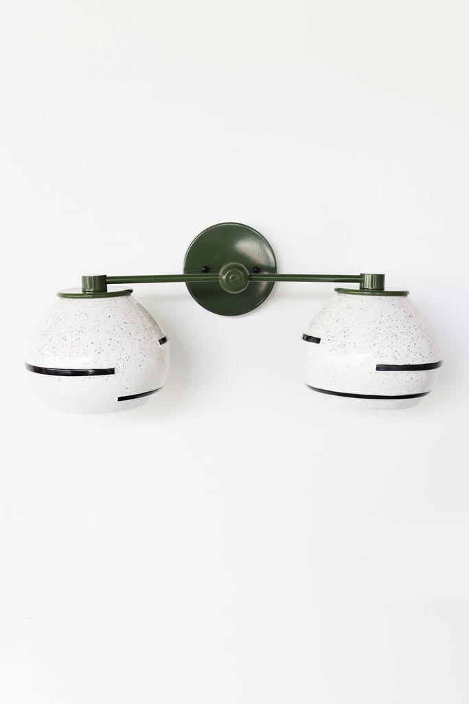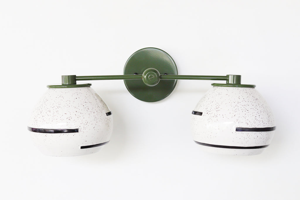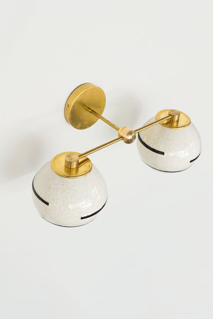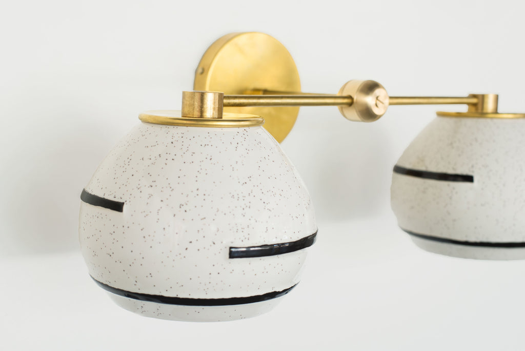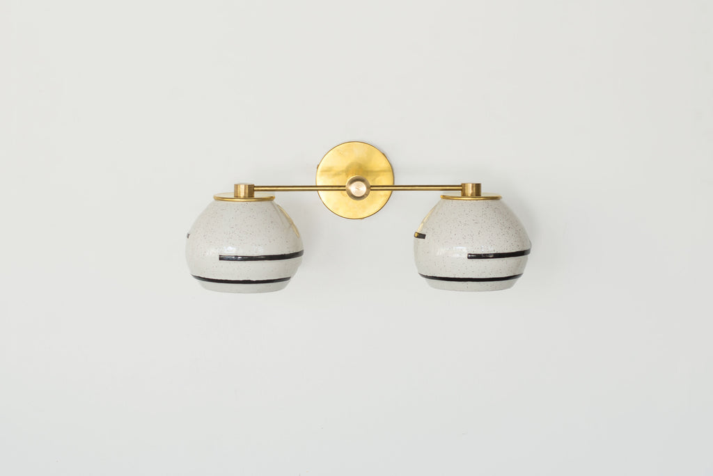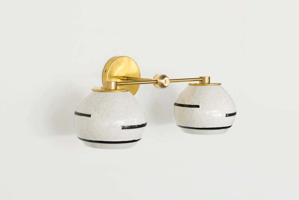 Inspired by the silt texture of the Mississippi in Southern Louisiana, the Delta Sconce combines an earthy glaze with contrasting geometric black lines that partially wrap the shade. Compliments many design types including earthy bohemian, mid-century modern, and organic modern design.