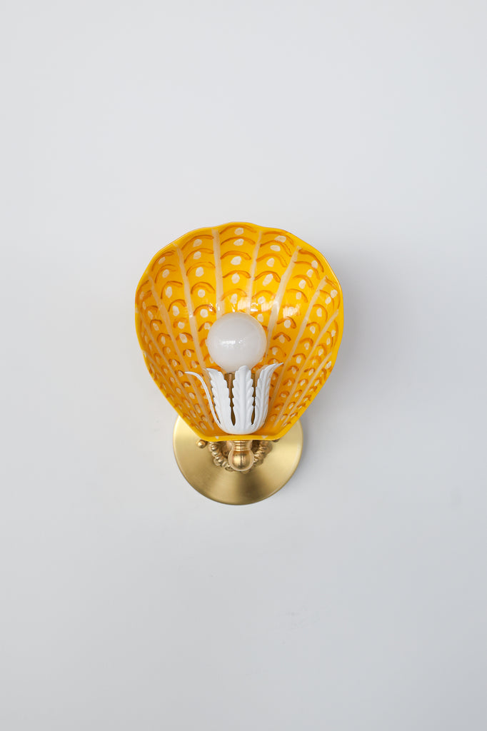 Yellow, Orange, & White Hand-Painted Coquille Sconce: One of One