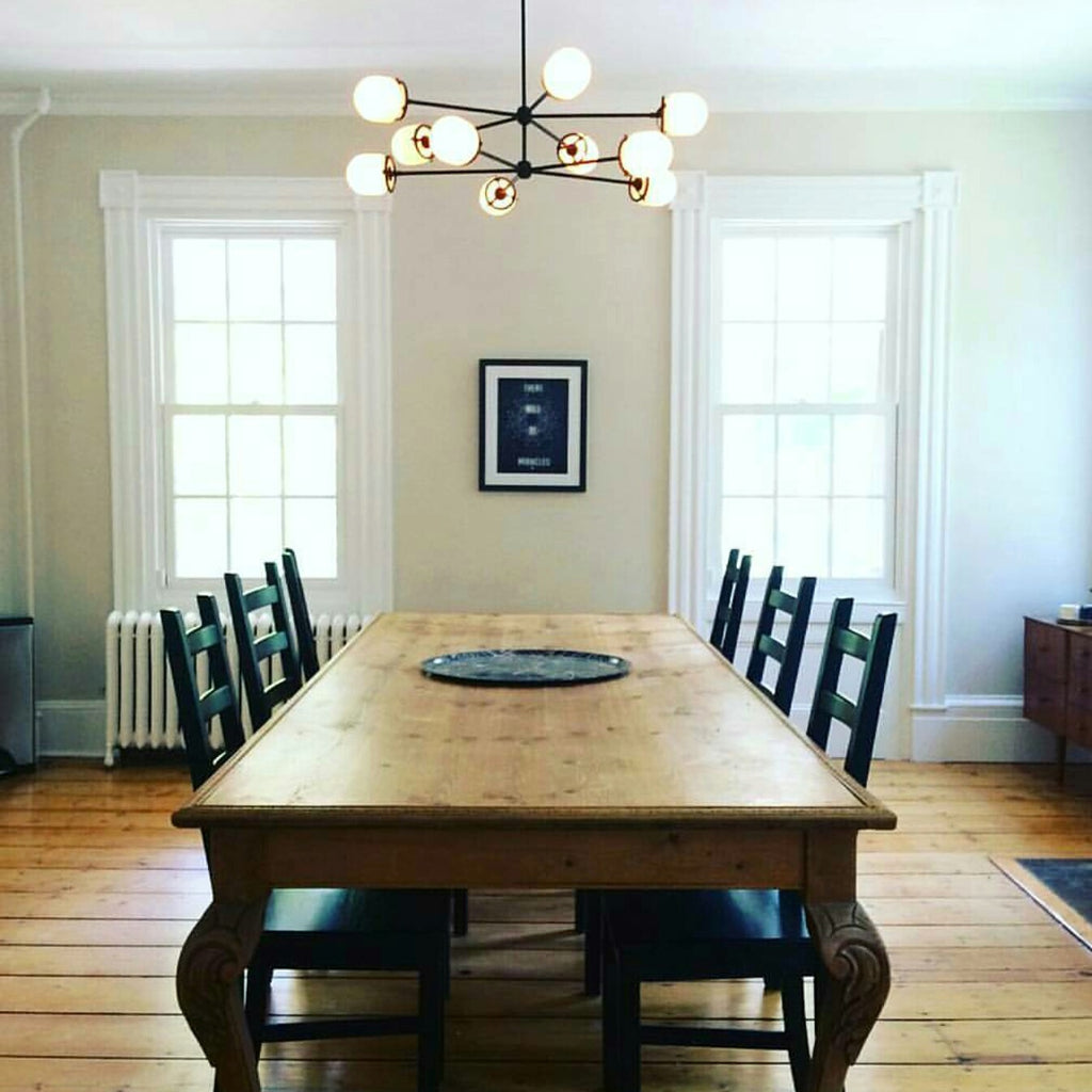 There are three metal finish options available: (1) raw brass, (2) chrome, or (3) matte black. You also have two glass cover options: (1) white glossy/opal or (2) clear. Downrod length can be adjusted (either lengthened or shortened) to fit your space. Just message me for details.