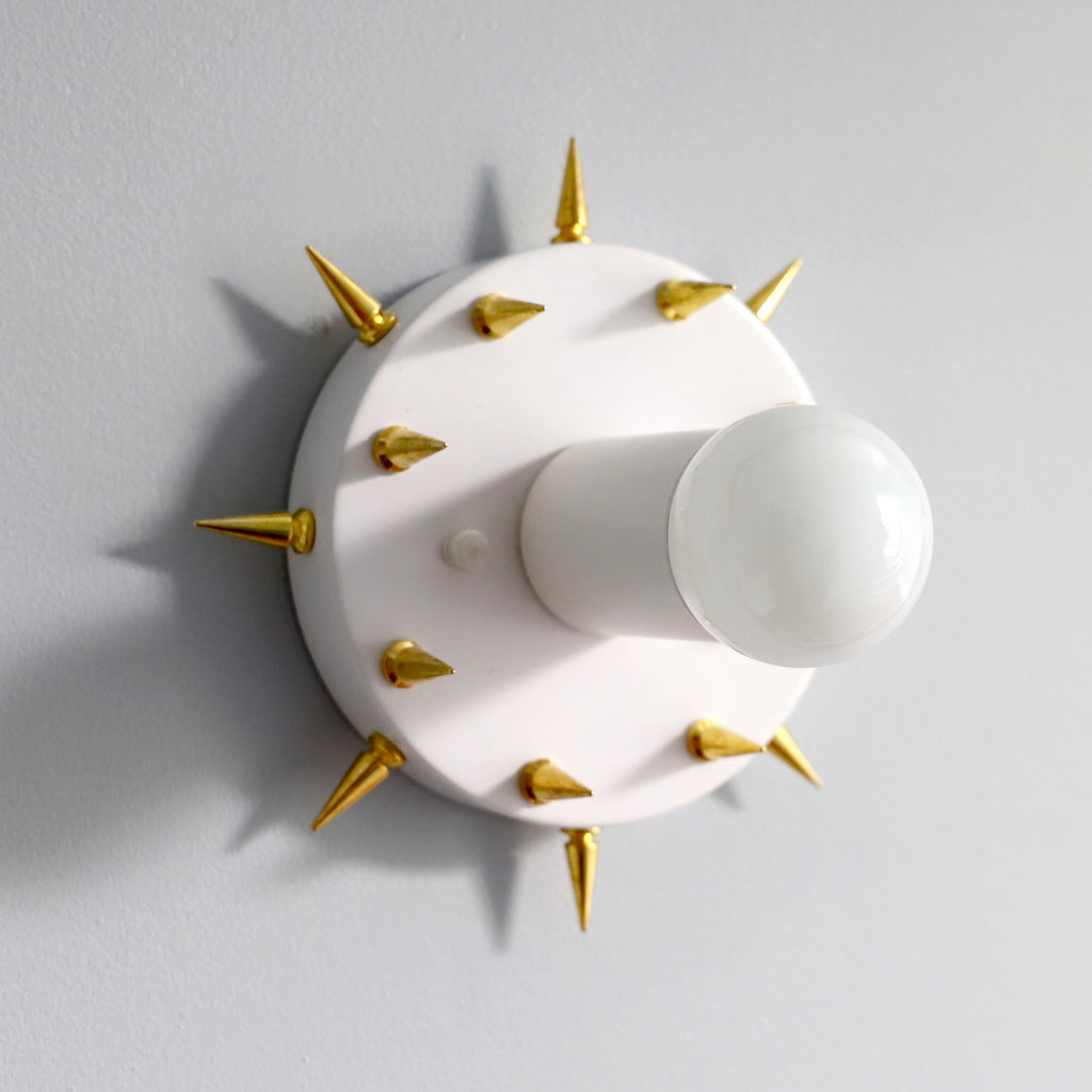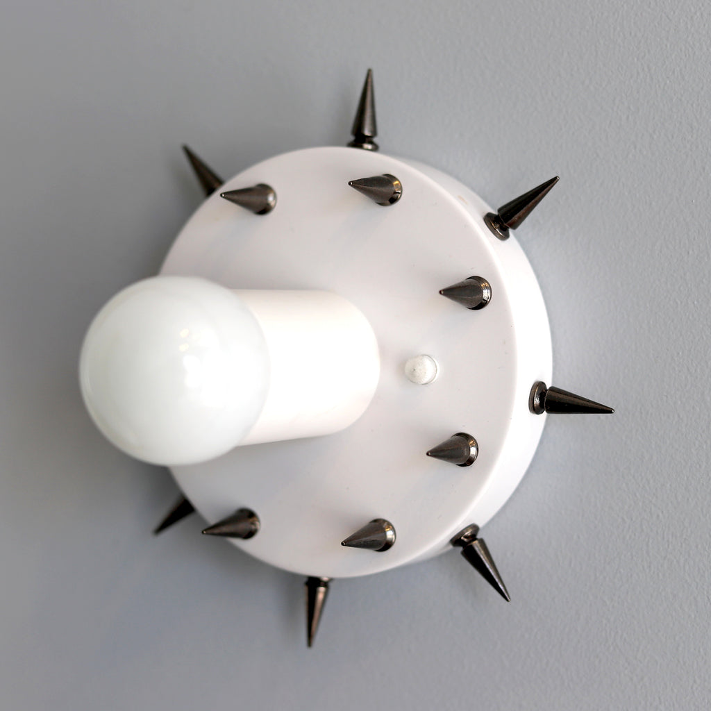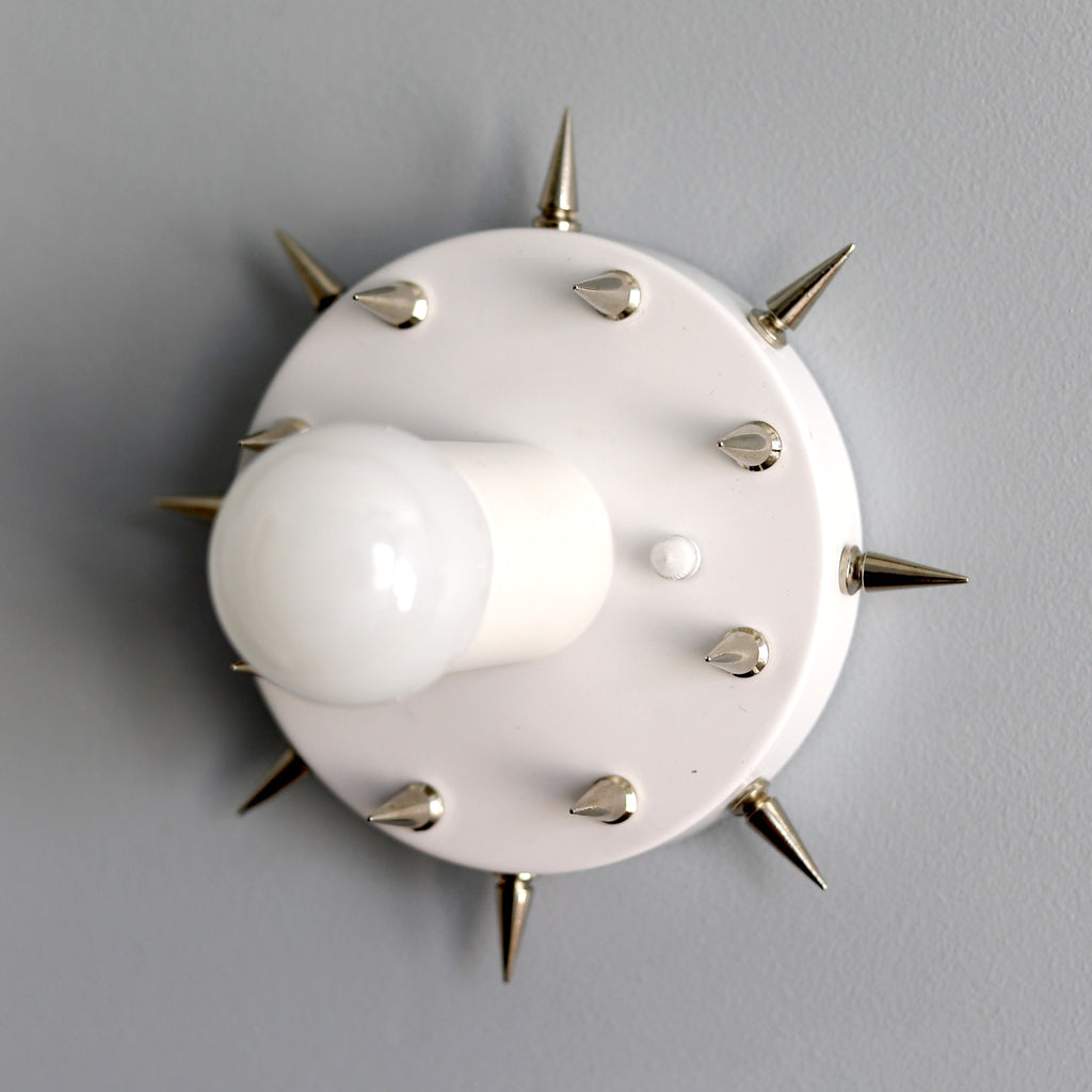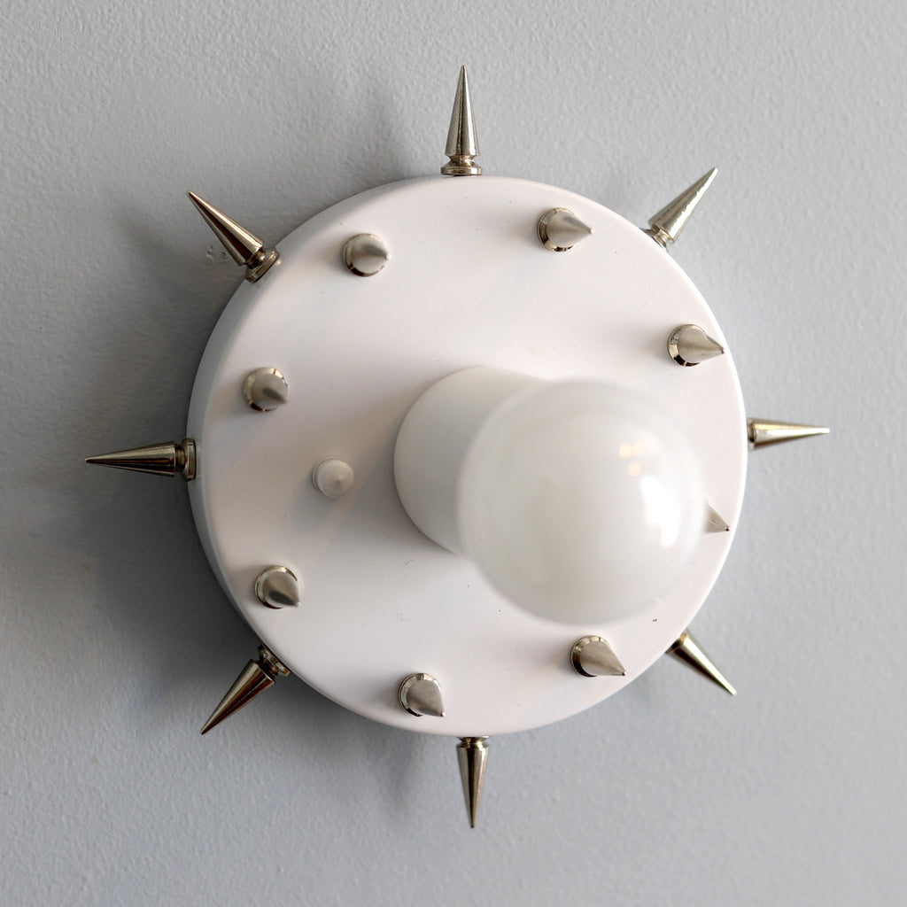 The Sid is a simple little sconce or flushmount ceiling fixture with long, pointy spikes. With it's small size and rock-n-roll style, this fixture could be used almost anywhere. We love the idea of putting it as a series of fixtures in a bathroom or as part of a walk-in closet.