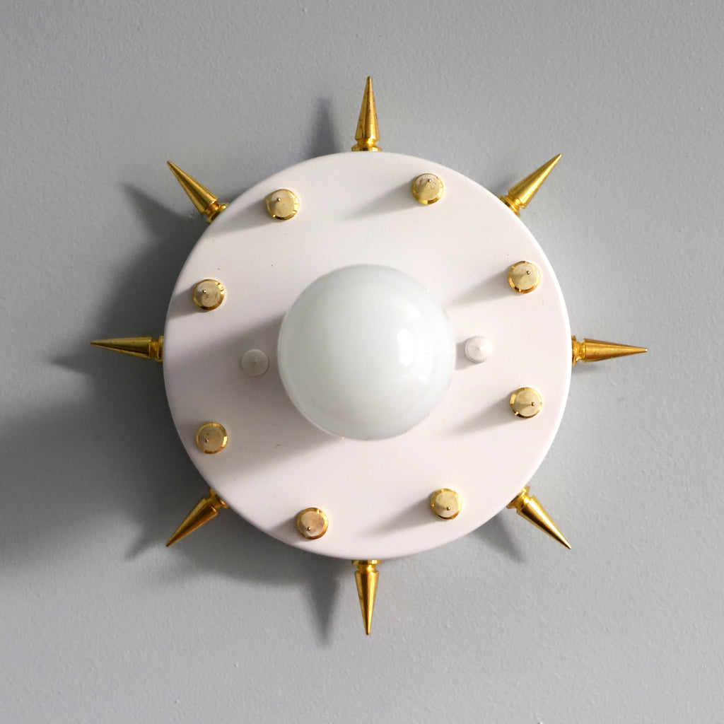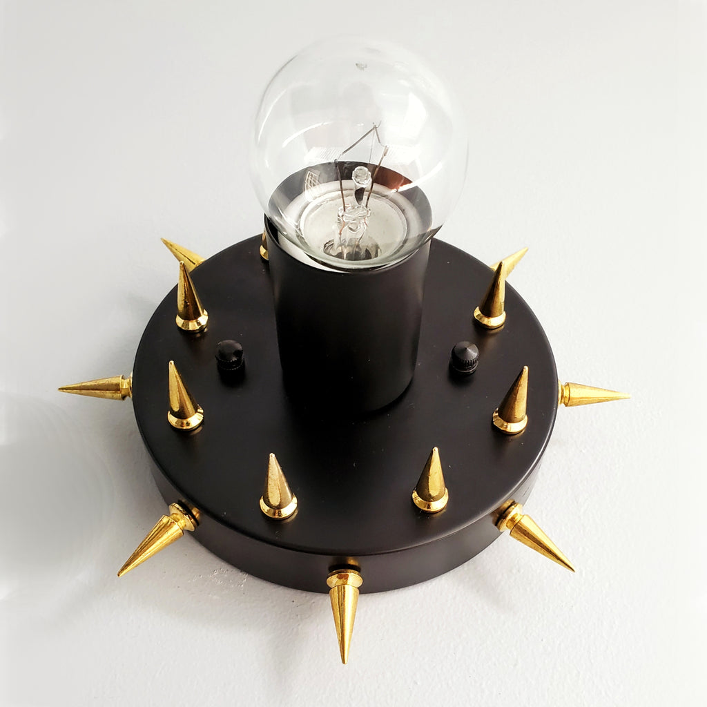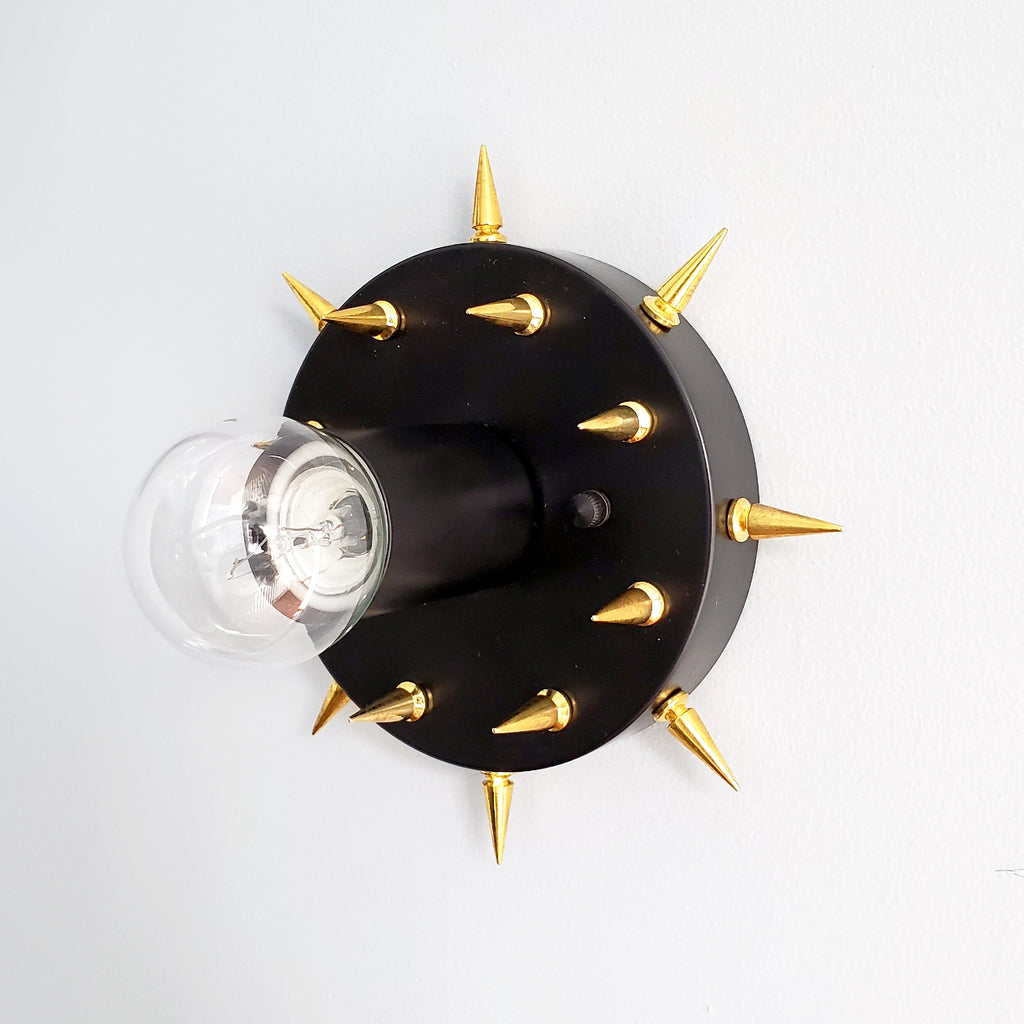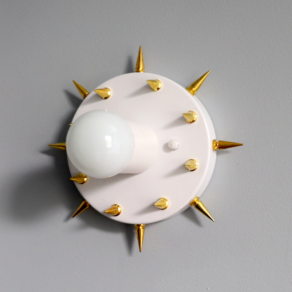 The Sid is a simple little sconce or flushmount ceiling fixture with long, pointy spikes. With it's small size and rock-n-roll style, this fixture could be used almost anywhere. We love the idea of putting it as a series of fixtures in a bathroom or as part of a walk-in closet.