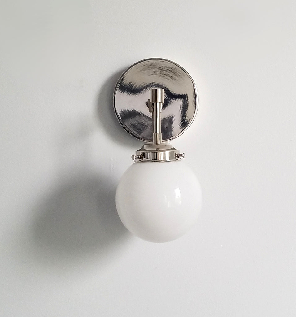 Named after Josh Cohen, a famous New Orleans glass blower, the Cohen Sconce is beautifully uncomplicated.  Available in brass or chrome, The Cohen Sconce has a simple design pairs with a handblown clear glass cover.  Because the glass is handblown, there are occasional bubbles or "waviness" in the glass.  The Cohen sconces would be beautiful flanking a bathroom mirror, in the kitchen providing additional lighting, or over your nightstand.