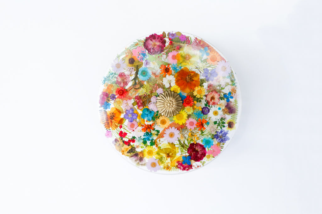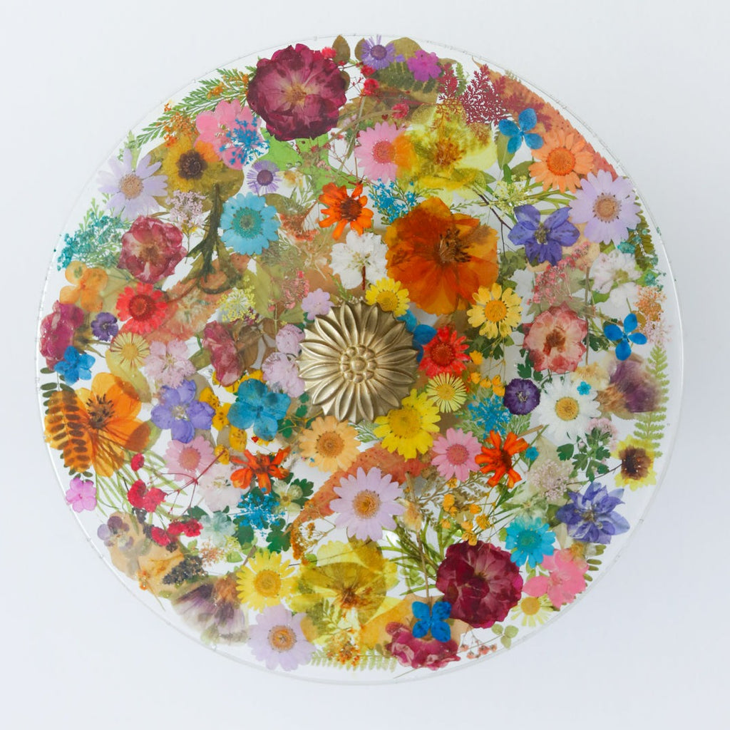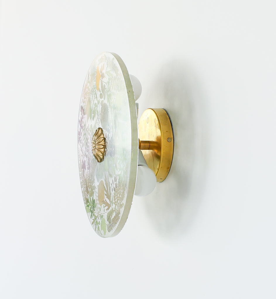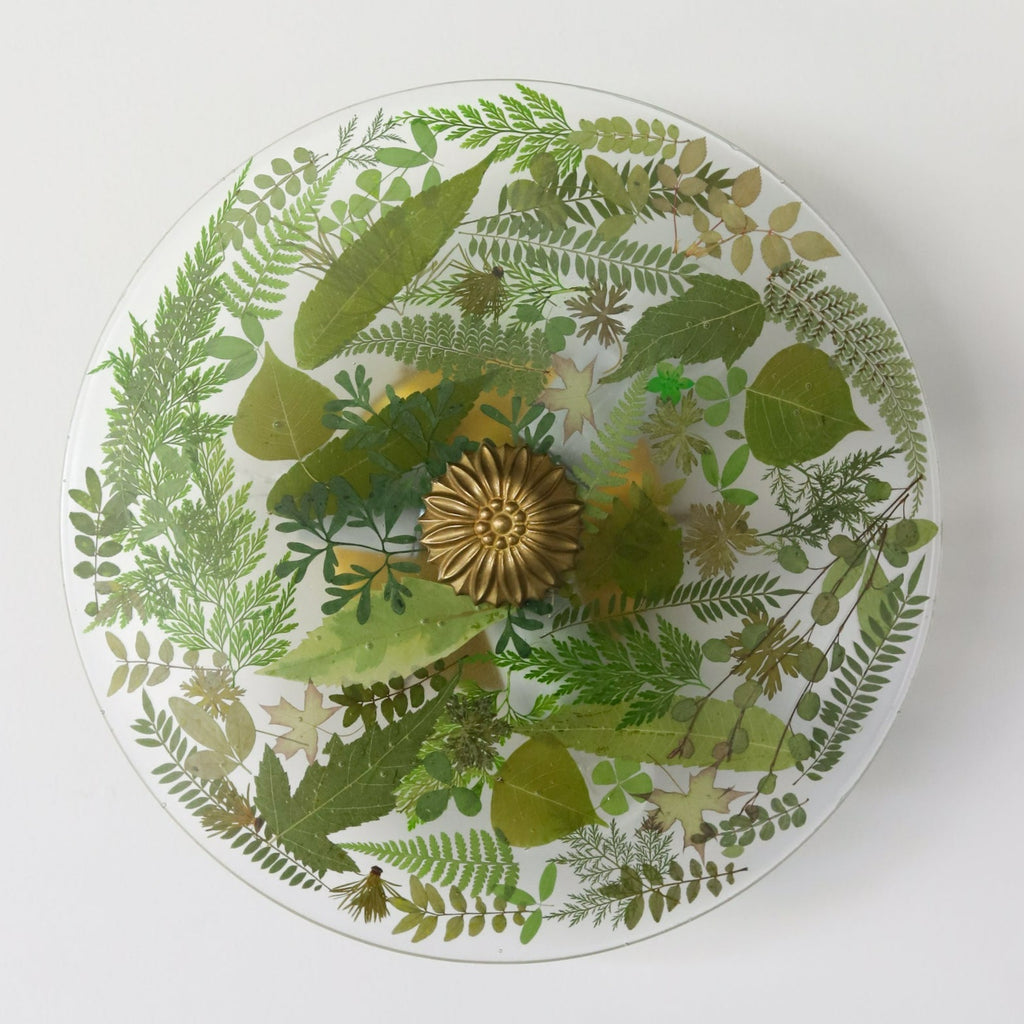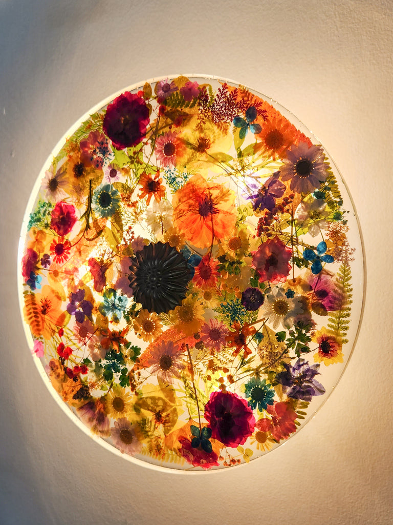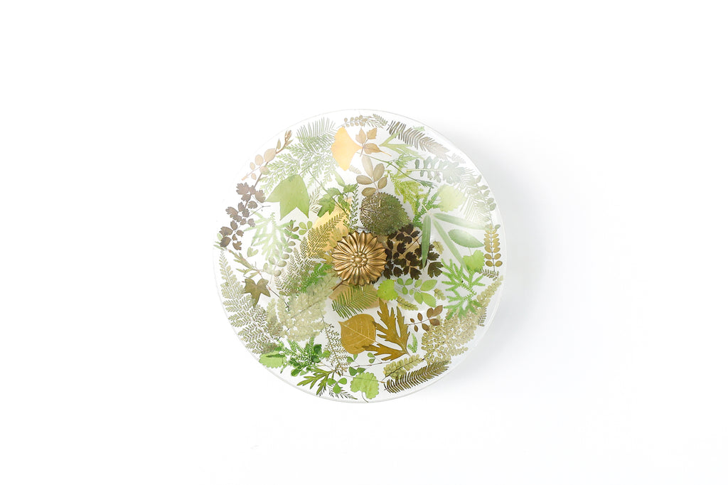 This beautiful sconce or flushmount offers a unique way to bring botanical elements into your décor. The handmade disc features real dried leaves or flowers encased in resin. This romantic fixture is perfect as accent or ambient lighting as a single fixture or as part of a larger installation.