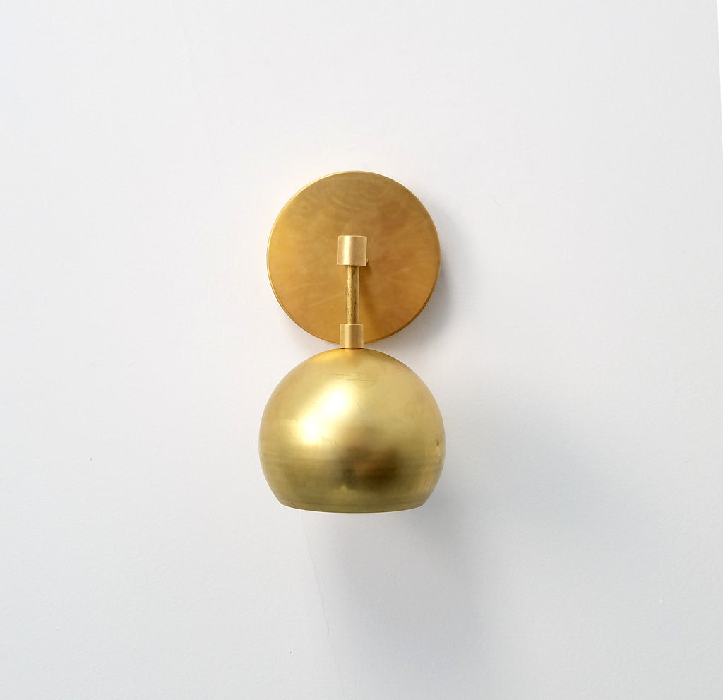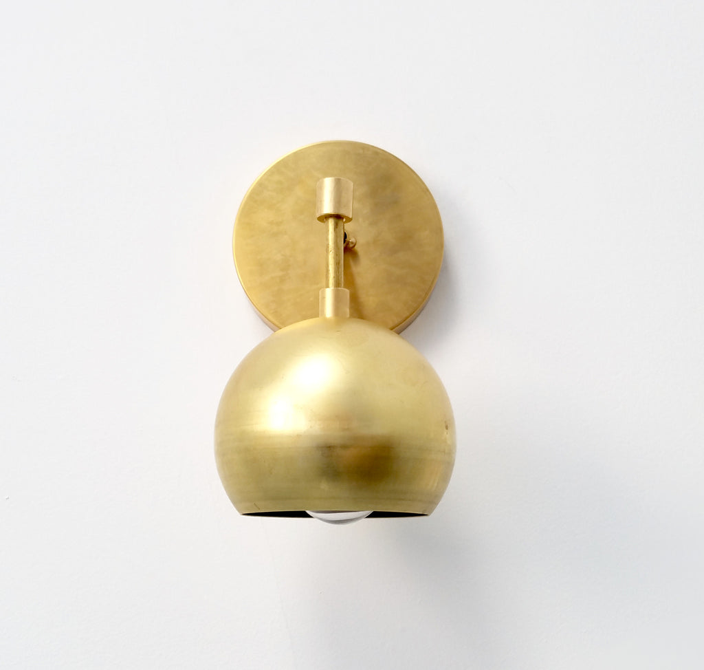 The Loa Sconce is a mid-century modern-inspired wall sconce with a raw brass finish that will develop a rich patina over time.  It is complete with a circular backplate.  We love this fixture as a bedside sconce, as a pair in a bathroom, or as accent lighting.