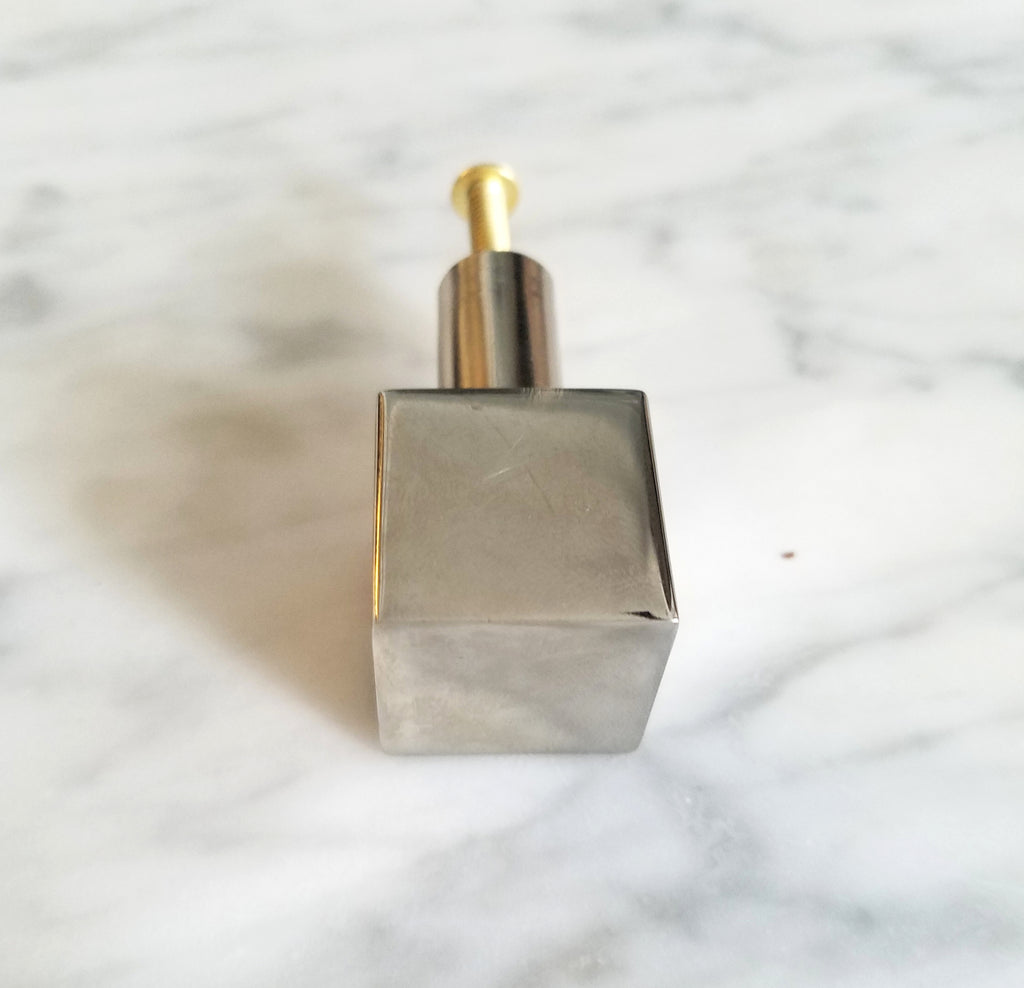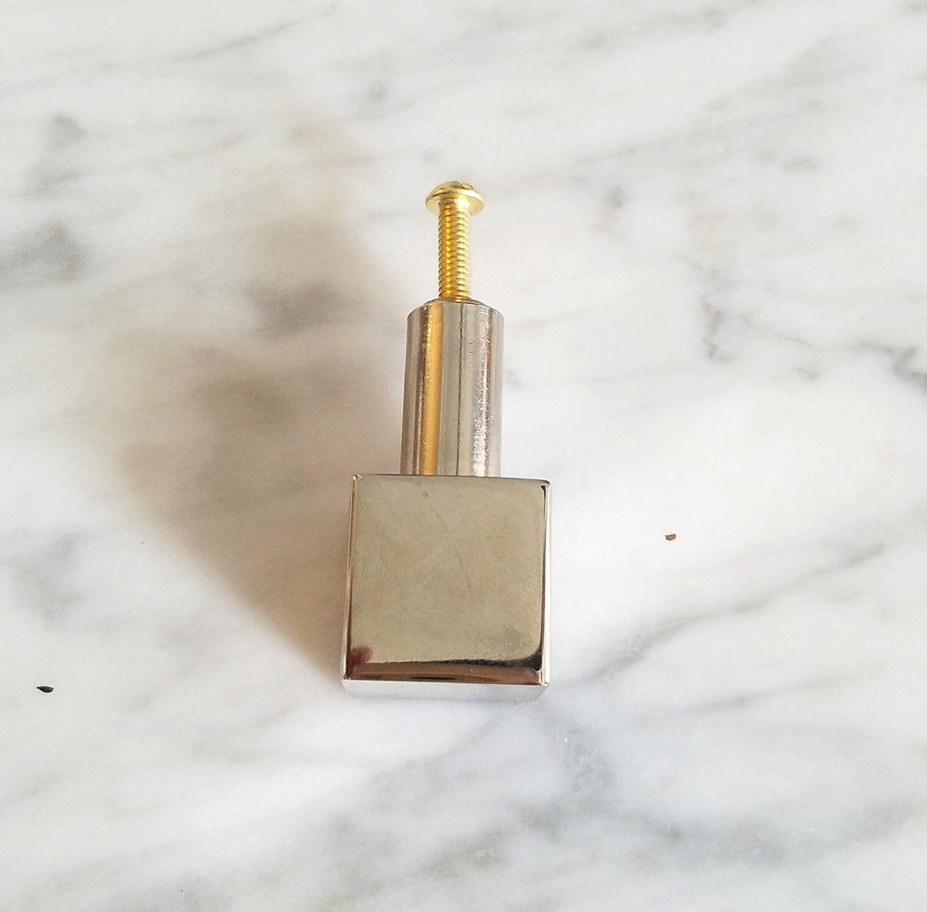 The Jackson Knob features a solid brass or chrome plated cube on a 7/8 in long rod.