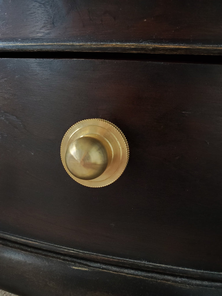 The Phillip Drawer Pull blends timeless elegance with sculptural charm. Featuring a hefty 1-inch solid brass ball anchored to a beaded disc base, this knob is a modern heirloom with vintage appeal. Its classic detailing and warm golden tone add instant sophistication to cabinetry, dressers, built-ins, and more. Whether you're restoring a beloved antique or updating a contemporary piece, the Phillip Pull is a statement-making detail that works across styles.