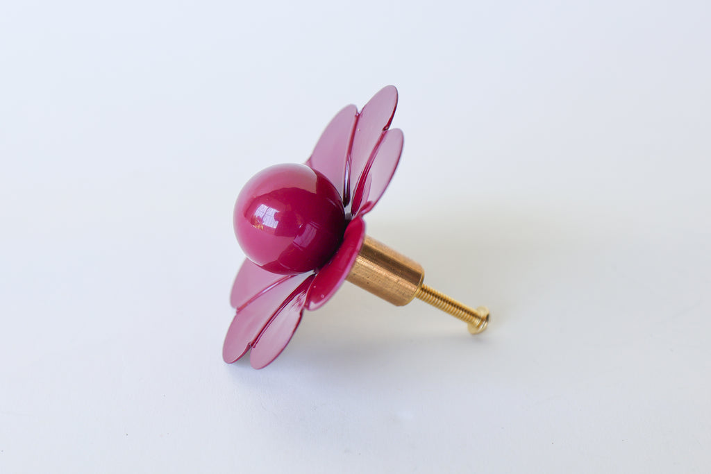 Add a playful pop of color to your furniture with the Solid Color Daisy Knob by Sazerac Stitches. Available in a variety of vibrant shades, each knob features a charming daisy design with smooth, petal-like details and a glossy, rounded center. Perfect for brightening up cabinets, drawers, or any space needing a bold, vintage-inspired accent. Choose from our list of curated colors OR contact us to discuss a custom color match. The dropdown menu features our curated colors in alphabetical order.