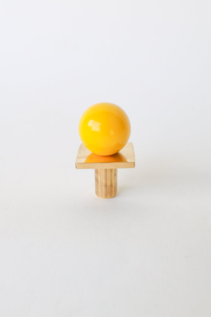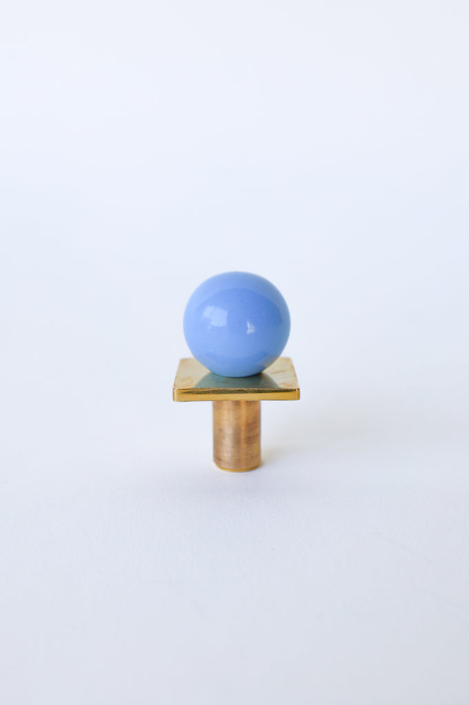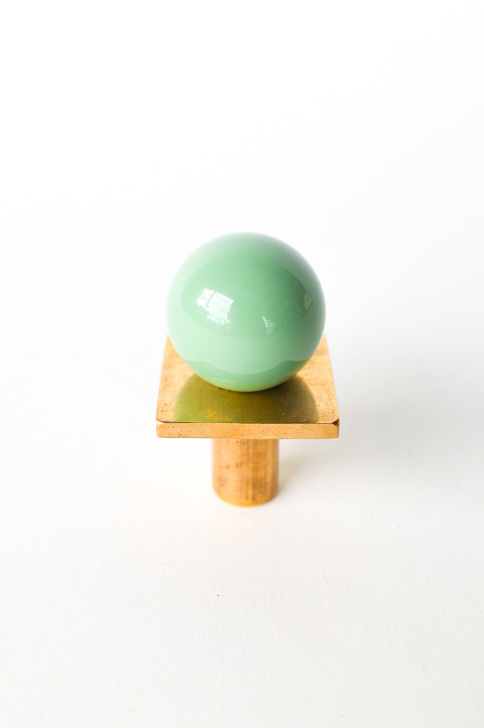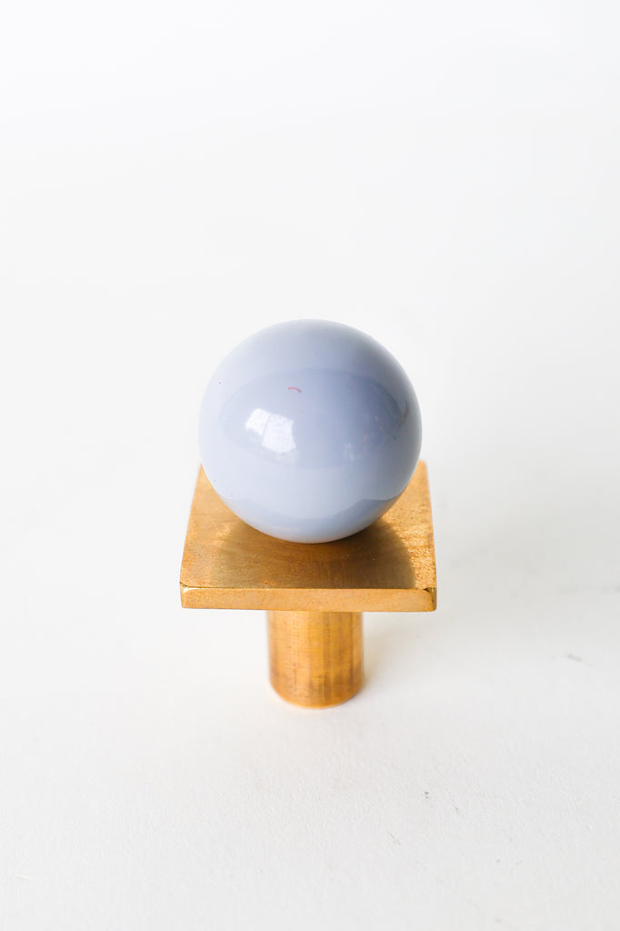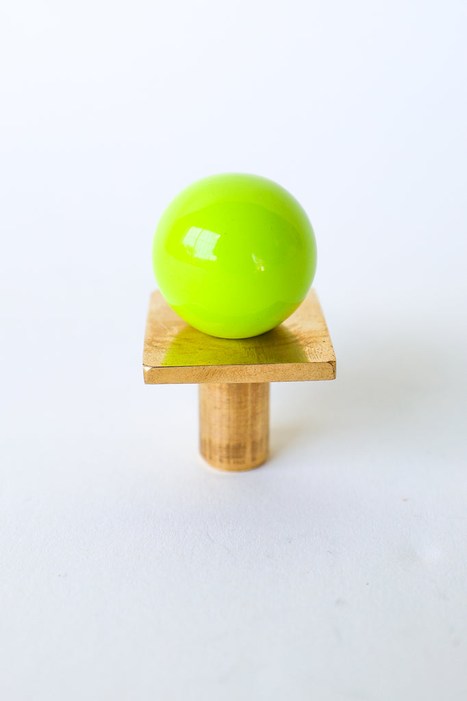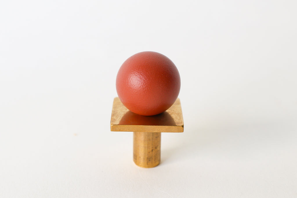 Add a bold pop of color and geometry to your space with our Square Gumball Knob. Featuring a powder-coated steel orb set atop a raw brass square plate and base, this sculptural drawer pull blends playful form with refined materials. It's part of our best-selling Gumball Collection and designed to coordinate seamlessly with all other knobs in the series.