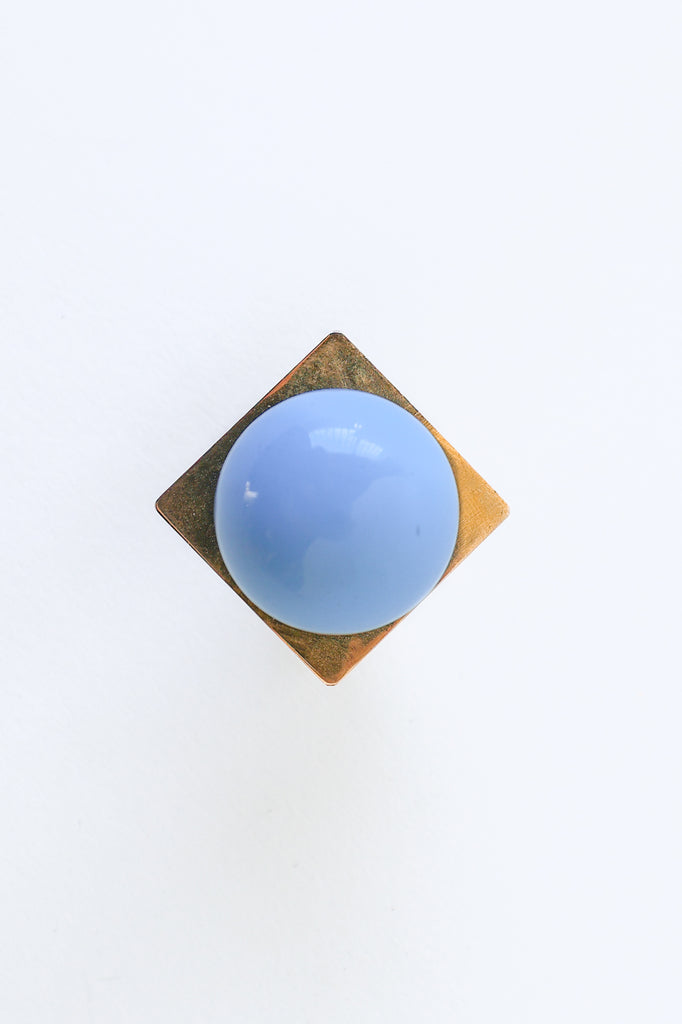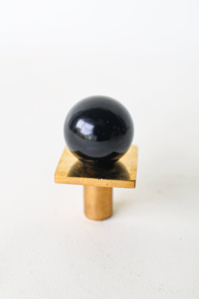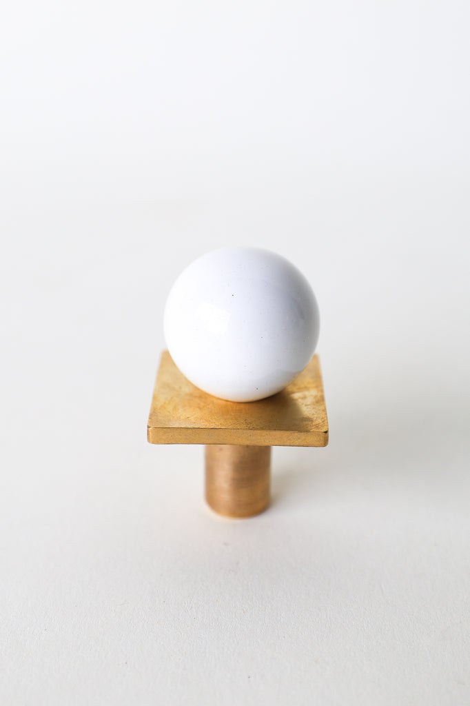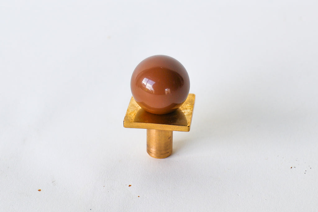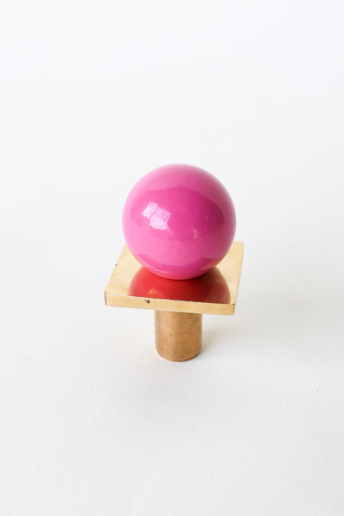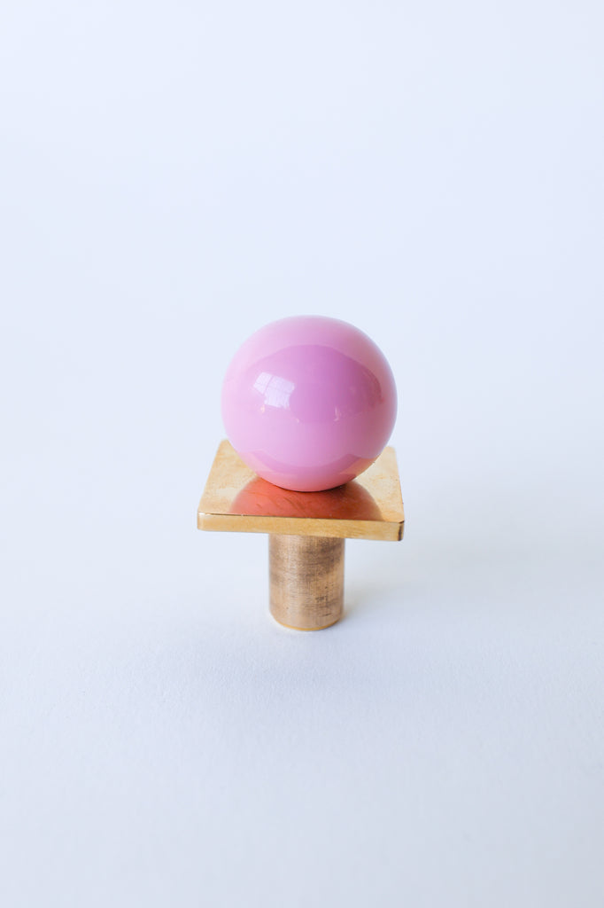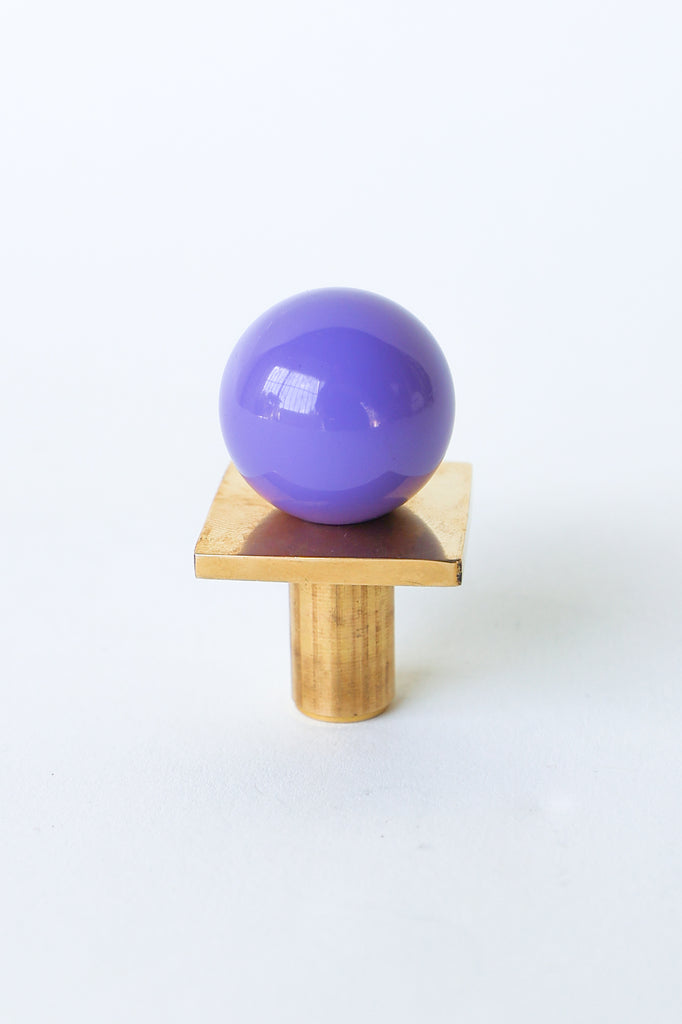 Add a bold pop of color and geometry to your space with our Square Gumball Knob. Featuring a powder-coated steel orb set atop a raw brass square plate and base, this sculptural drawer pull blends playful form with refined materials. It's part of our best-selling Gumball Collection and designed to coordinate seamlessly with all other knobs in the series.