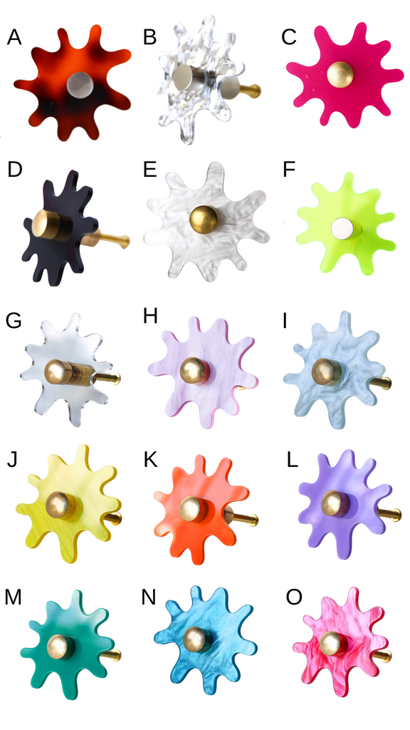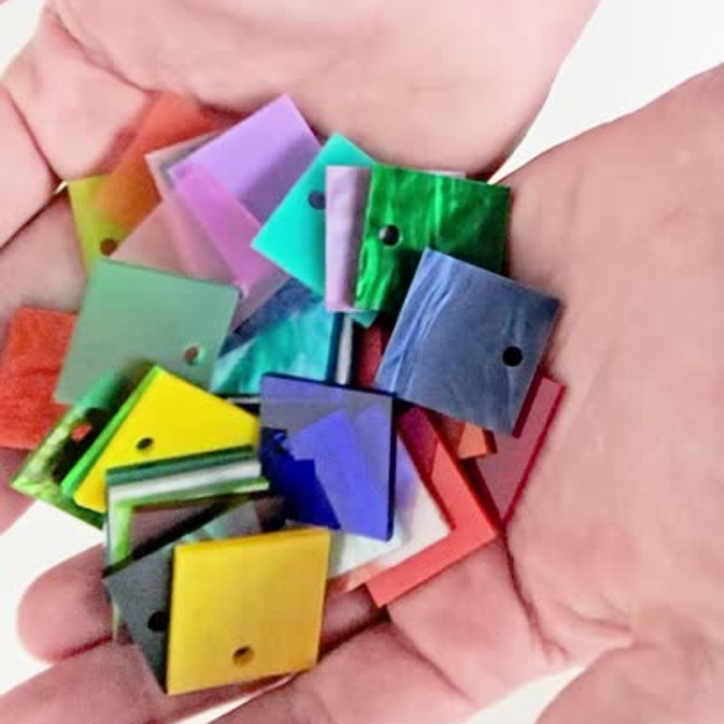 Discover the vibrant colors and textures of our acrylic materials with this individual sample. Measuring approximately 1" x 1", this piece showcases the unique qualities of our acrylic used in our Splat fixtures, Splat knobs, and Circus fixtures.
