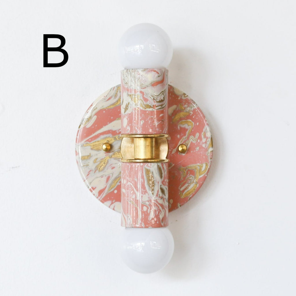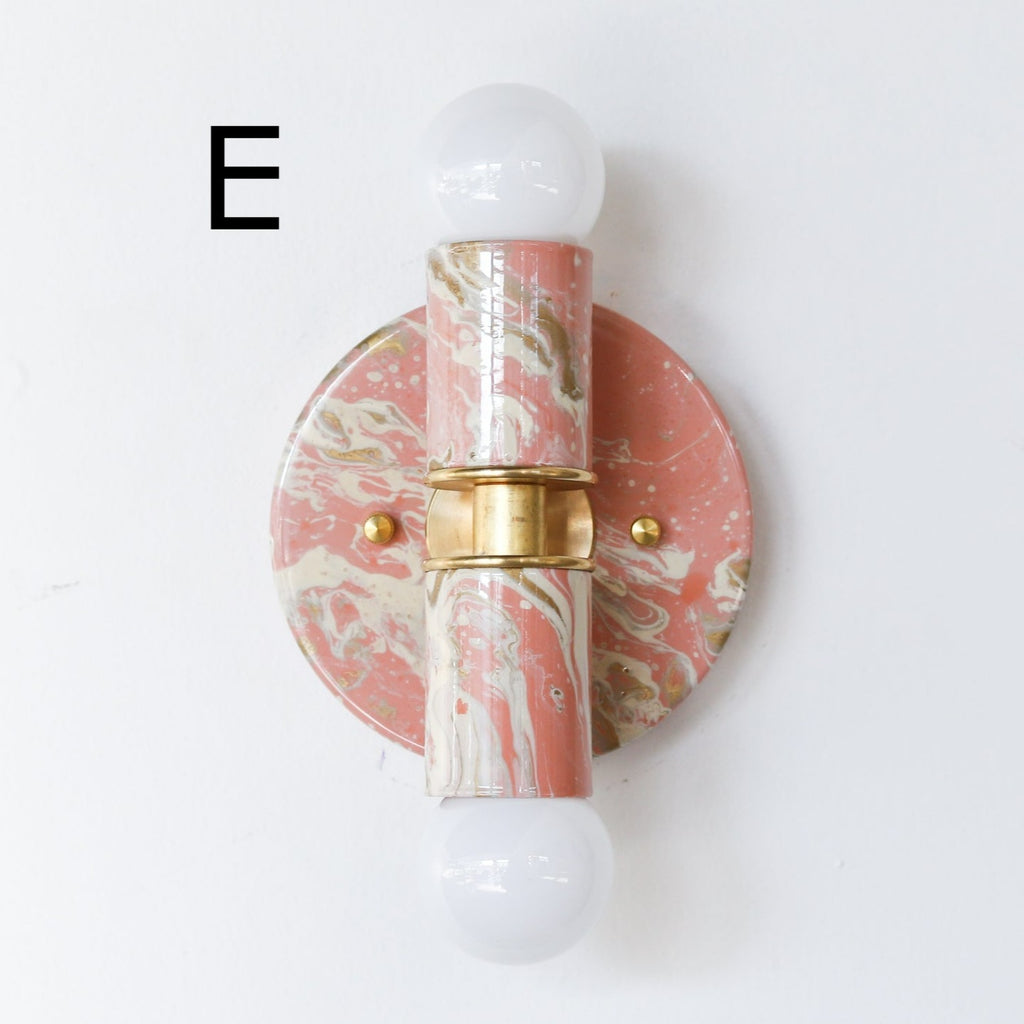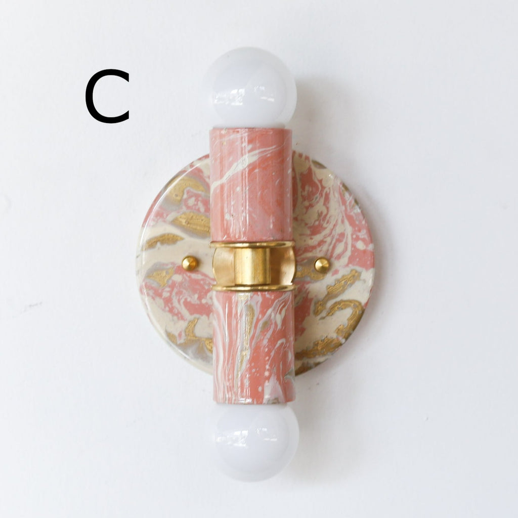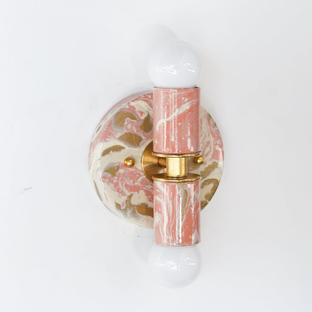 Peach, Cream, & Gold Marbled Thalia Sconces