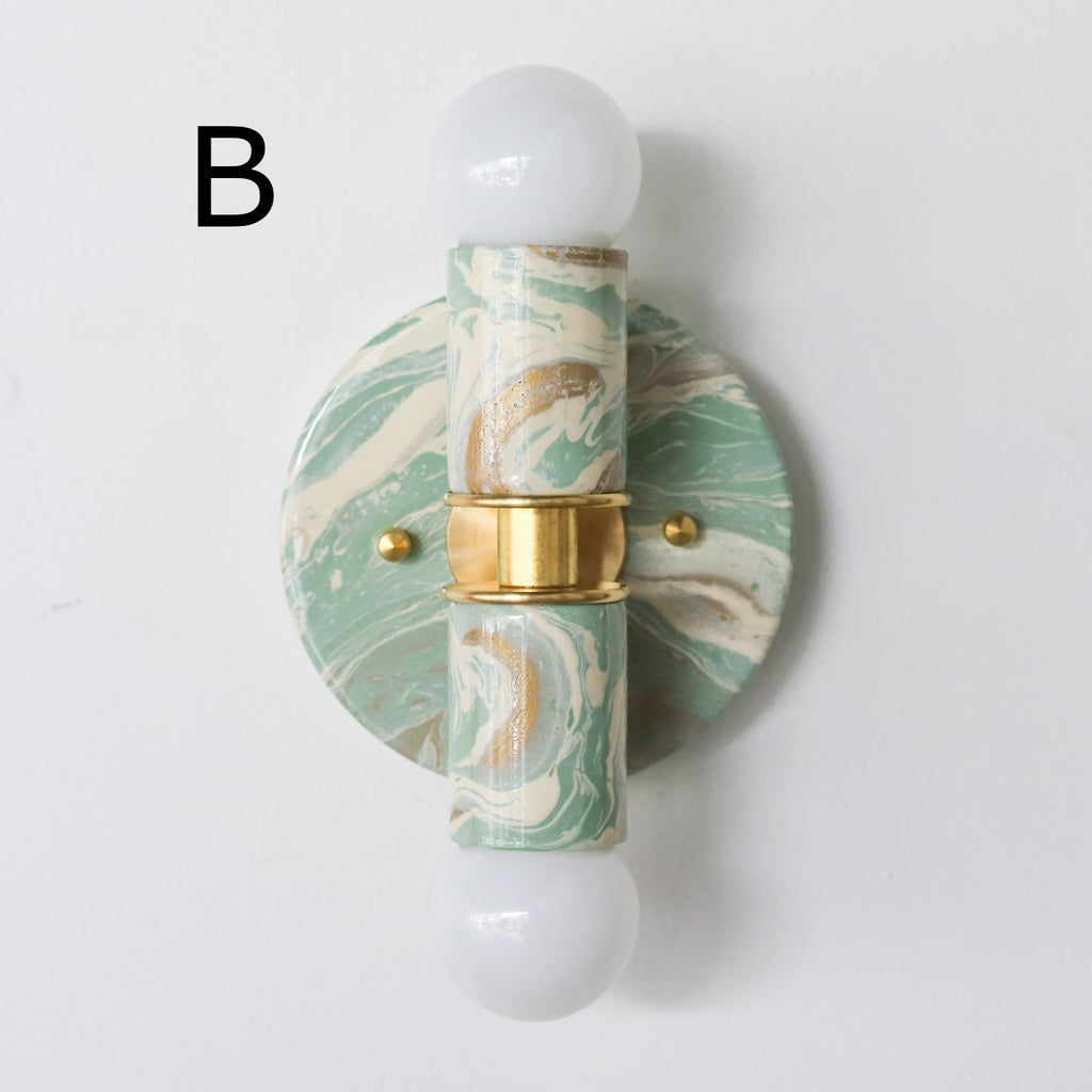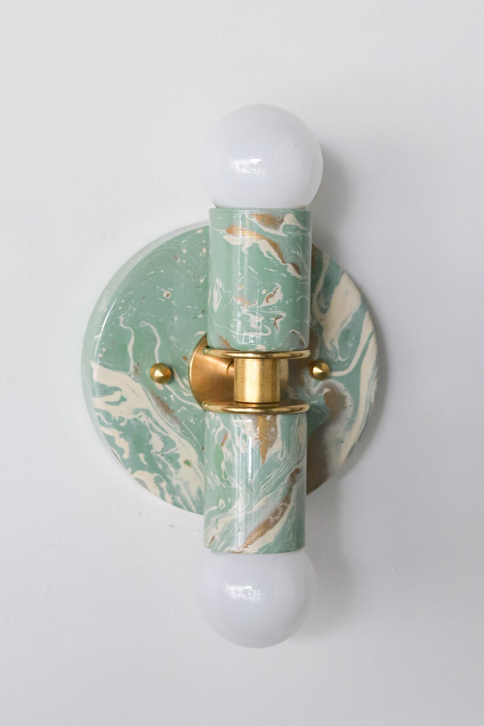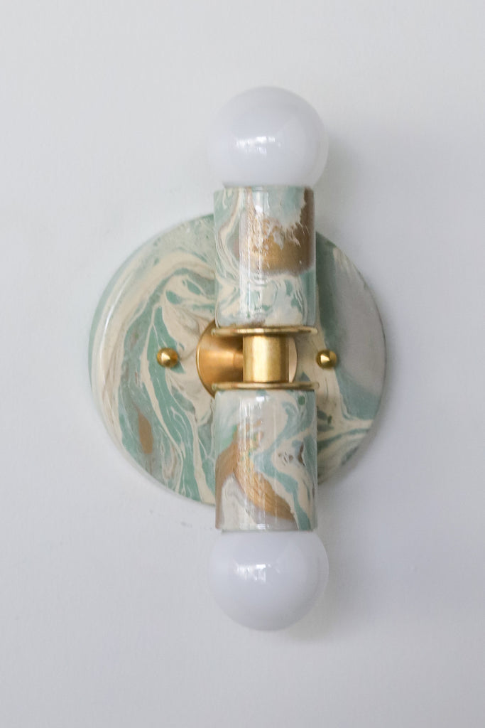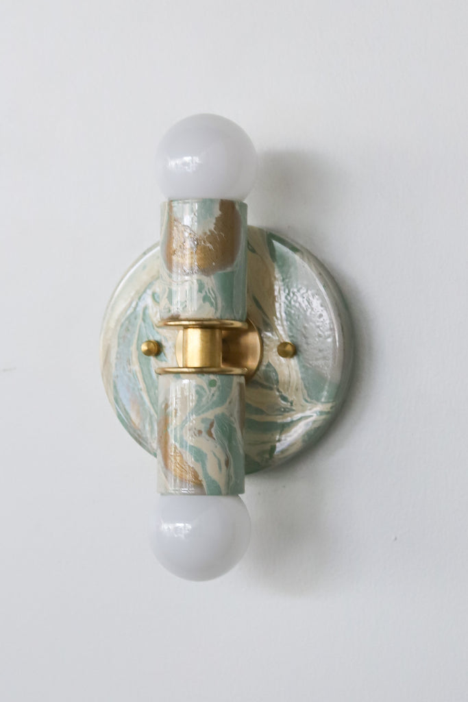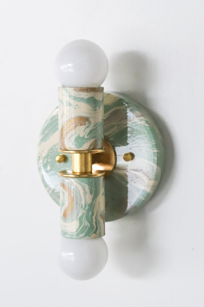 . Vista Green, Cream, & Gold Marbled Thalia Sconces - Sazerac Stitches
