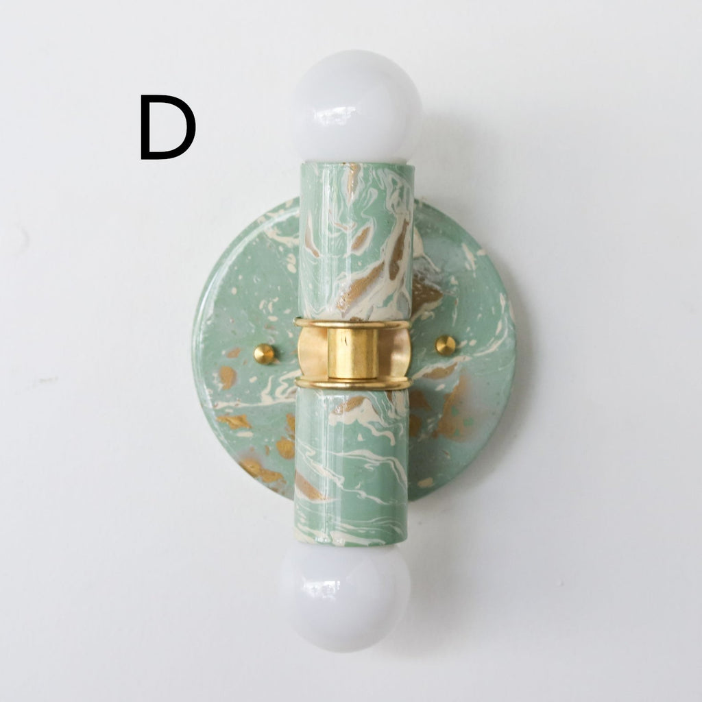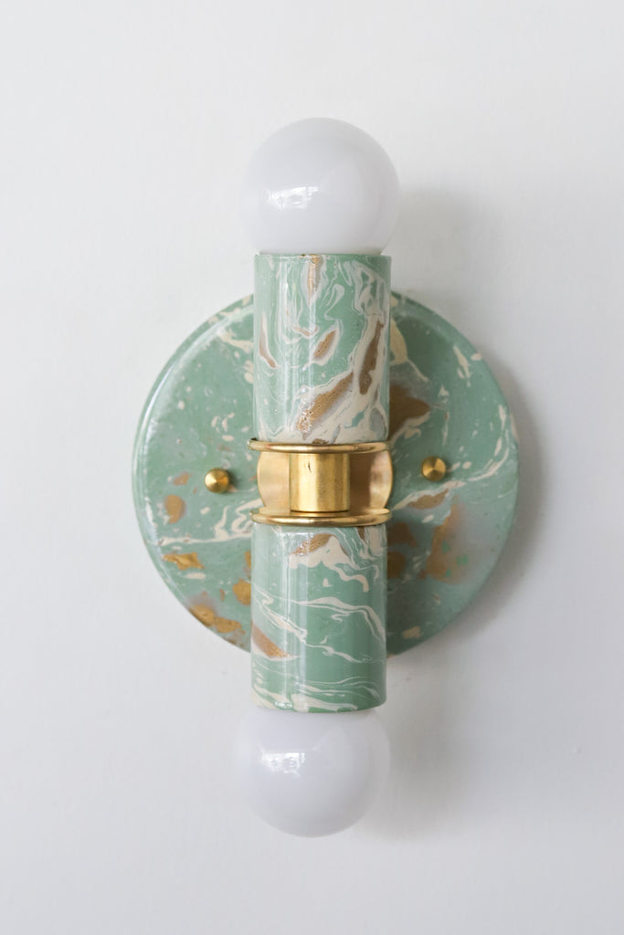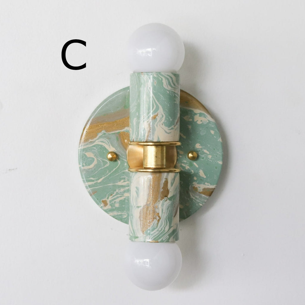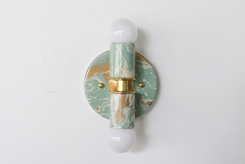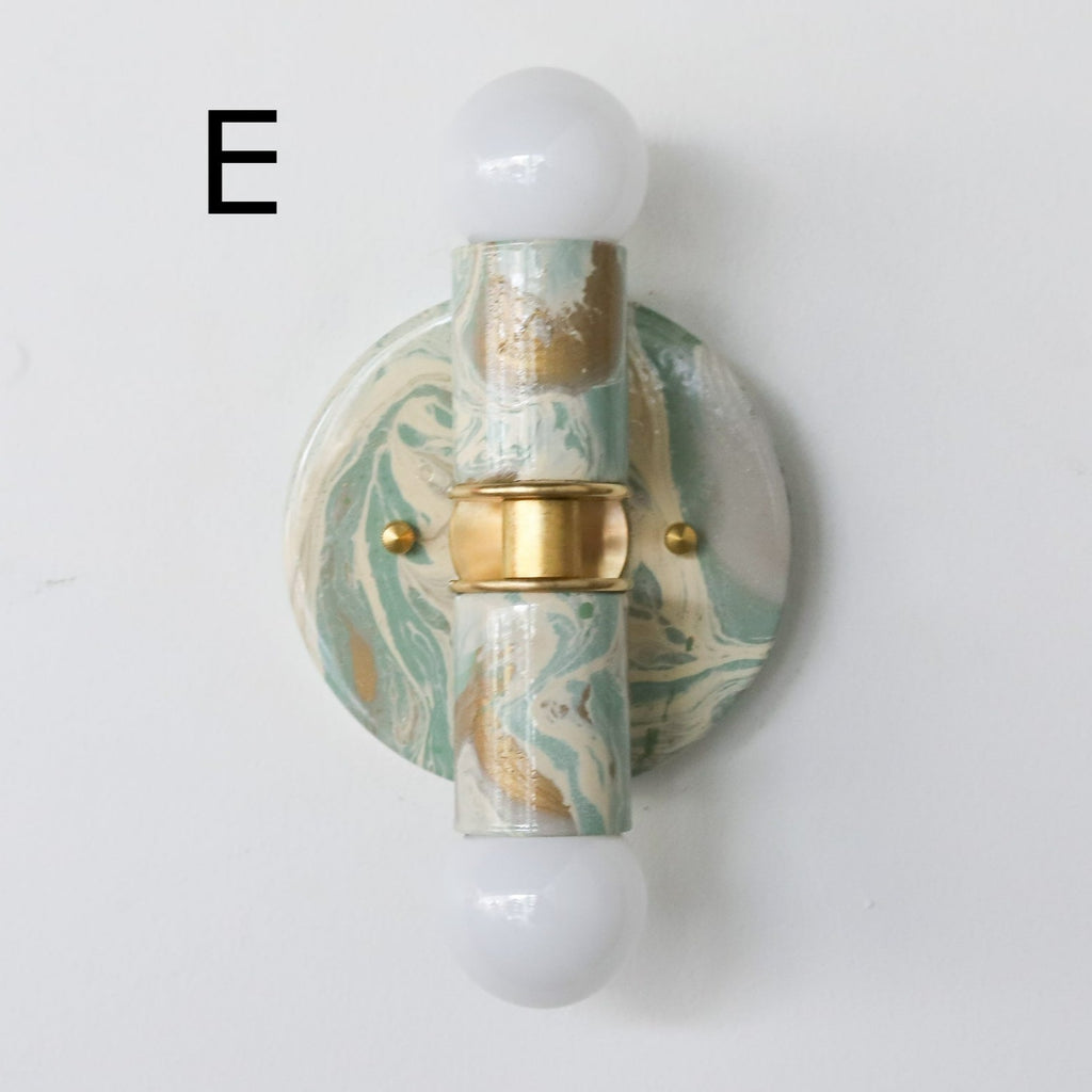 . Vista Green, Cream, & Gold Marbled Thalia Sconces - Sazerac Stitches
