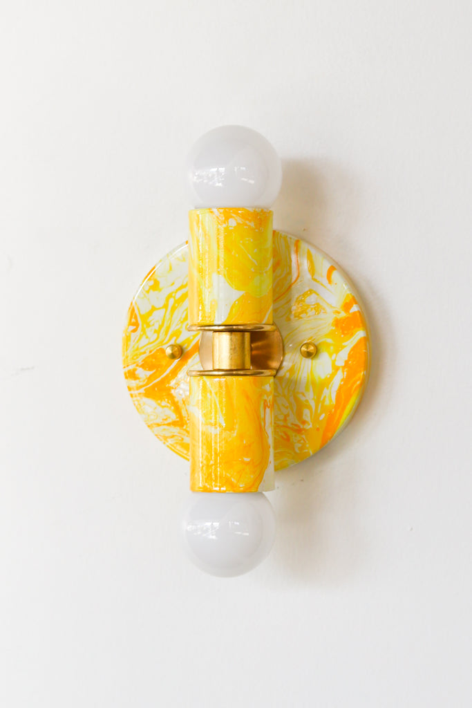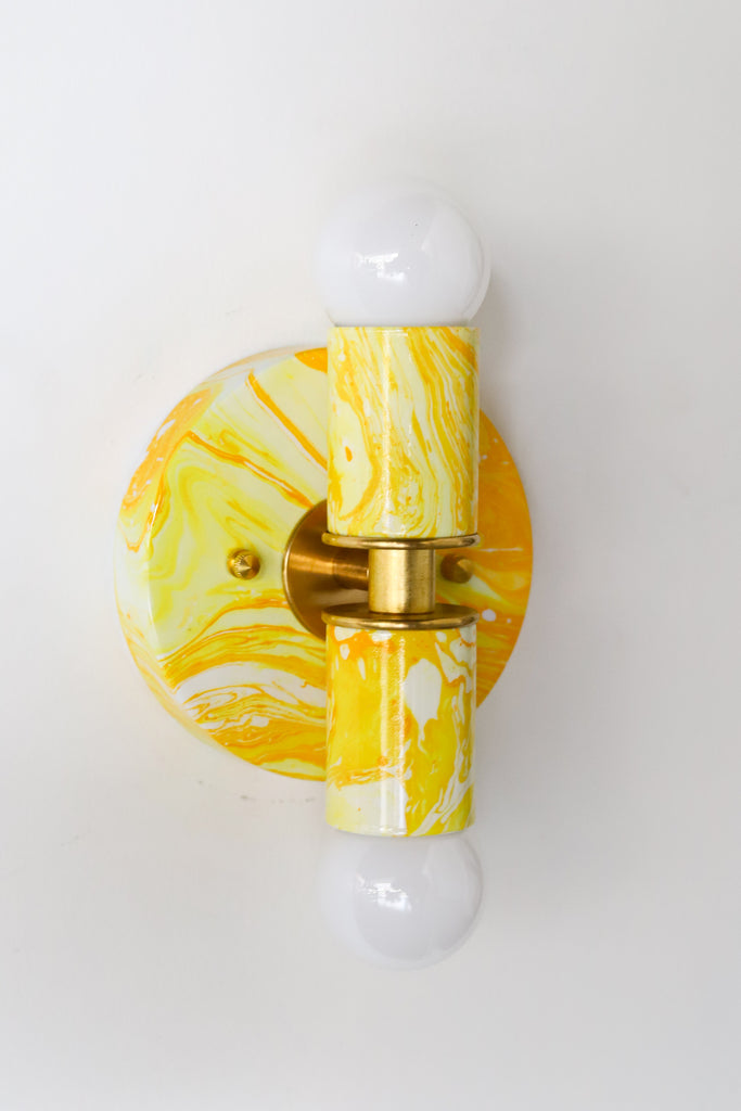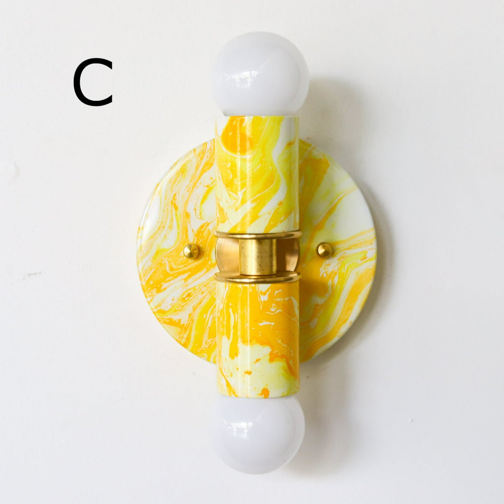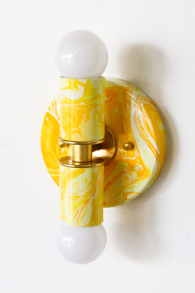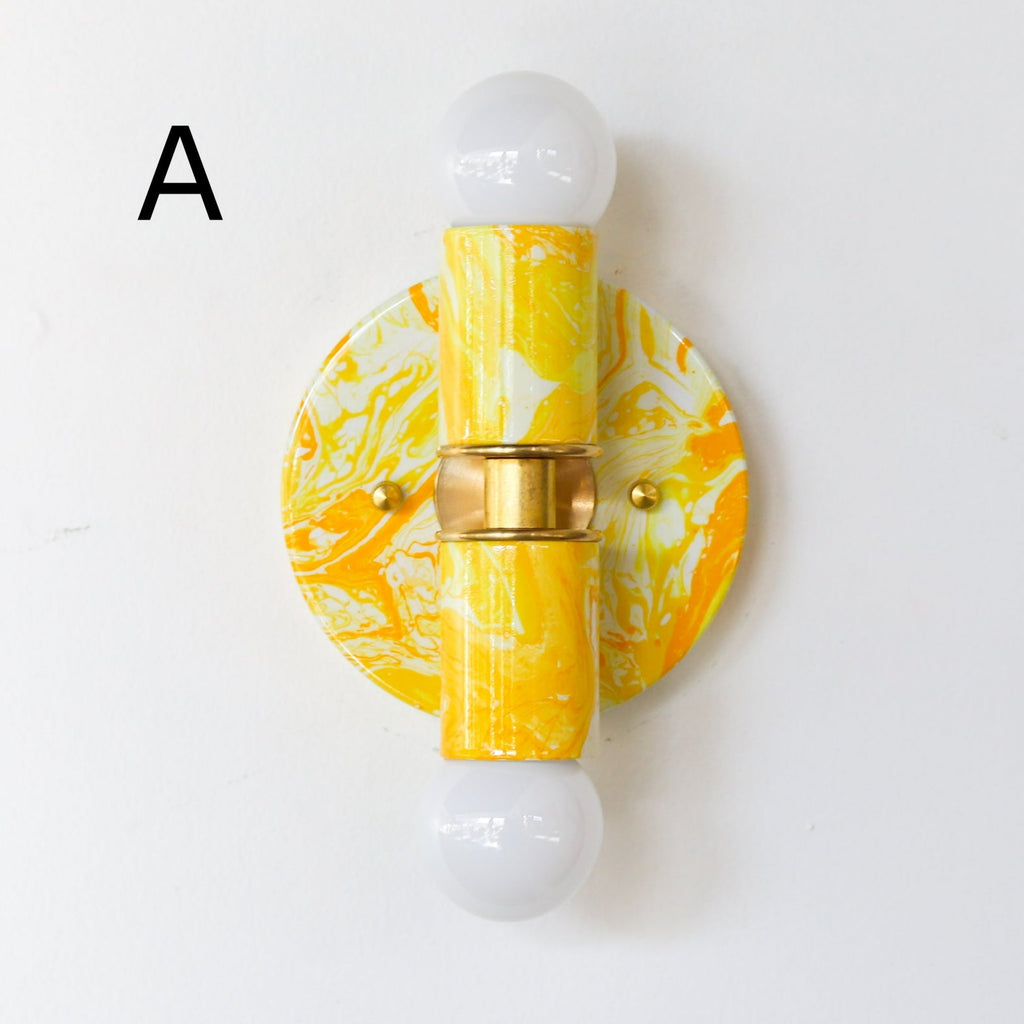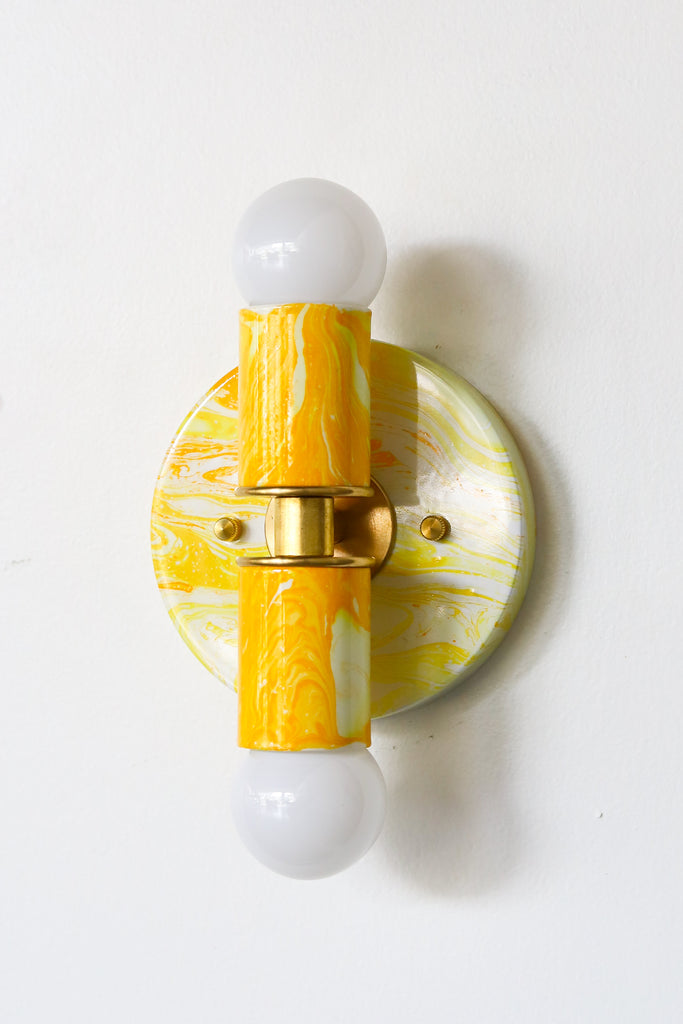 Color is the star of the show in the Thalia Sconce. Named after a Greek Muse, the Thalia sconce is saturated in color with metal accents. The two-light sconce or flush mount ceiling light is compact and can be used in small spaces that need high impact design. The fixture can be installed on a wall or ceiling in both horizontal or vertical position. Hardwire installation; however, a plug in option can be added here.