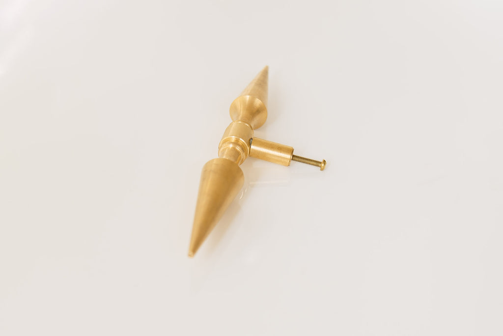 The Alexander Drawer pull features two solid brass spikes to form a dramatically long pull. Looks beautiful on antique and new furniture styles.