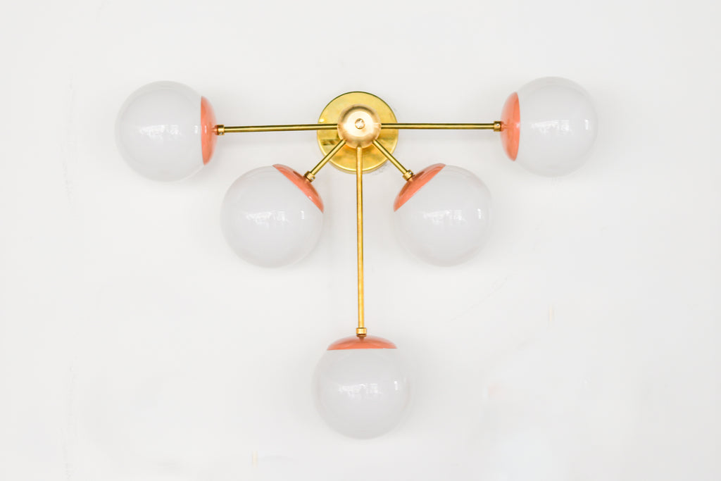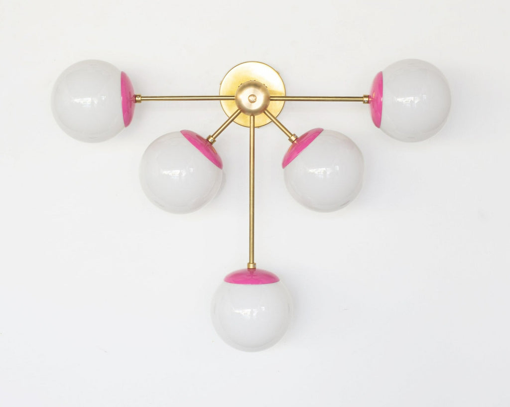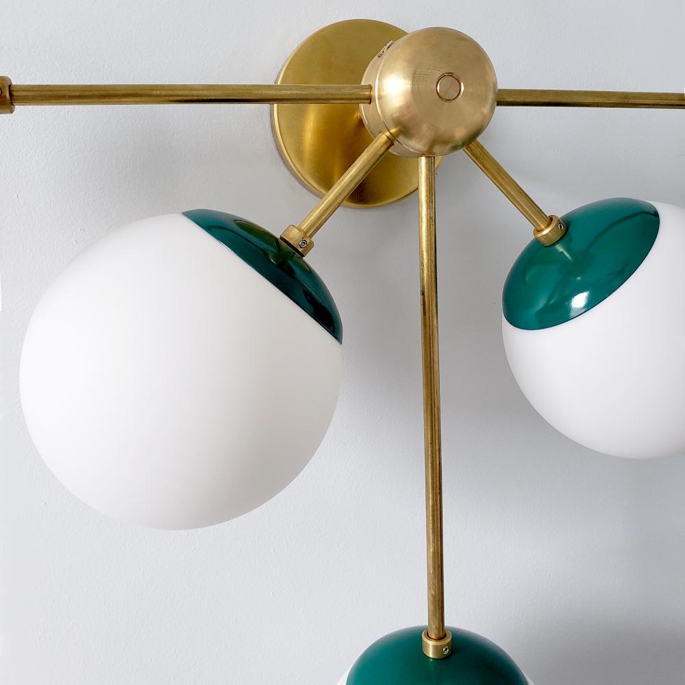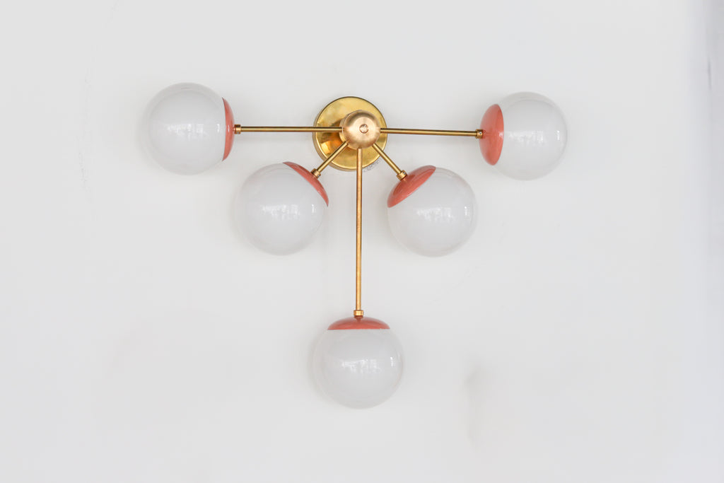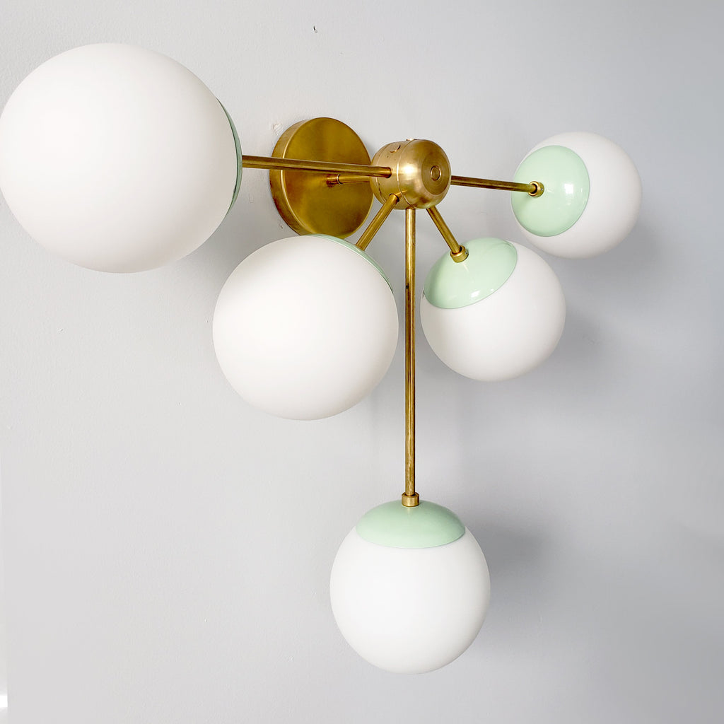 Symmetry and the flared arms of the Charity sconce evoke Art Deco styling. The white glass and brass body makes it easy to pair this oversized sconce with trendy, classic, or even midcentury modern home decor.