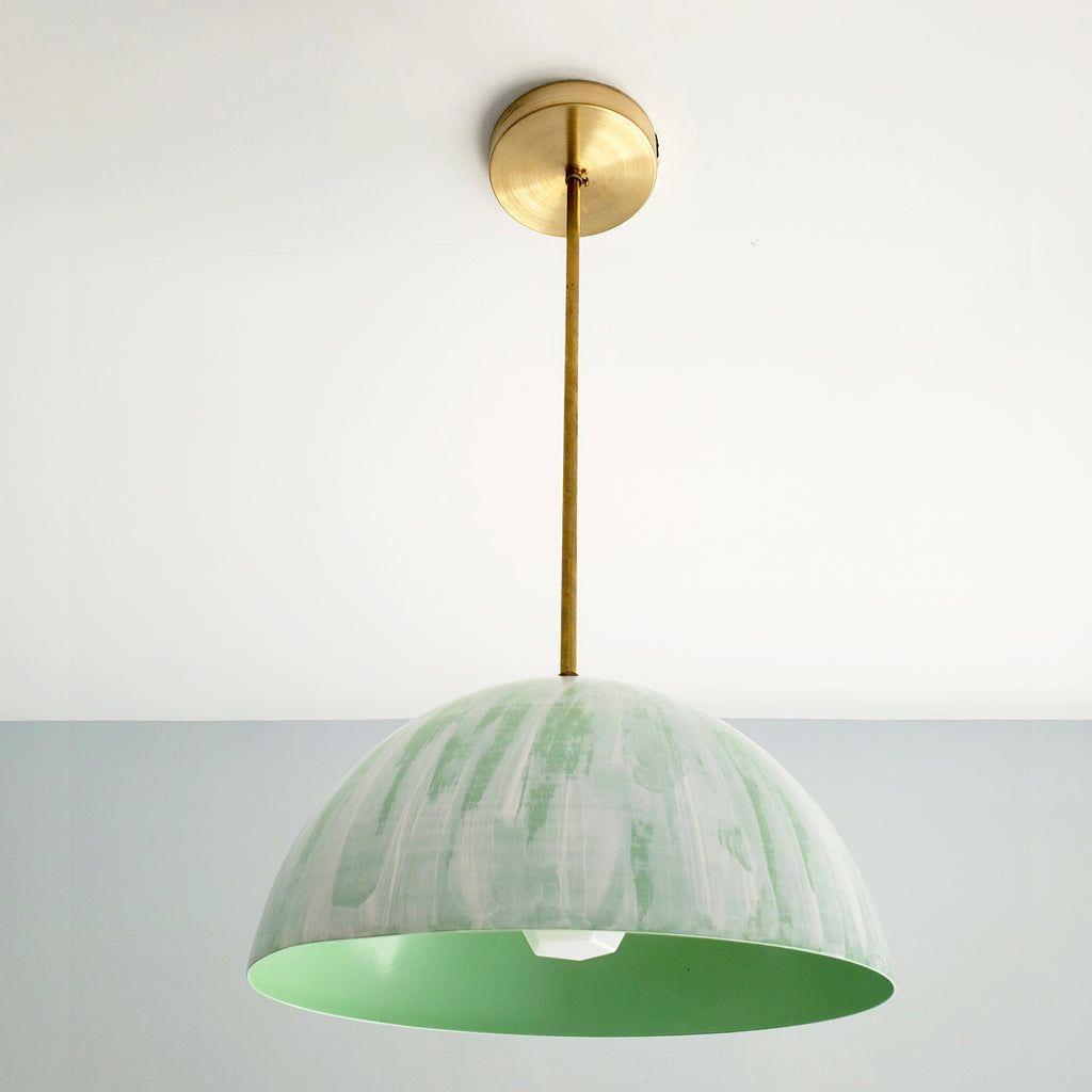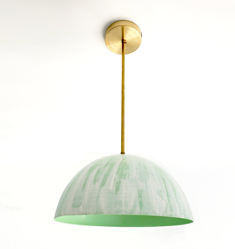 The Noma Pendant is a simple Dome shaped pendant in Mint that has been hand painted and sealed in clear powdercoating for durability. The hand-painted pendant comes with three downrod options: 24 inches, 18 inches, and 12 inches. If a specific length is needed instead, contact us.
