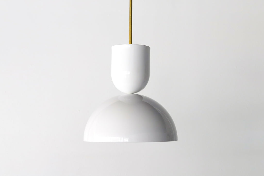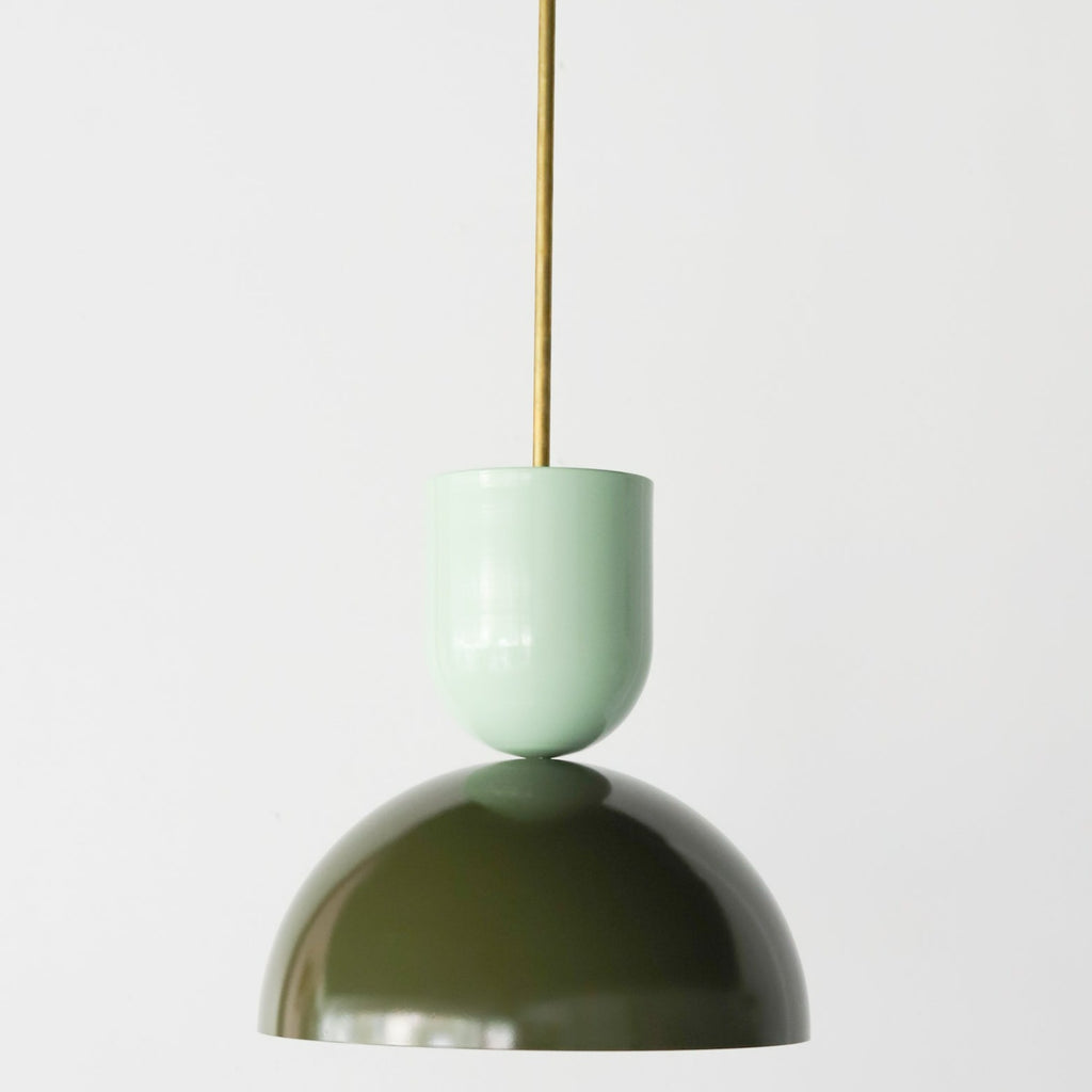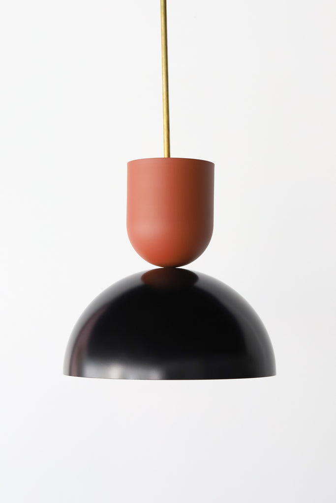 The Taeuber Pendant is available in 15 curated finish combinations (see dropdown menu for current selections). Each option is photographed so you can see exactly how the colors play together.