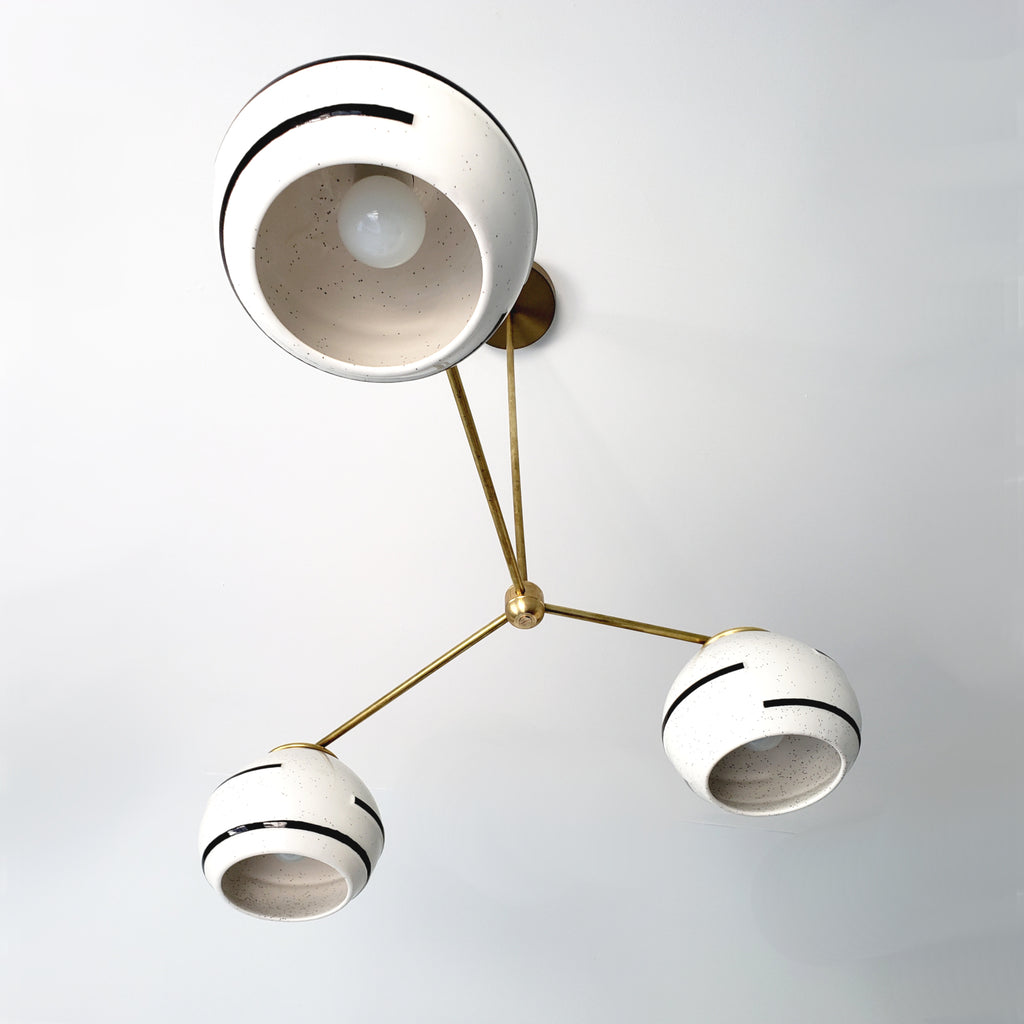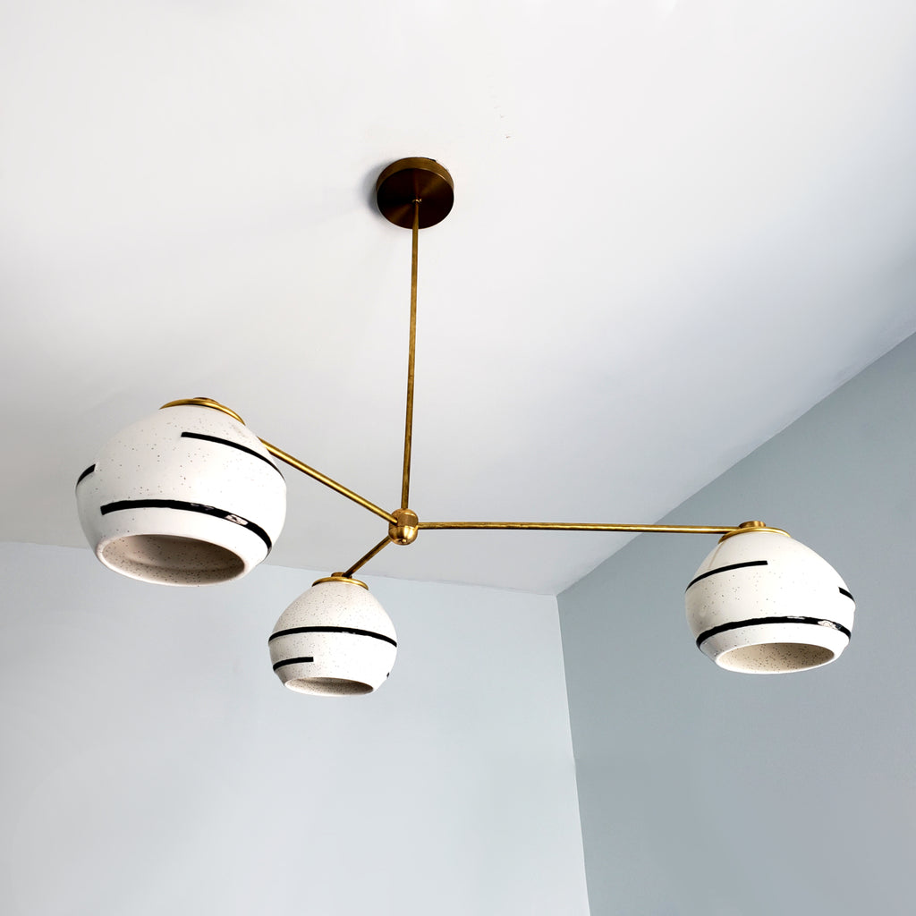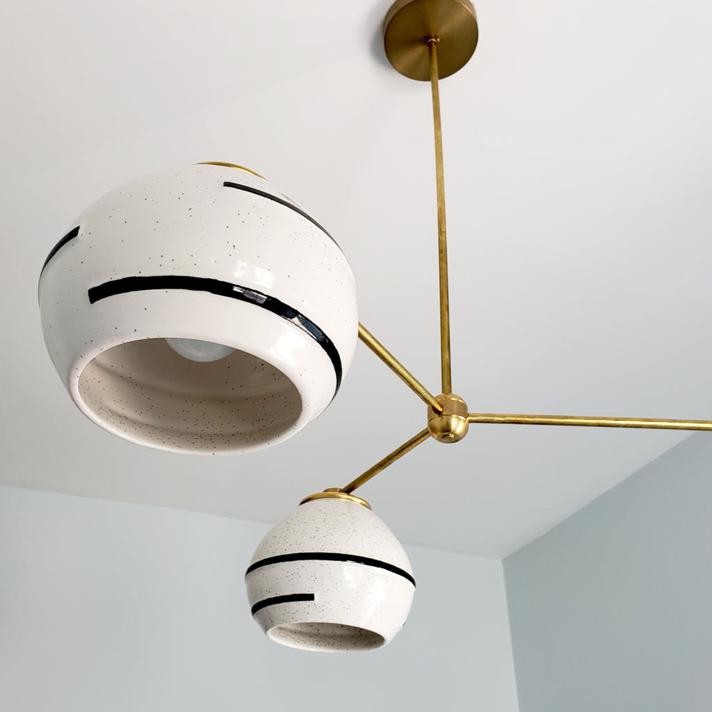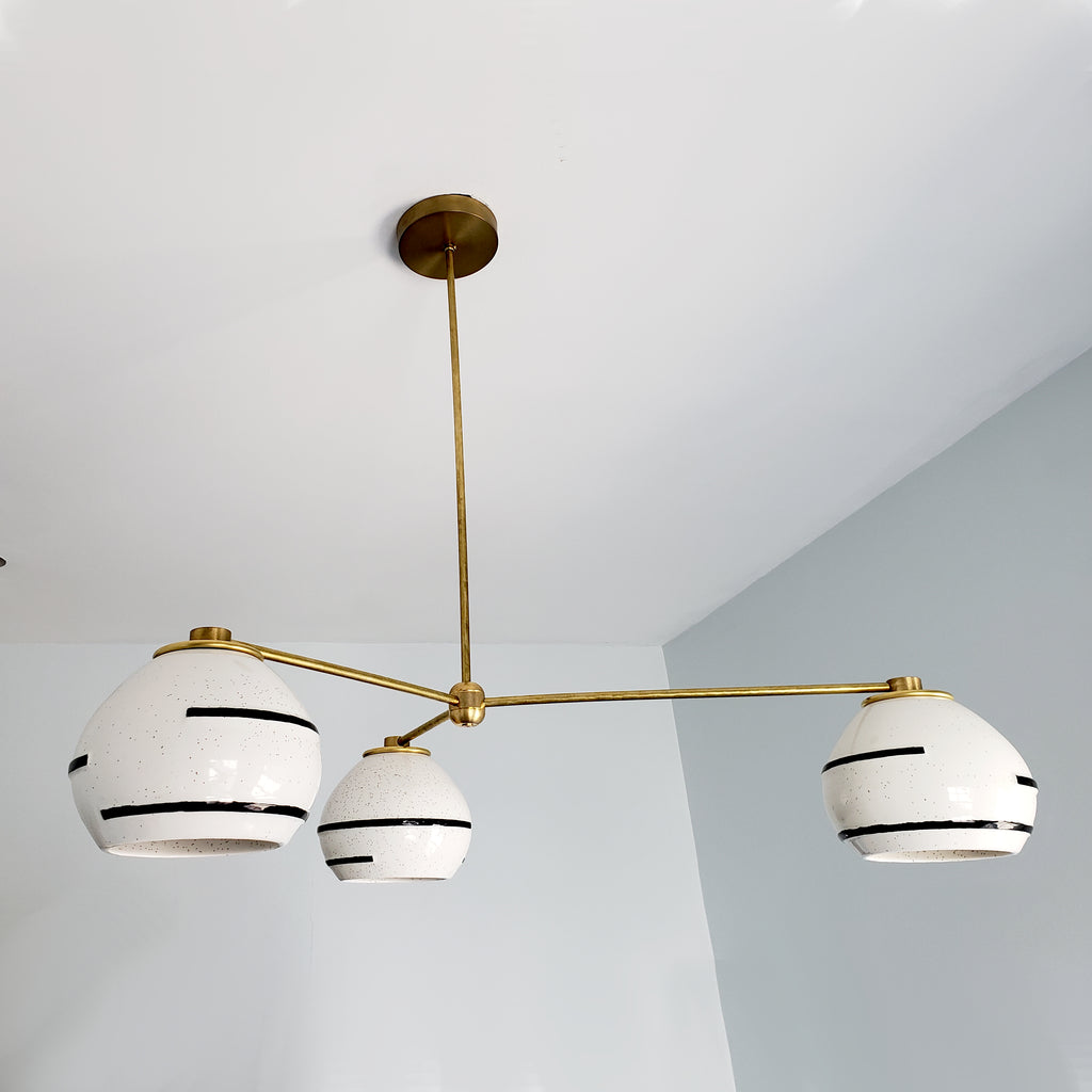 Inspired by the silt texture of the Mississippi in Southern Louisiana, the Delta Chandelier combines an earthy glaze with contrasting geometric black lines that partially wrap the shades. Compliments many design types including earthy bohemian, mid-century modern, and California cool.