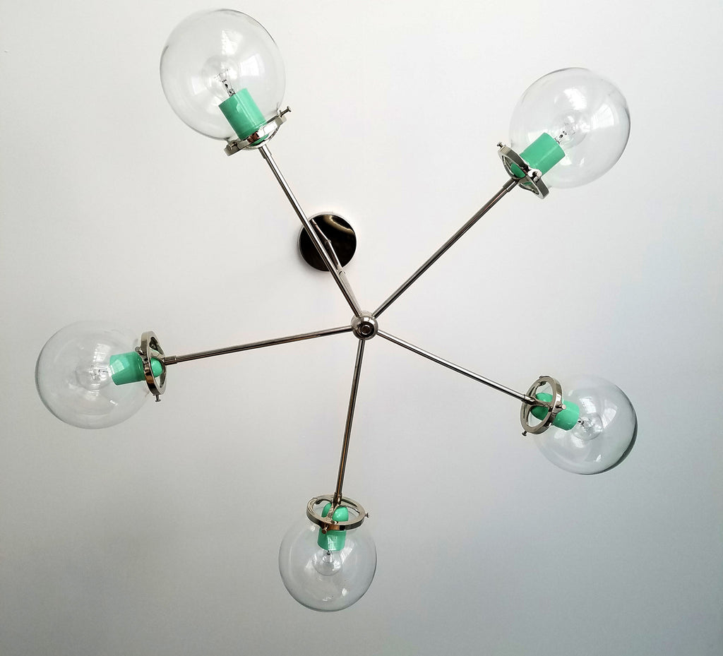Modern lighting doesn't have to be serious or boring. The Cadiz chandelier embraces modern style with a playful twist by featuring powder-coated sockets in vibrant colors.