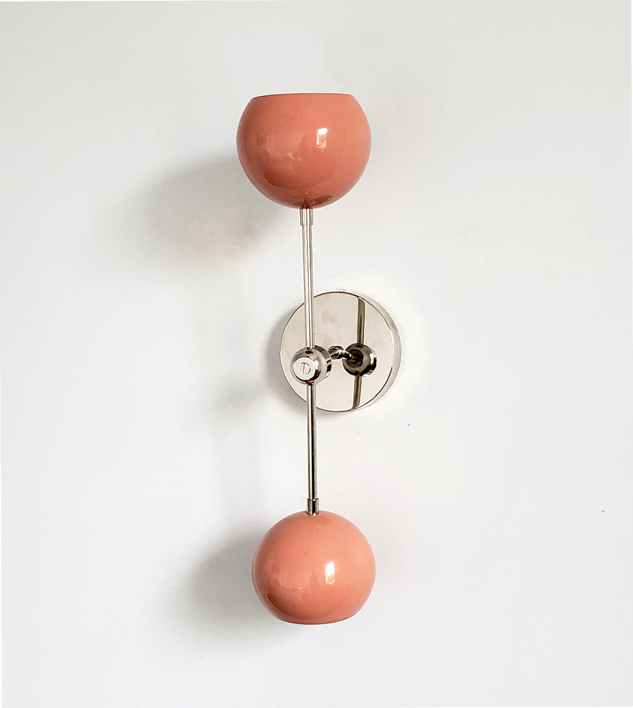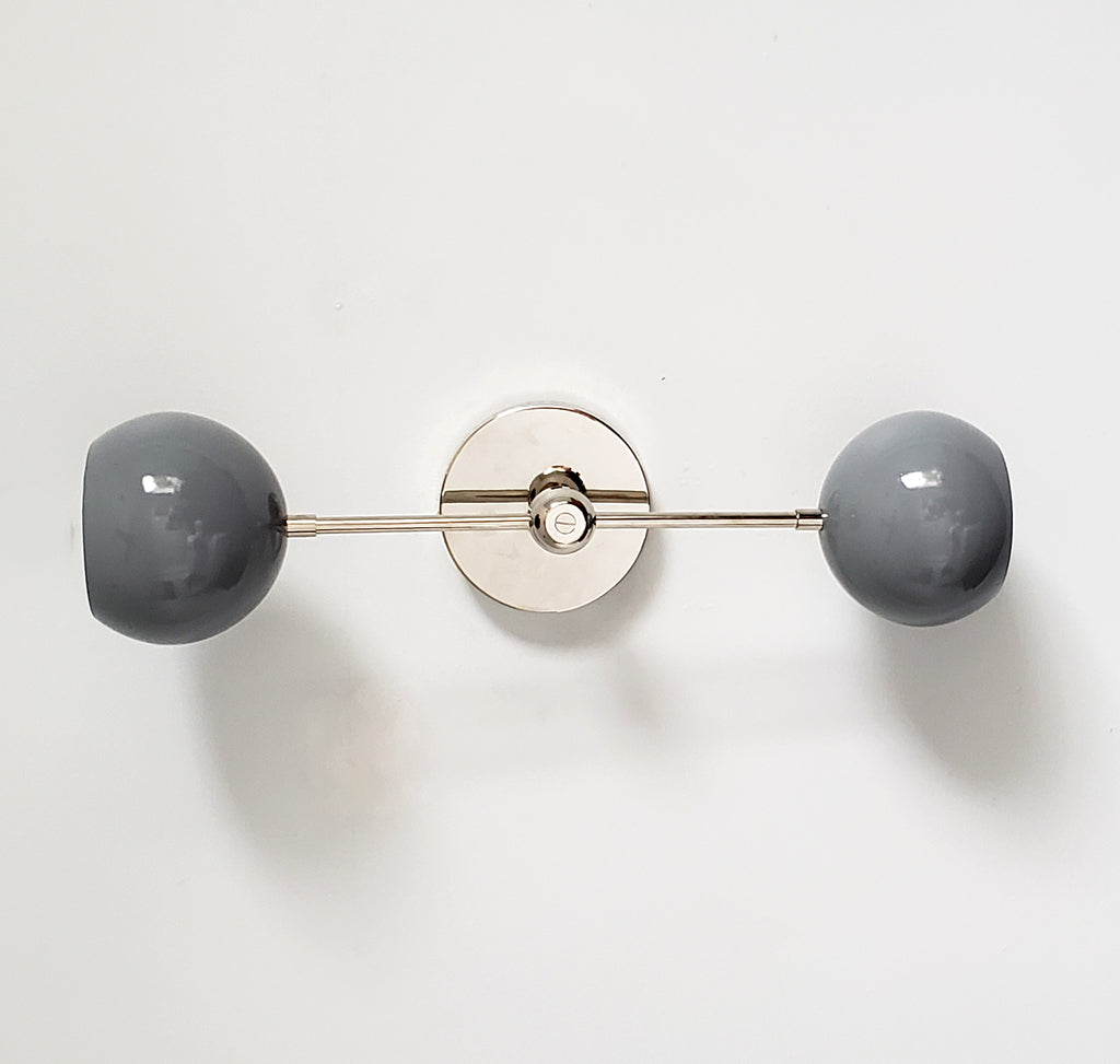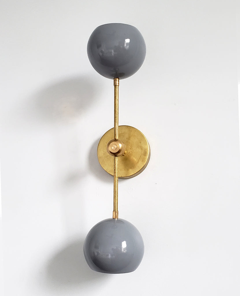 This stylish sconce blends simplistic appeal with a modern aesthetic. The linear double loa sconce is a perfect balance of proportions that can be horizontally or vertically mounted. The shades are made of steel that can either remain uncoated or finished in the color options available (white shown). A 16 in downrod is automatically included. If you need a different length, send us a message.