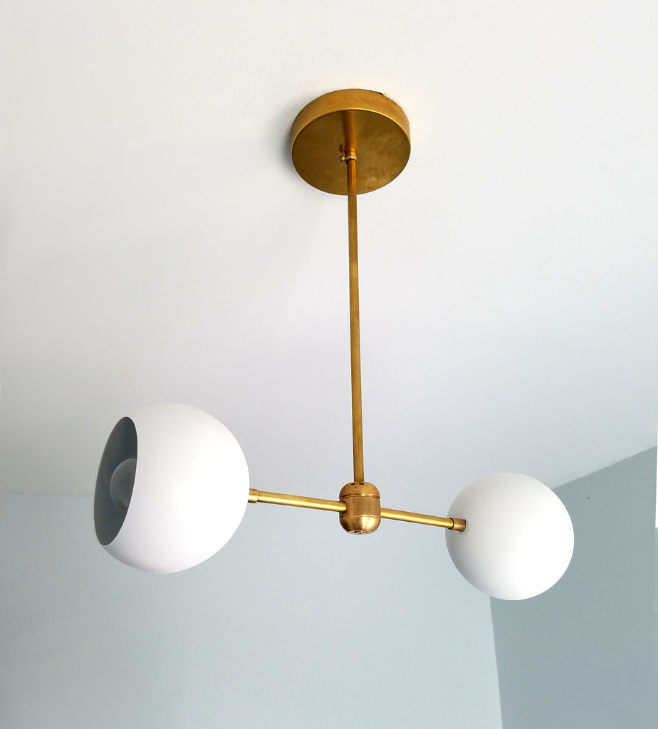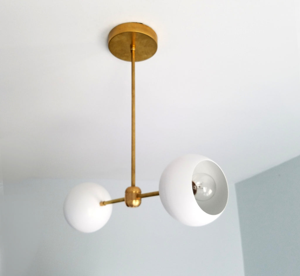 The light comes with all mounting hardware. It can be mounted into a preexisting ceiling wire box. Bulbs are not included in the listing. The item will be made to order, so please allow time for construction and testing. Any bulb with an E26 or "medium" base can be used with this fixture. I find that G16/16.5 bulbs fit best. Please do not use a bulb over 60W.