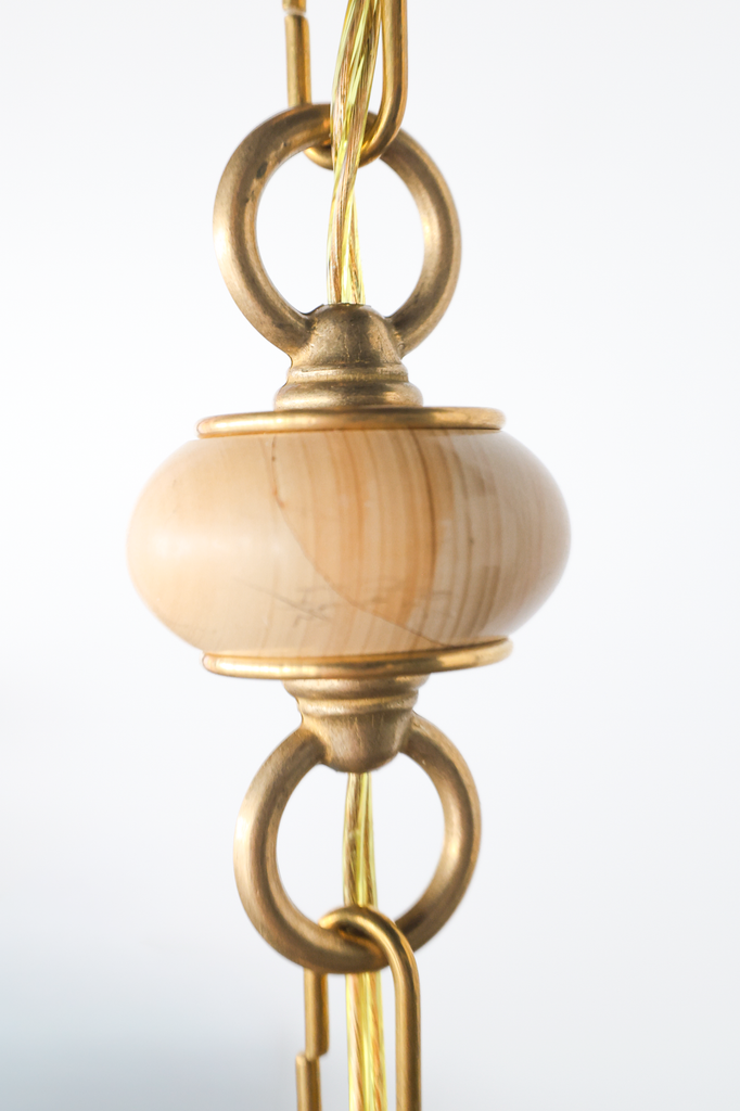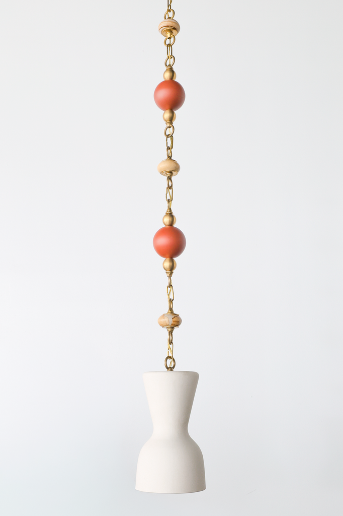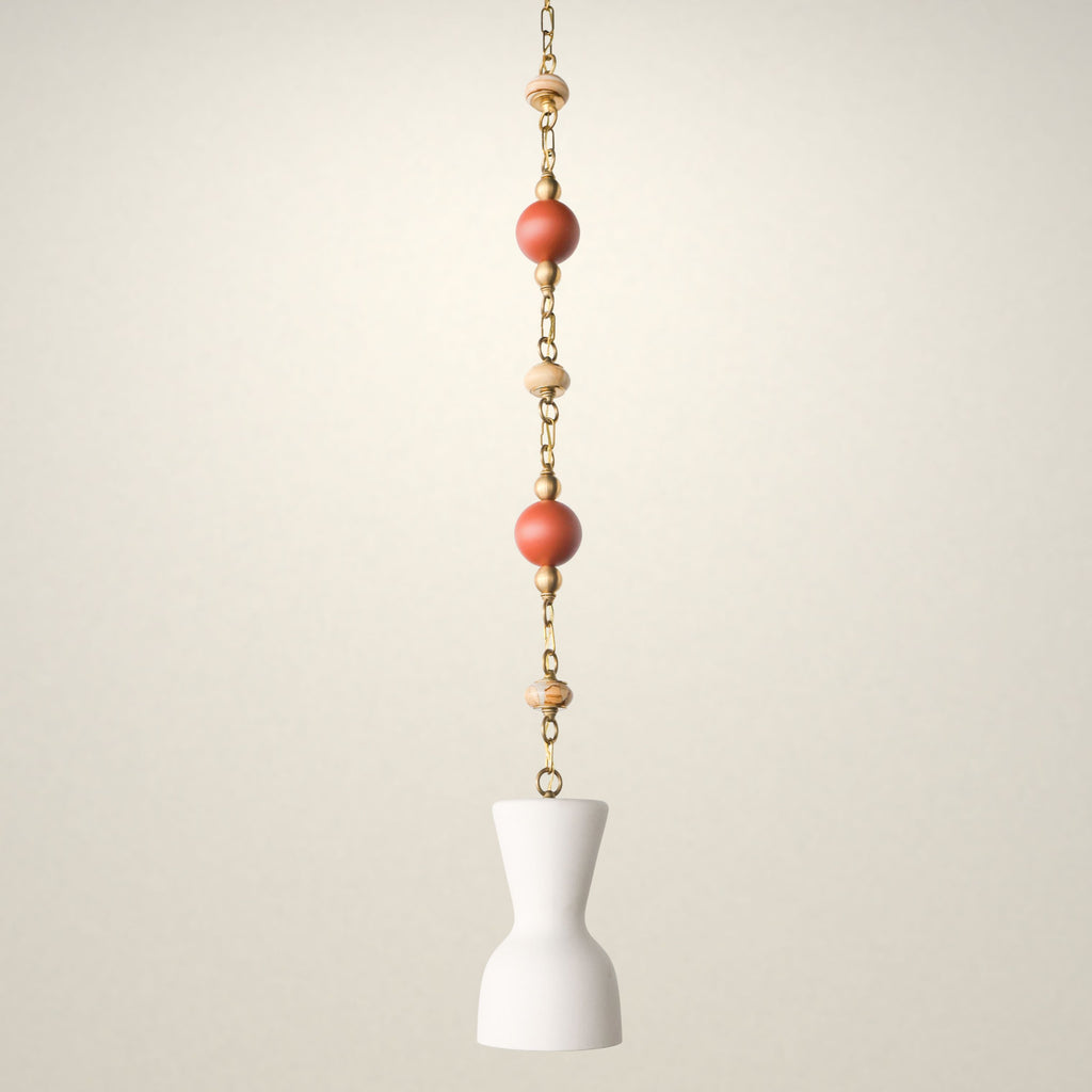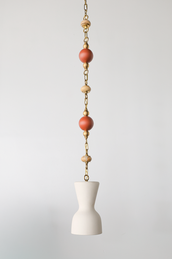 Cream, Terra Cotta, & Teakwood Beaded Pendant Light - One of One