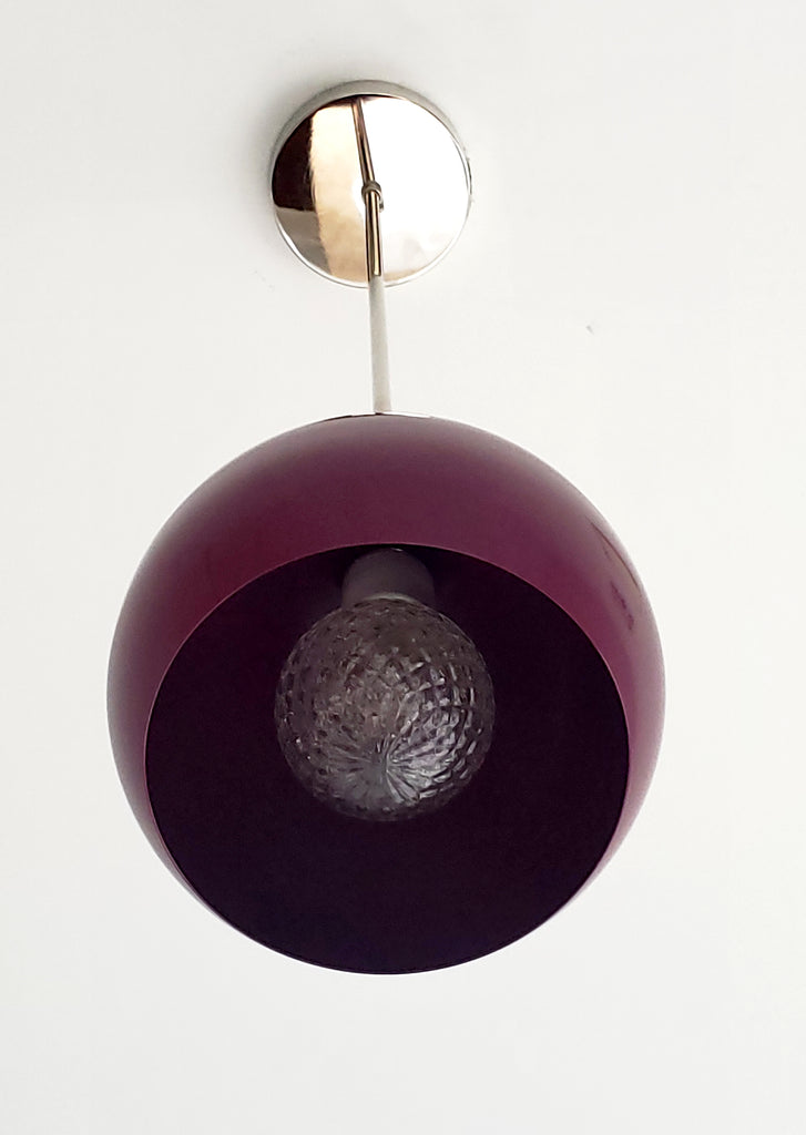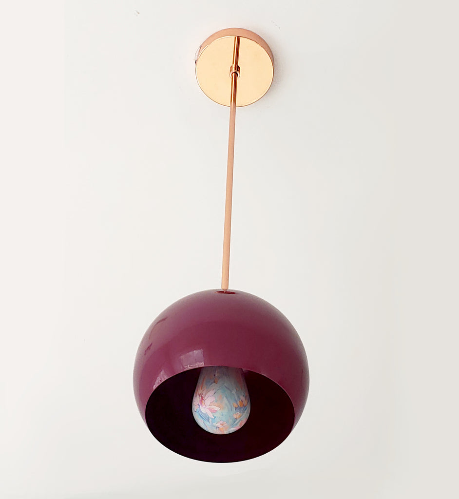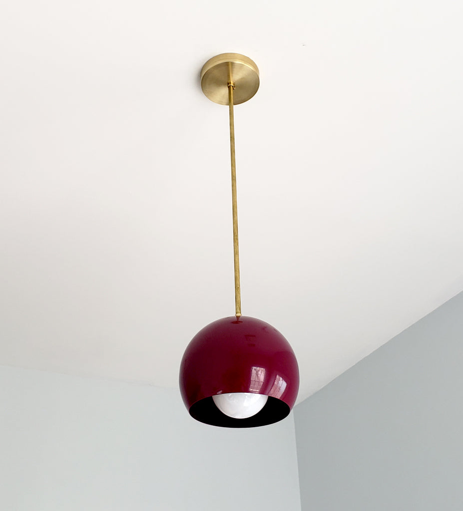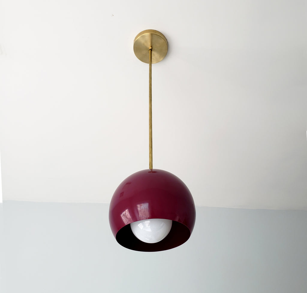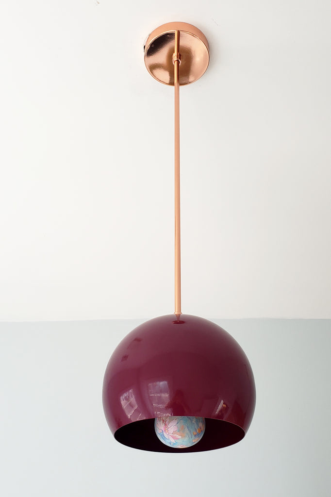 The Large Loa Pendant with a Black Cherry Shade shade is a simple, globe shaped pendant available with multiple metal finishes to suit any design style. Each pendant comes with three downrod options: 24 inches, 18 inches, and 12 inches. If a specific length is needed instead, contact us.