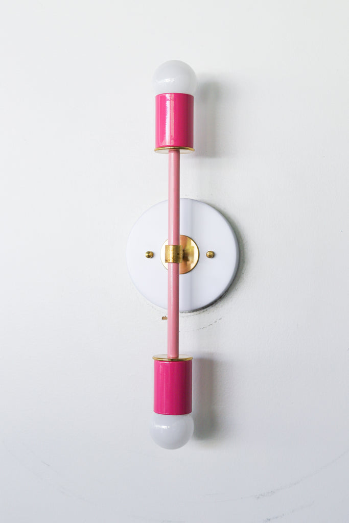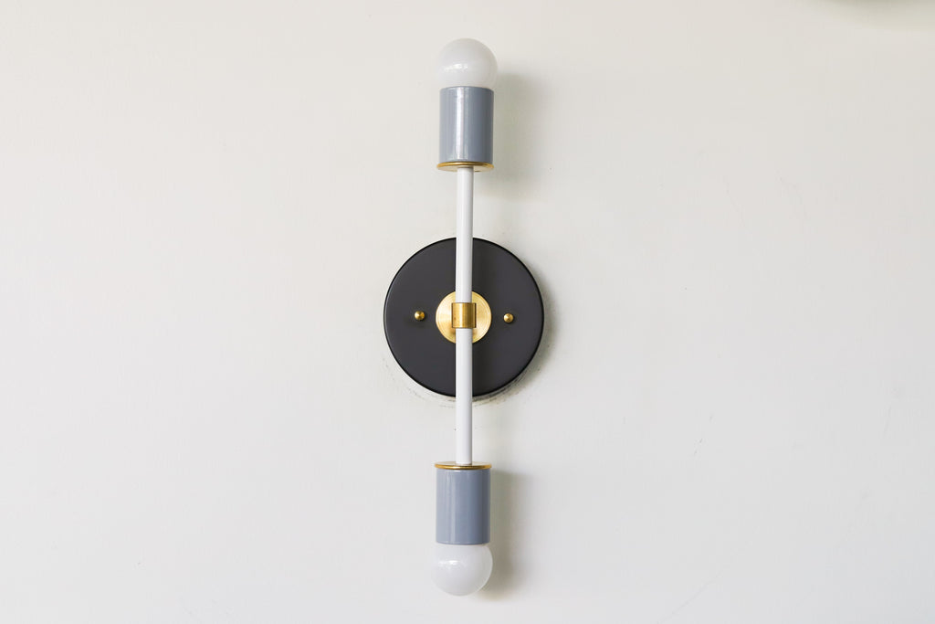 The Colorblocked Medium Thalia Sconce is all about modern color and crisp, sculptural design. With two lights, clean metal accents, and 15 pre-designed tri-color palettes, it’s a statement wall sconce made for spaces that need big style without taking up much room. Choose from bold opposites, soft tonal pairings, or classic neutrals to match everything from mid-century modern to eclectic, colorful interiors.