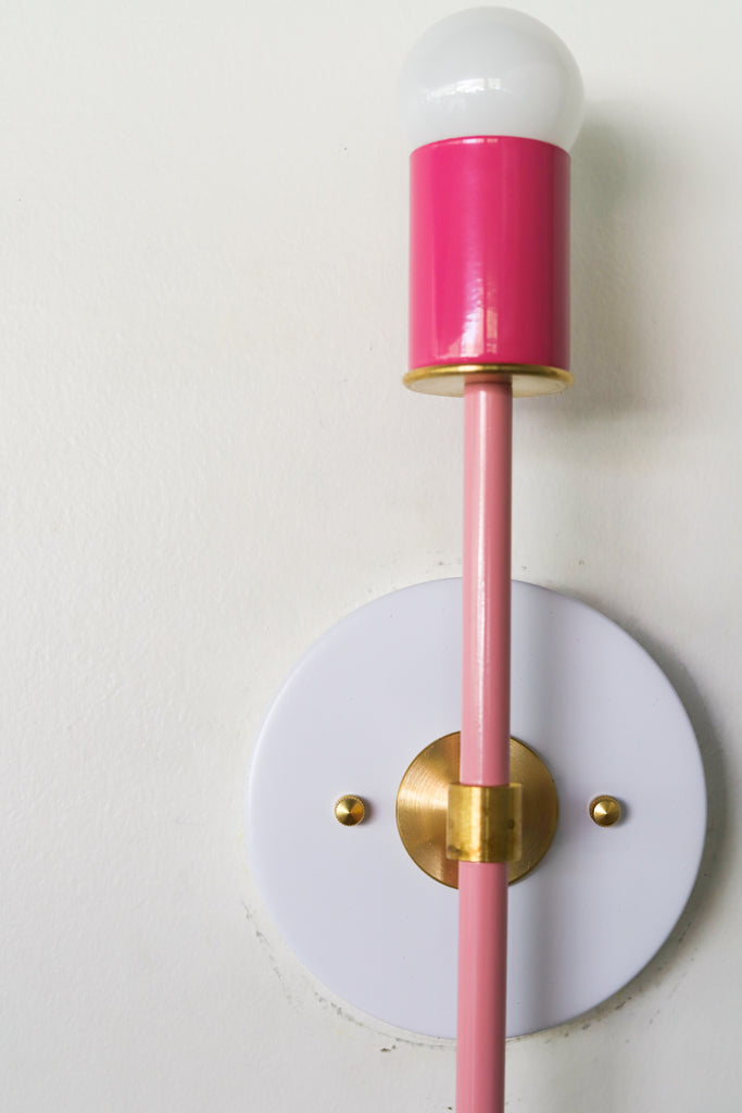 The Colorblocked Medium Thalia installs on the wall or ceiling and can be mounted vertically or horizontally, making it a perfect bathroom sconce, hallway light, bedside fixture, or small-space flush mount.