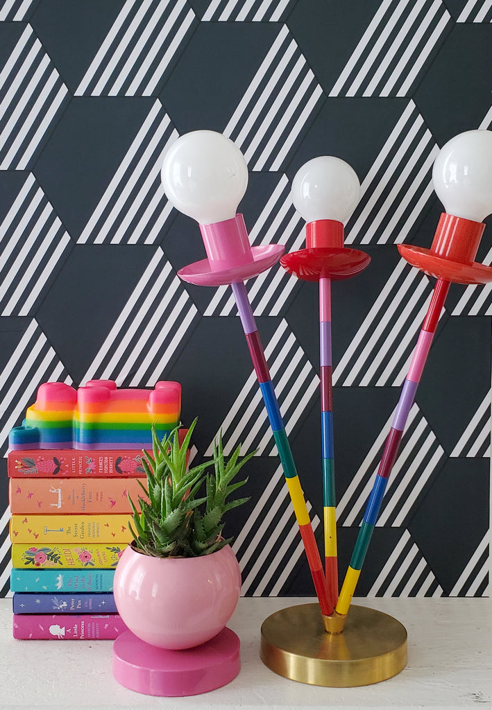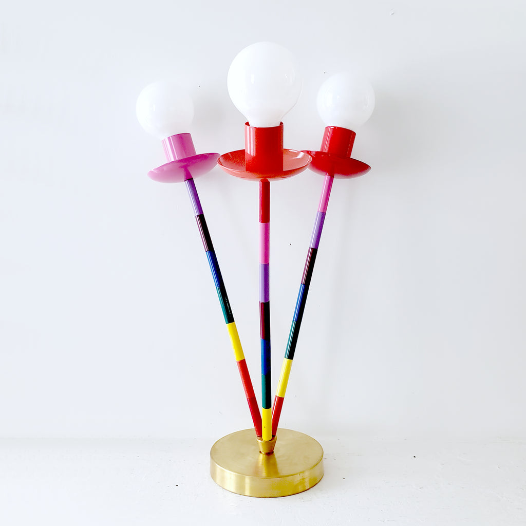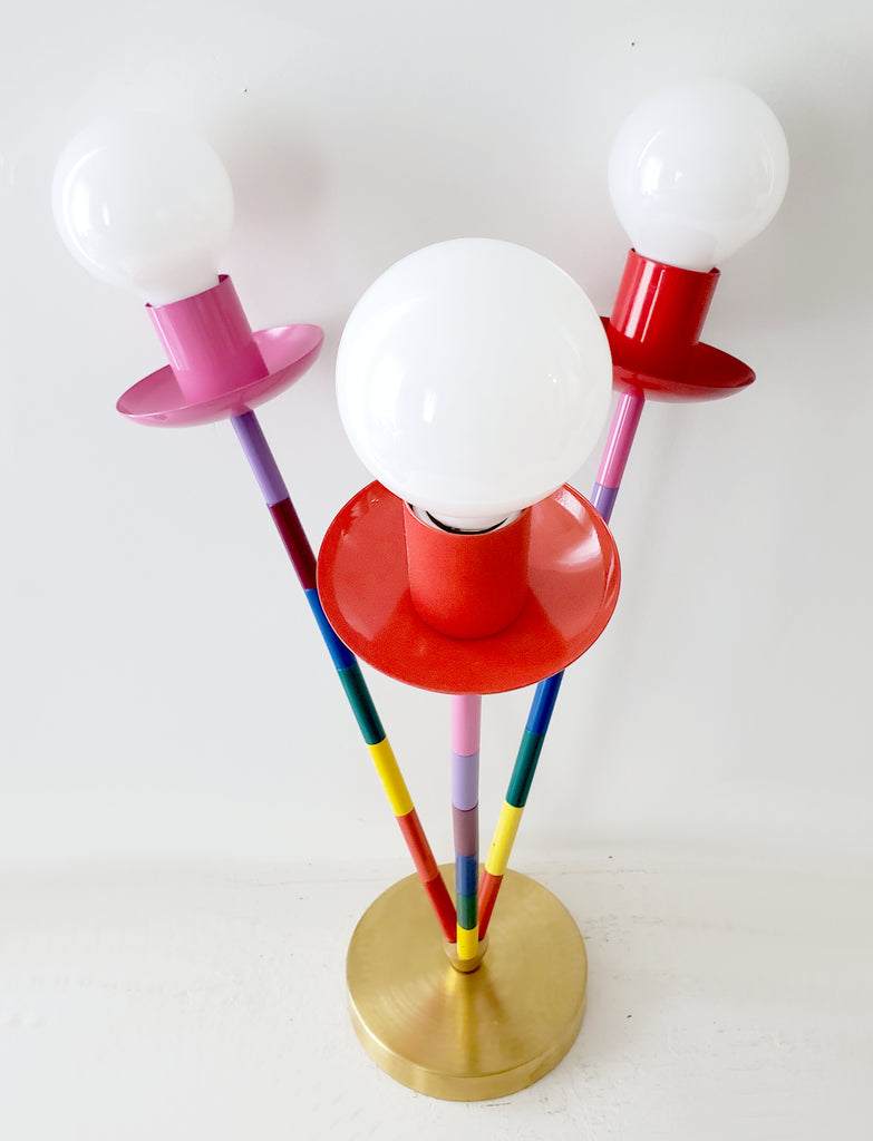 Anything goes with color in the Hendrix Table Lamp. Color is laid out in rainbow order on each of the three arms.