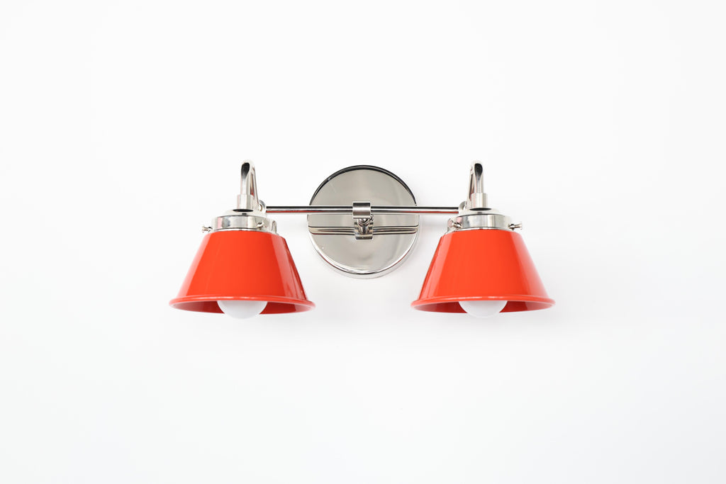 The Double Kelly Sconce is our playful twist on classic cone-shade lighting — two petite cones, gently curved arms, and endless color possibilities. Whether you’re lighting up a bathroom vanity, flanking a bed, brightening a hallway, or adding a pop of personality to your entryway, this versatile fixture delivers style and function in equal measure.