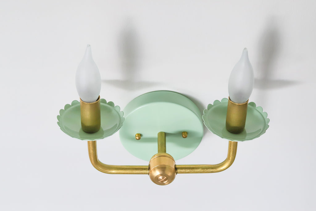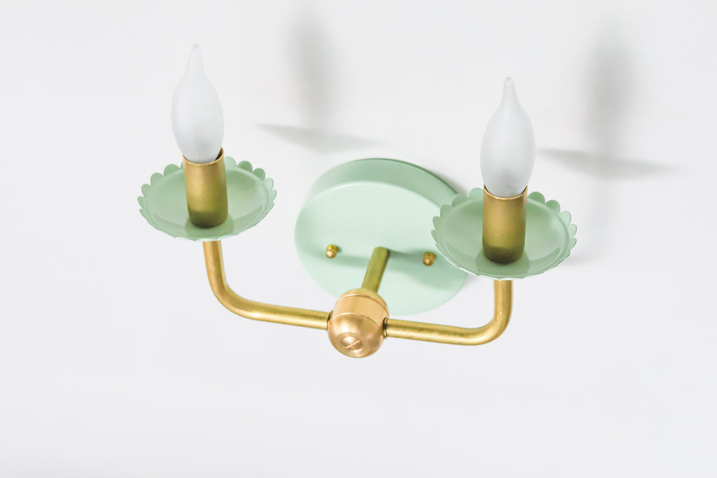 Introduce a pop of color and enchantment to your spaces with our Adele Two Light Sconce. Boasting a modern yet traditional style, this wall sconce embodies a retro aesthetic in a scalloped design that dances with light and shadow. The unique, subtly romantic vibe it brings will surely make your walls delightfully dramatic. Perfect for both bathroom and beside lighting, our Adele Two-Light Sconce adds that missing touch of sophistication to your décor. From our curated selection of colors, you can find shades that match your existing palette or that bold hue to make that striking statement.
