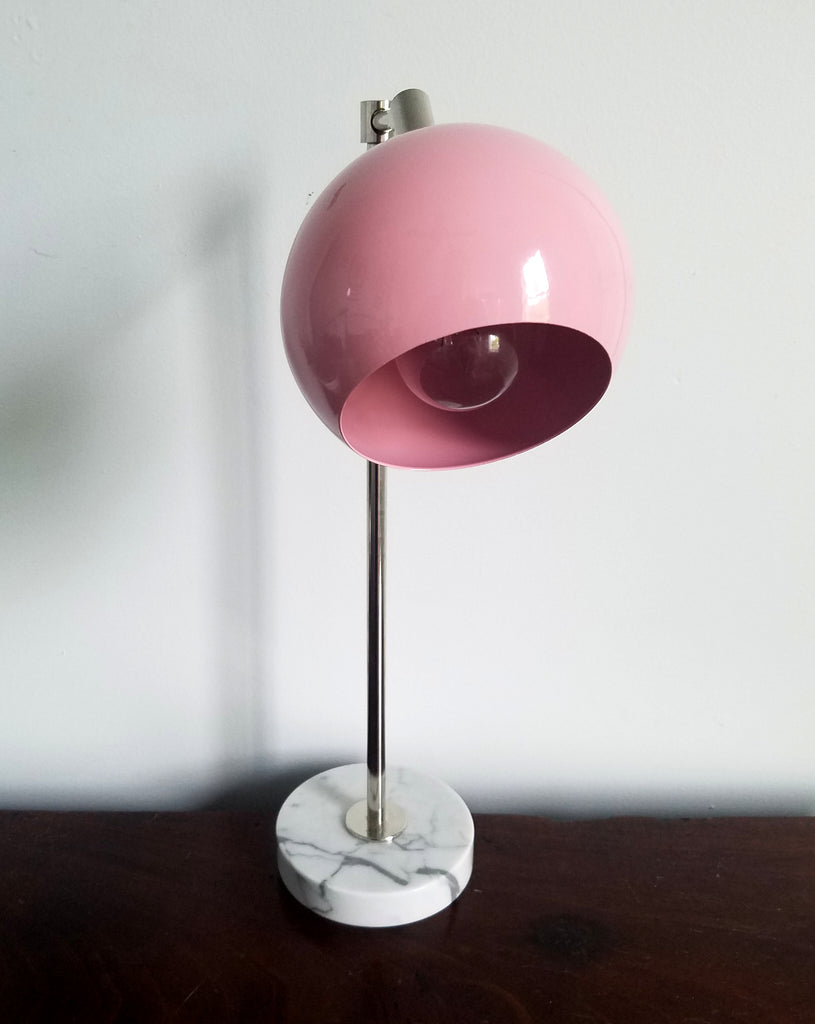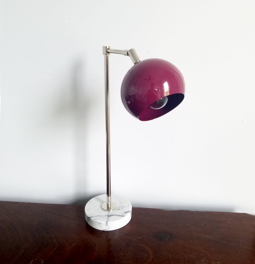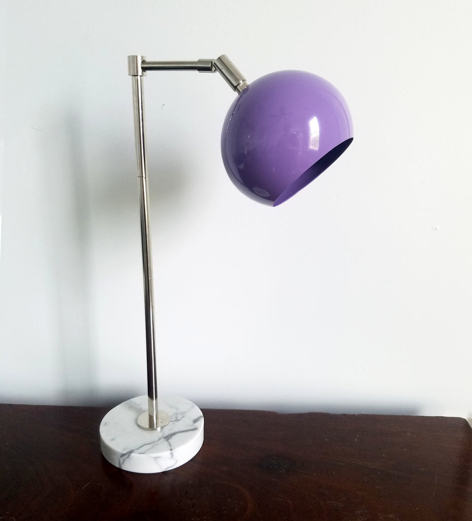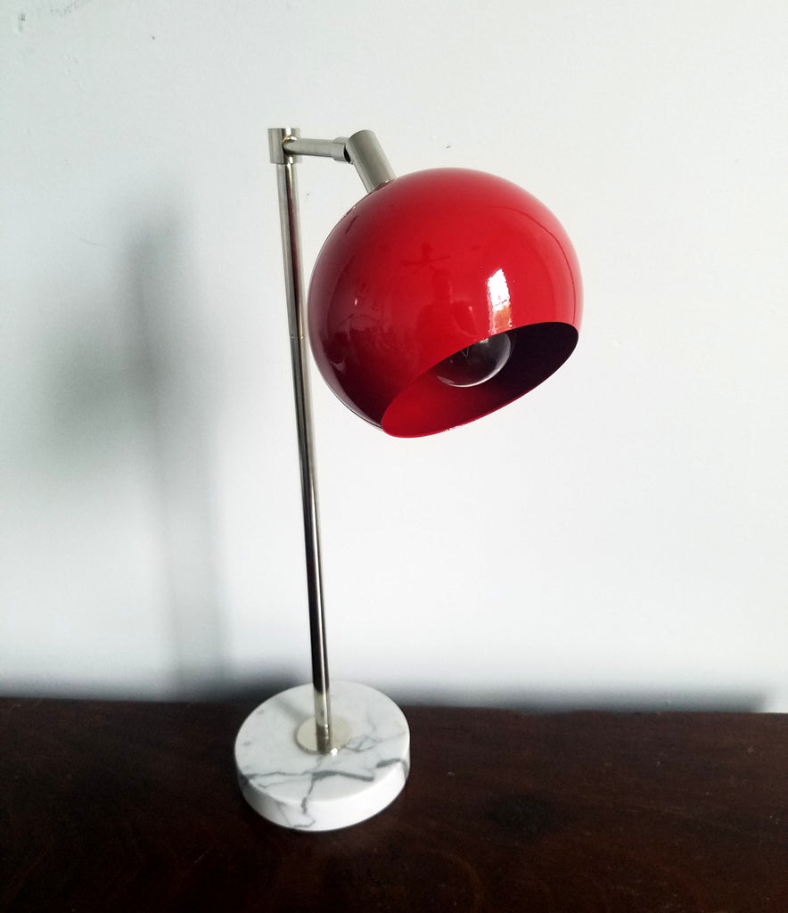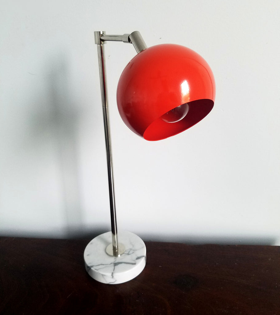 Capable of lighting the way to a finished homework assignment or completed project, the Loa Task Lamp with Marble Base from Sazerac Stitches is the perfect lighting solution for desks, nightstands, and other small spaces. It has a modern colorful light globe, a chrome or brass arm and lamp pole and a circular base made of genuine Carrera marble. This desk lamp has a multipositional head.