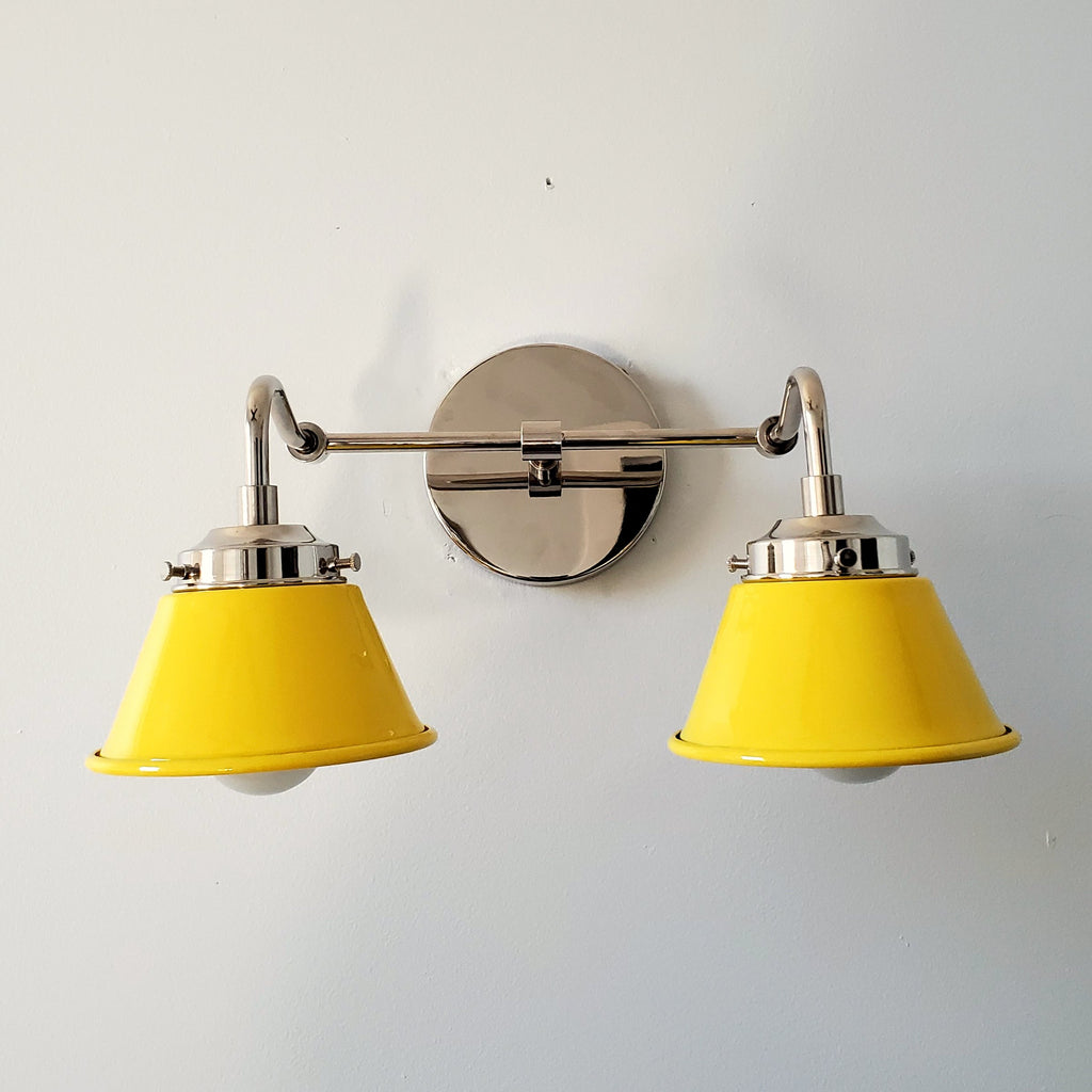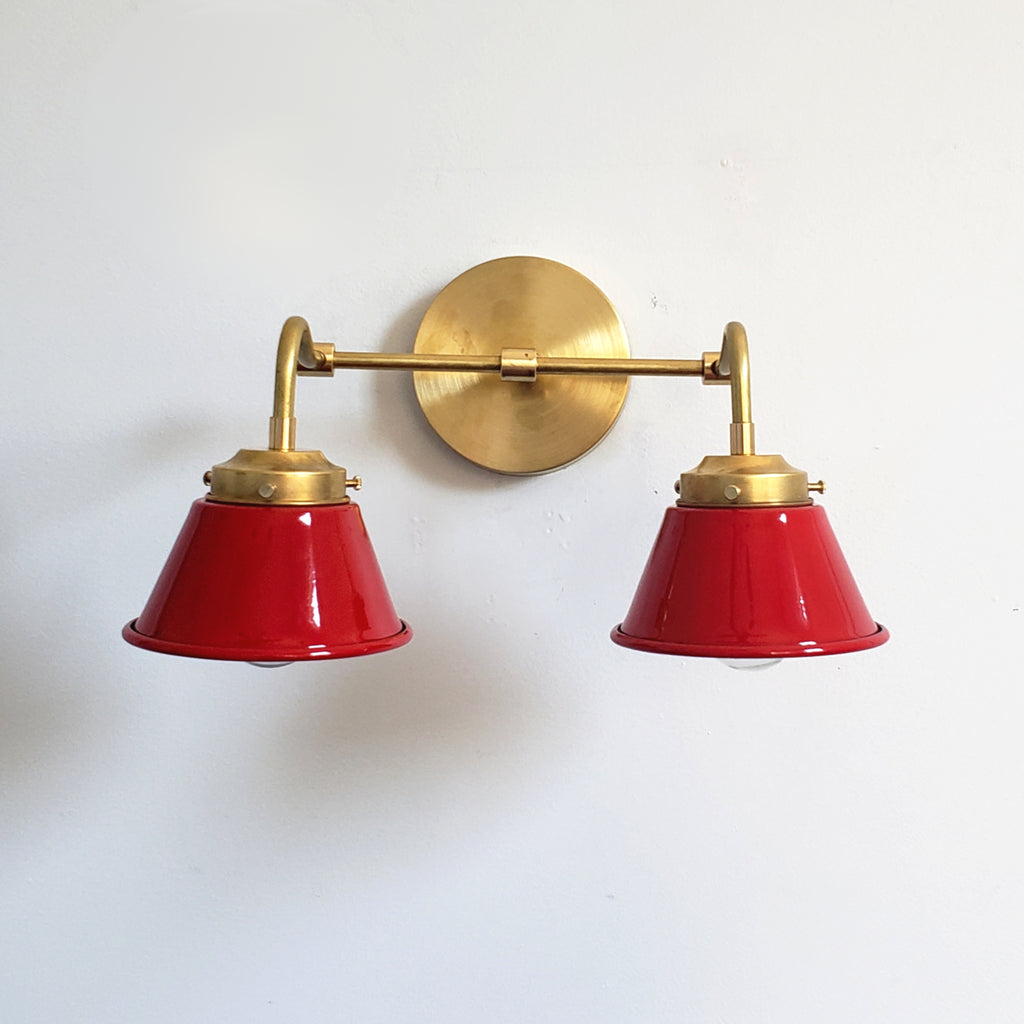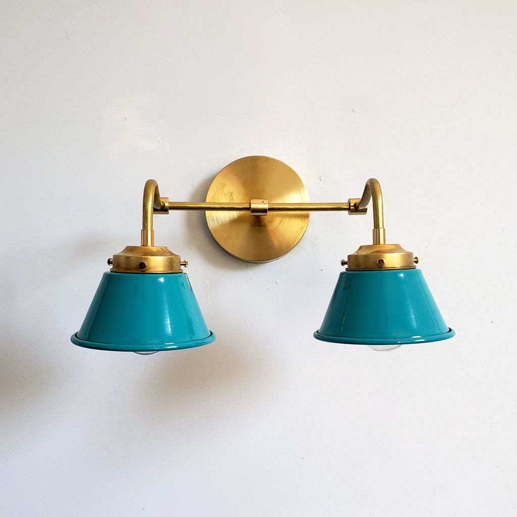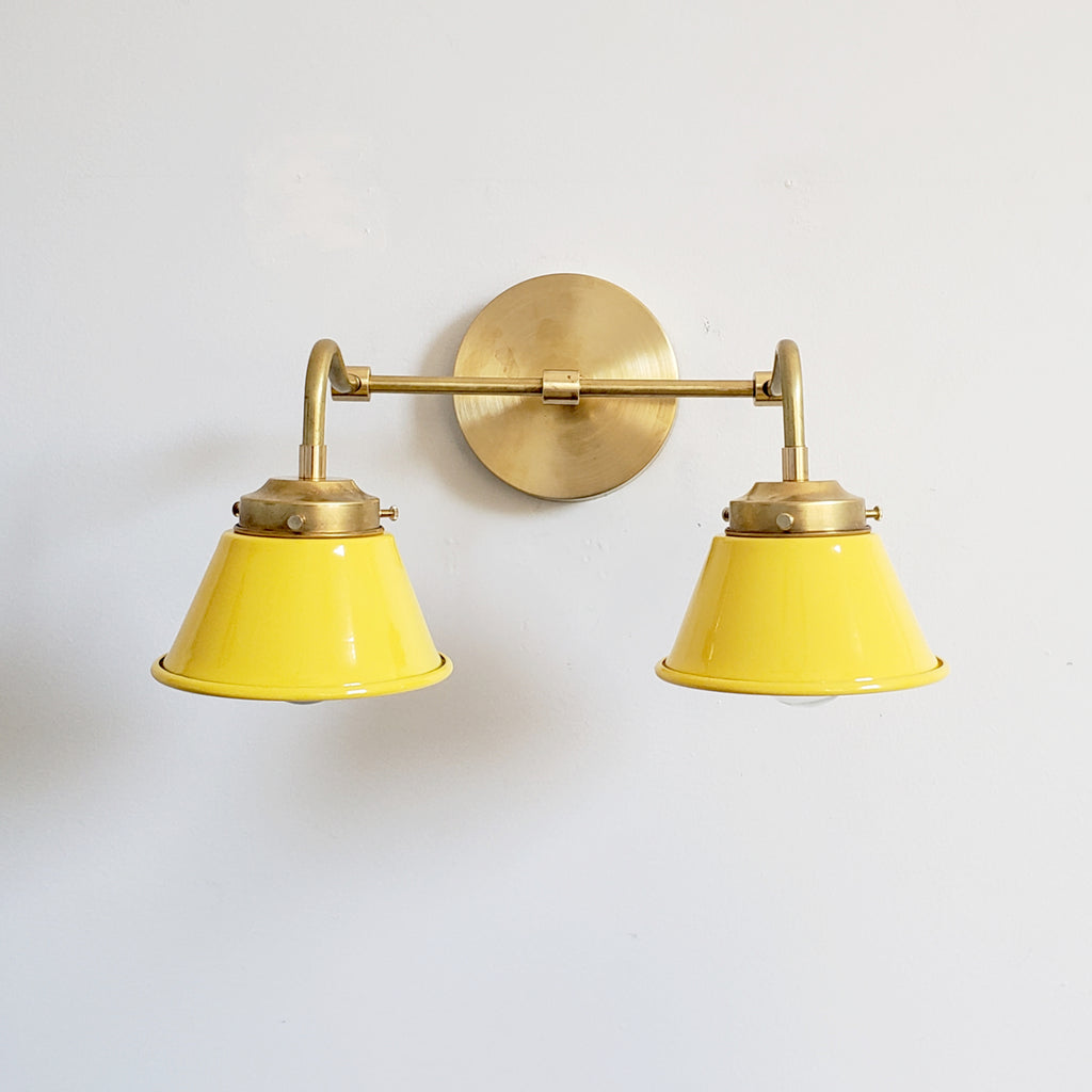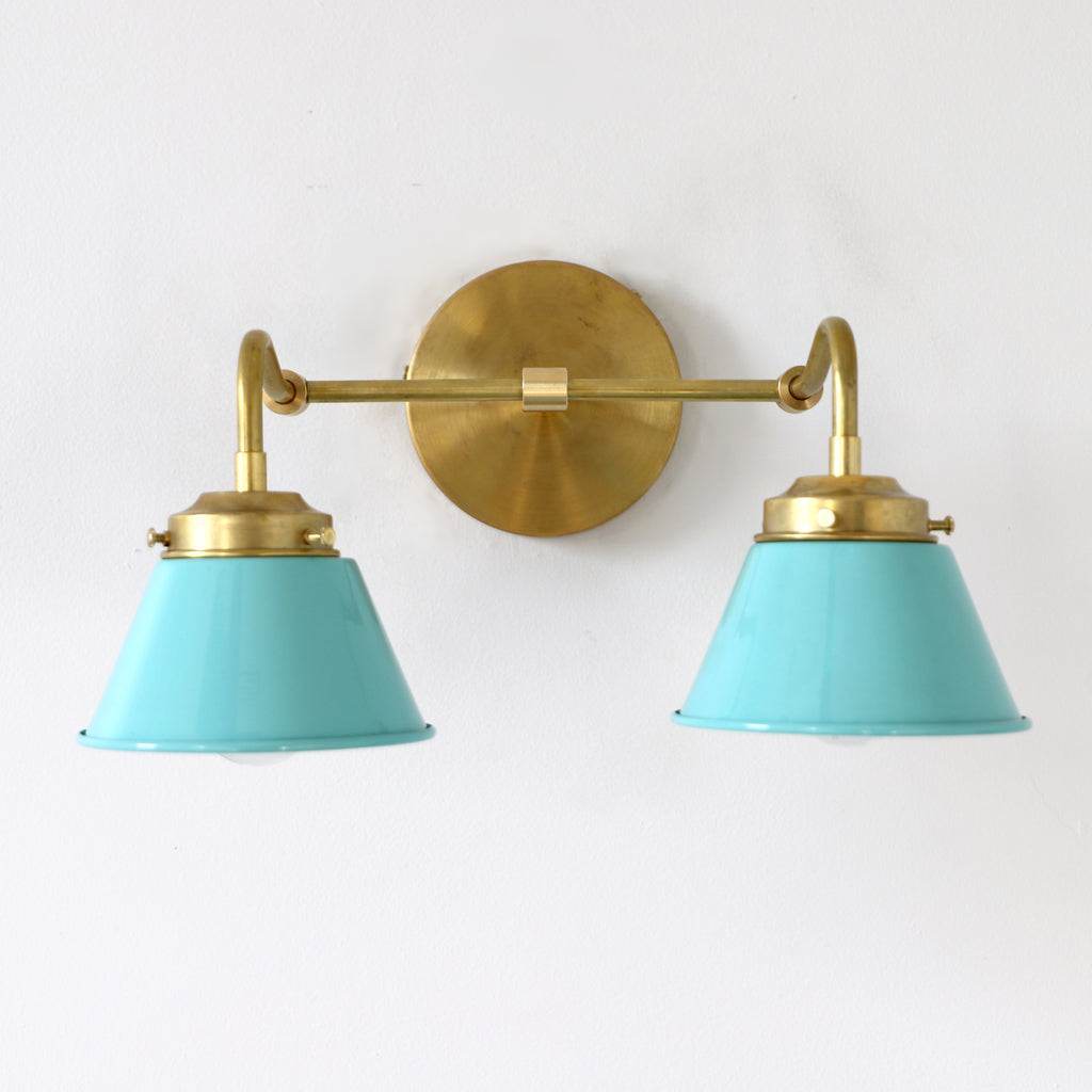 The Double Kelly Sconce is our playful twist on classic cone-shade lighting — two petite cones, gently curved arms, and endless color possibilities. Whether you’re lighting up a bathroom vanity, flanking a bed, brightening a hallway, or adding a pop of personality to your entryway, this versatile fixture delivers style and function in equal measure.