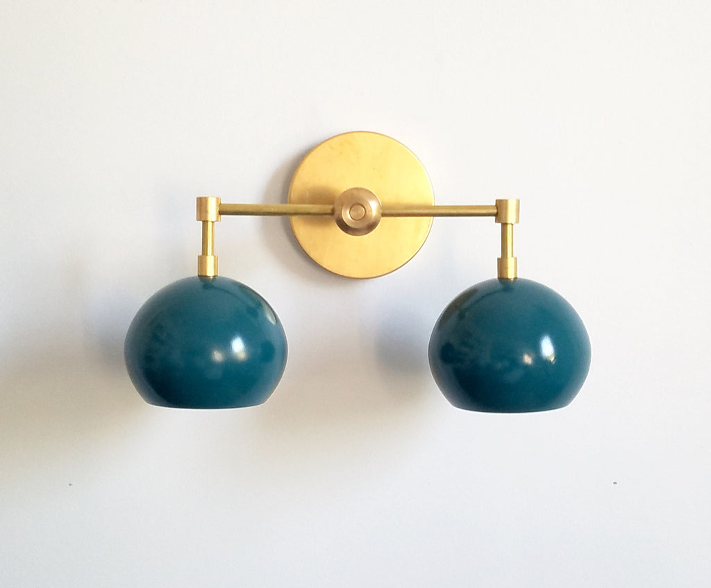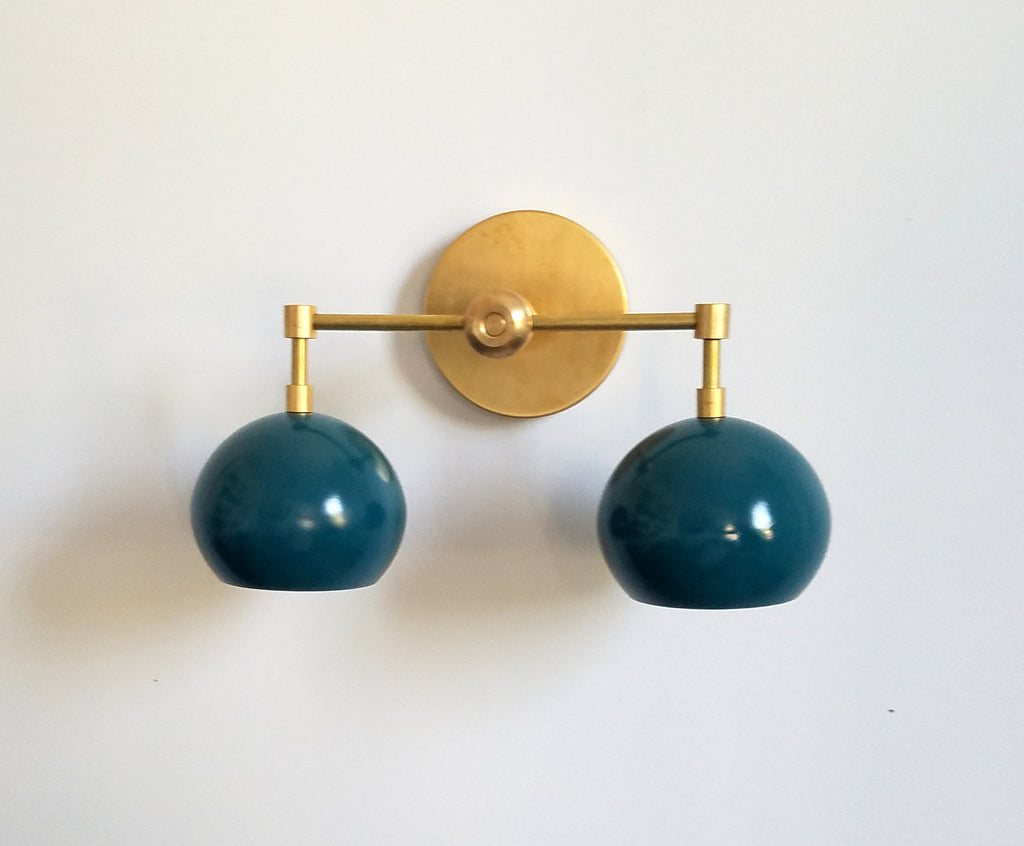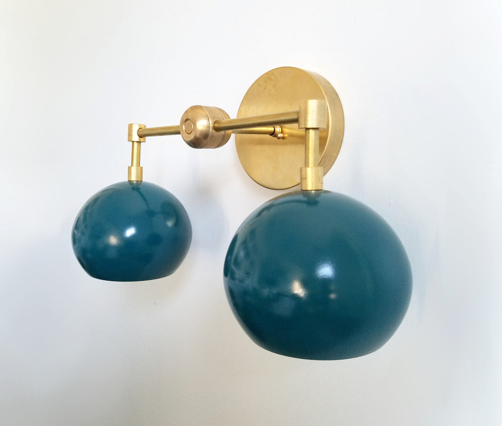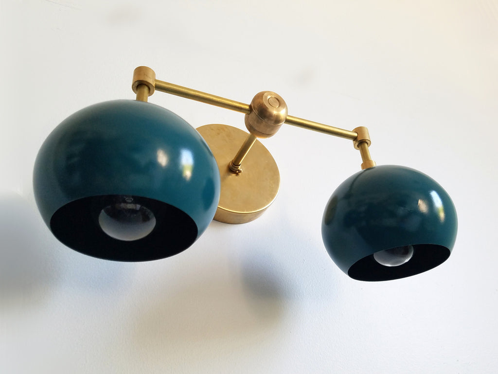 The Double Loa Sconce has a simple, minimalist design that can be fun or modern. Either way, it is bound to garner loads of compliments. This fixture is a two-light version of our single Loa sconce. The shades are globe-shaped and finished in a Lagoon Blue Enamel.