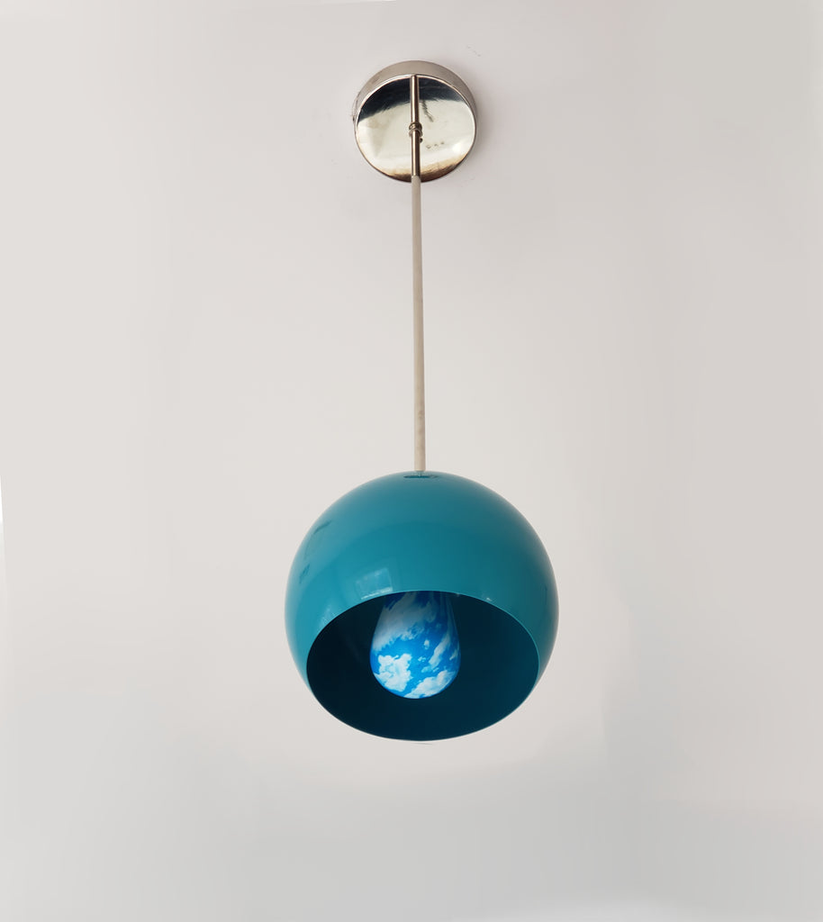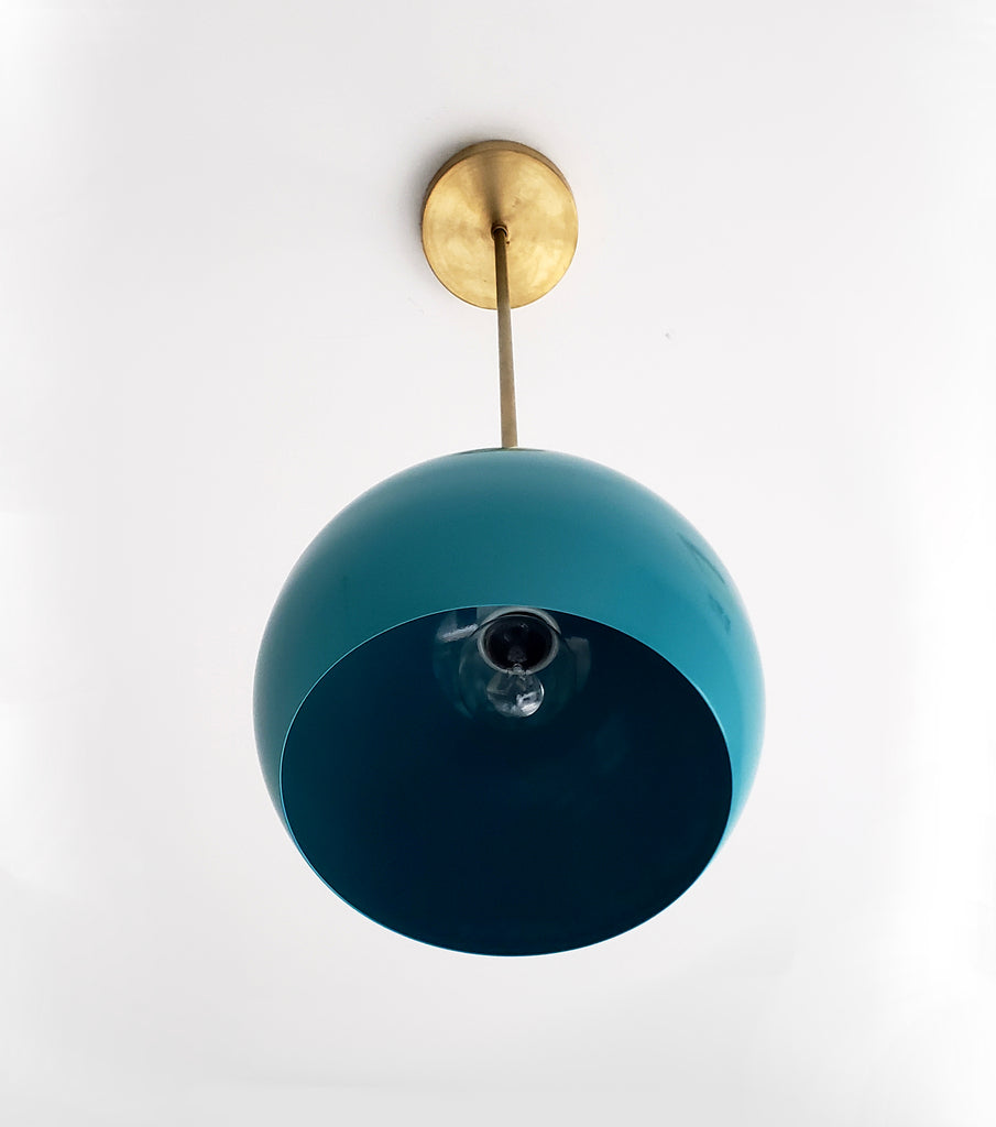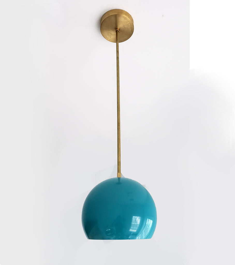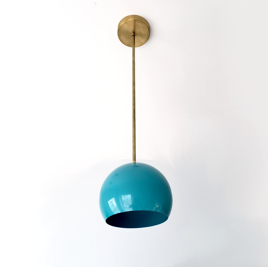 The Large Loa Pendant with a Teal Shade shade is a simple, globe shaped pendant available with multiple metal finishes to suit any design style. Each pendant comes with three downrod options: 24 inches, 18 inches, and 12 inches. If a specific length is needed instead, contact us.