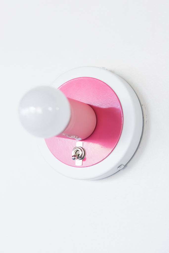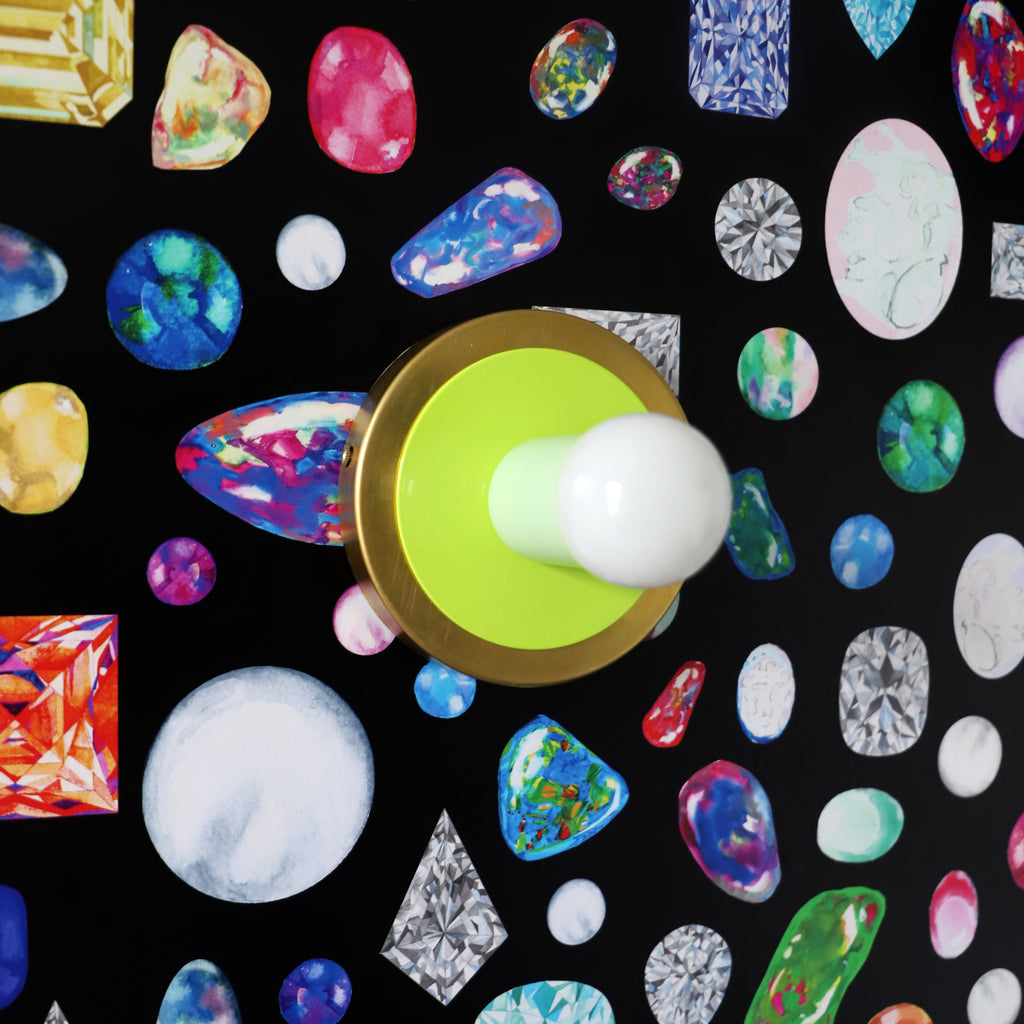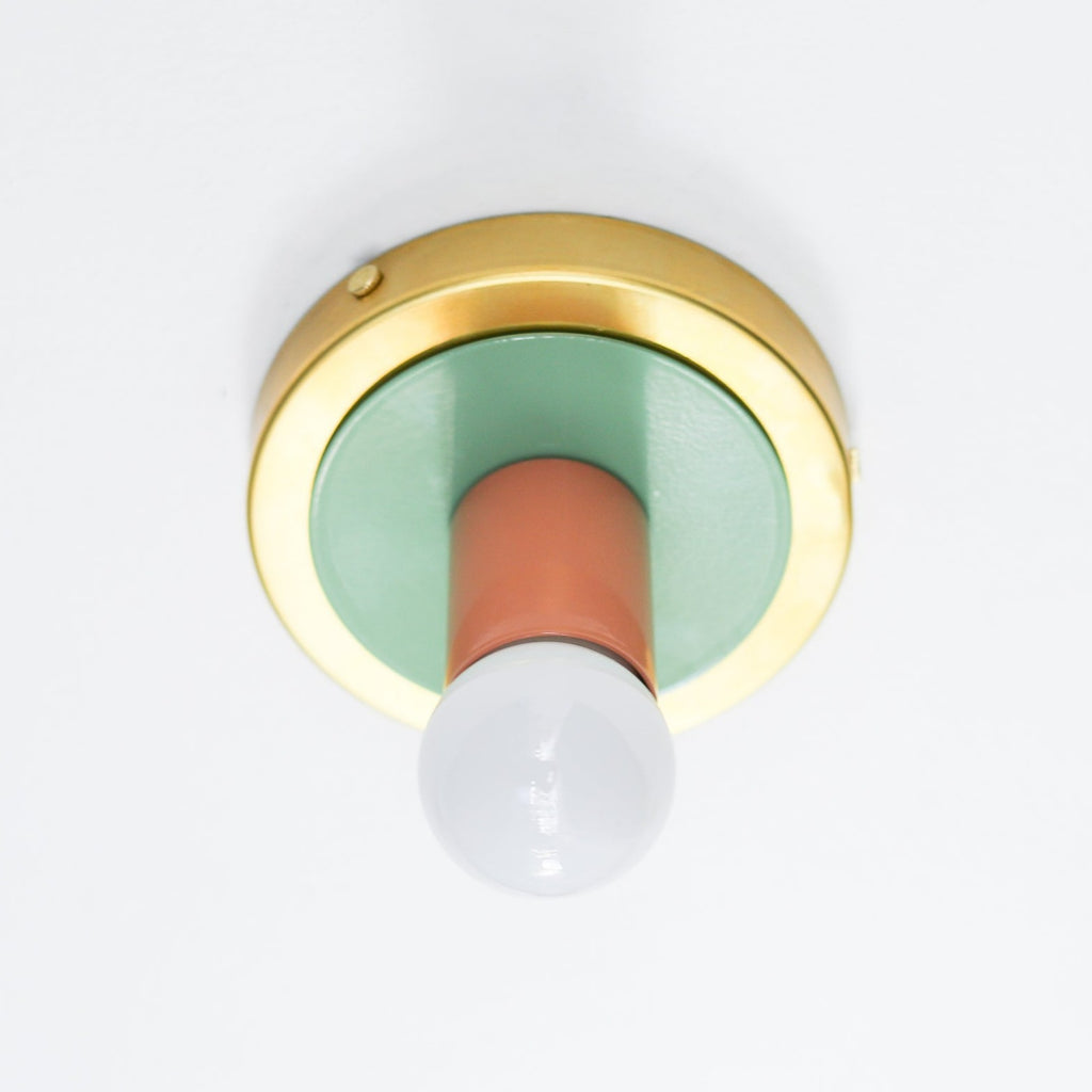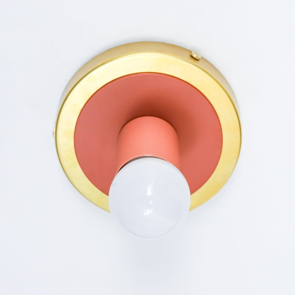 The Warhol is a fun playfully colorful sconce or flush mount ceiling fixture that features a two complementary colors on a black, white, brass, or chrome wall/ceiling plate.  This lighting fixture could be used alone or as a cluster of fixtures.