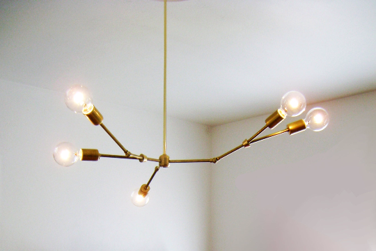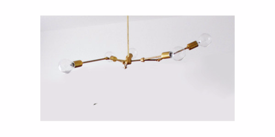 The Linden Chandelier is a modern asymmetric brass chandelier that is inspired by the works of Lindsey Adelman. This light can be finished in both raw brass and chrome. Or you can opt for mixed metals (all joints, ends etc in brass and rods in chrome). The finish of raw brass develops over time from a bright brass to a deep moody finish.